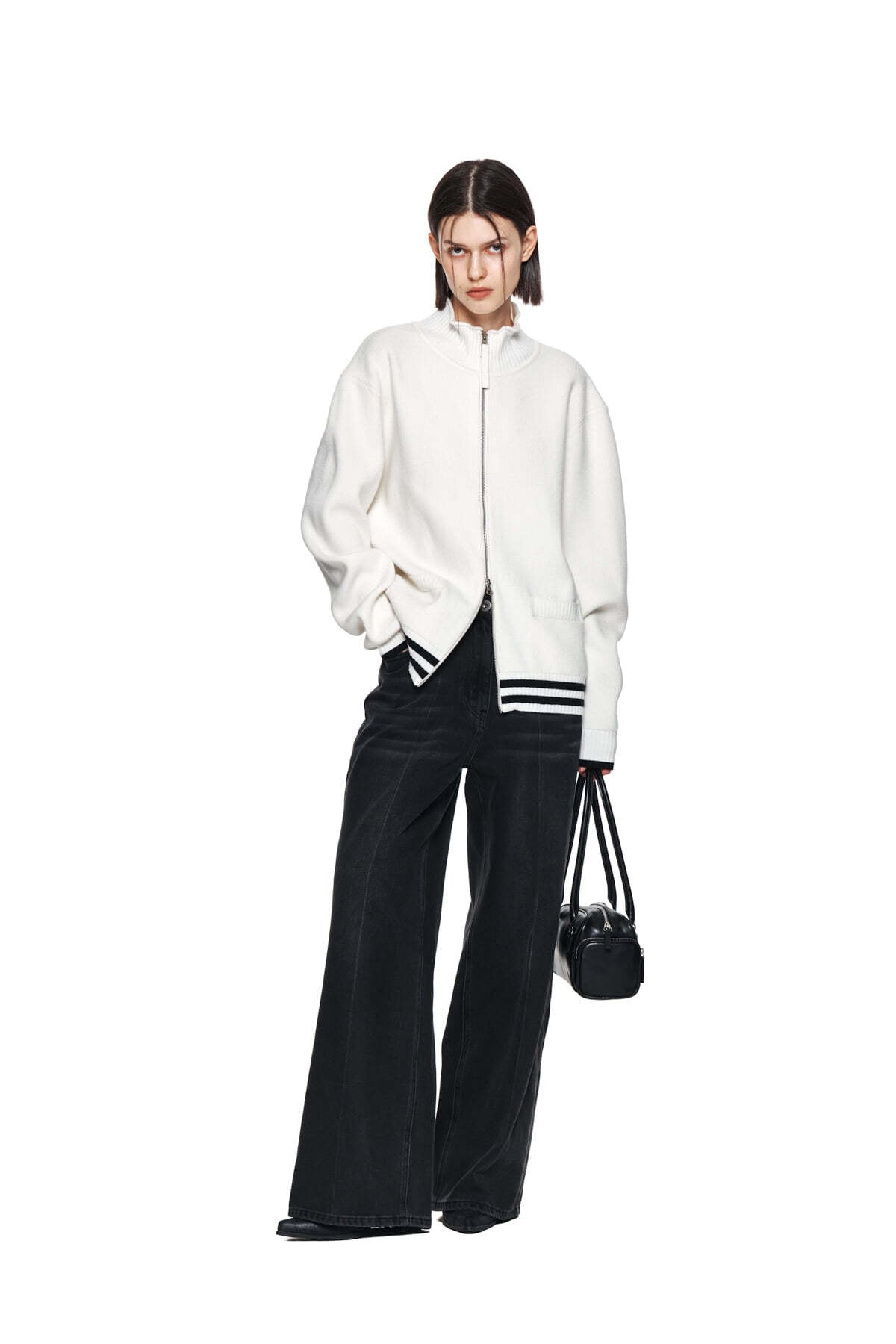 [Matin Kim] SPELL POINT STRIPE KNIT CARDIGAN IN IVORY