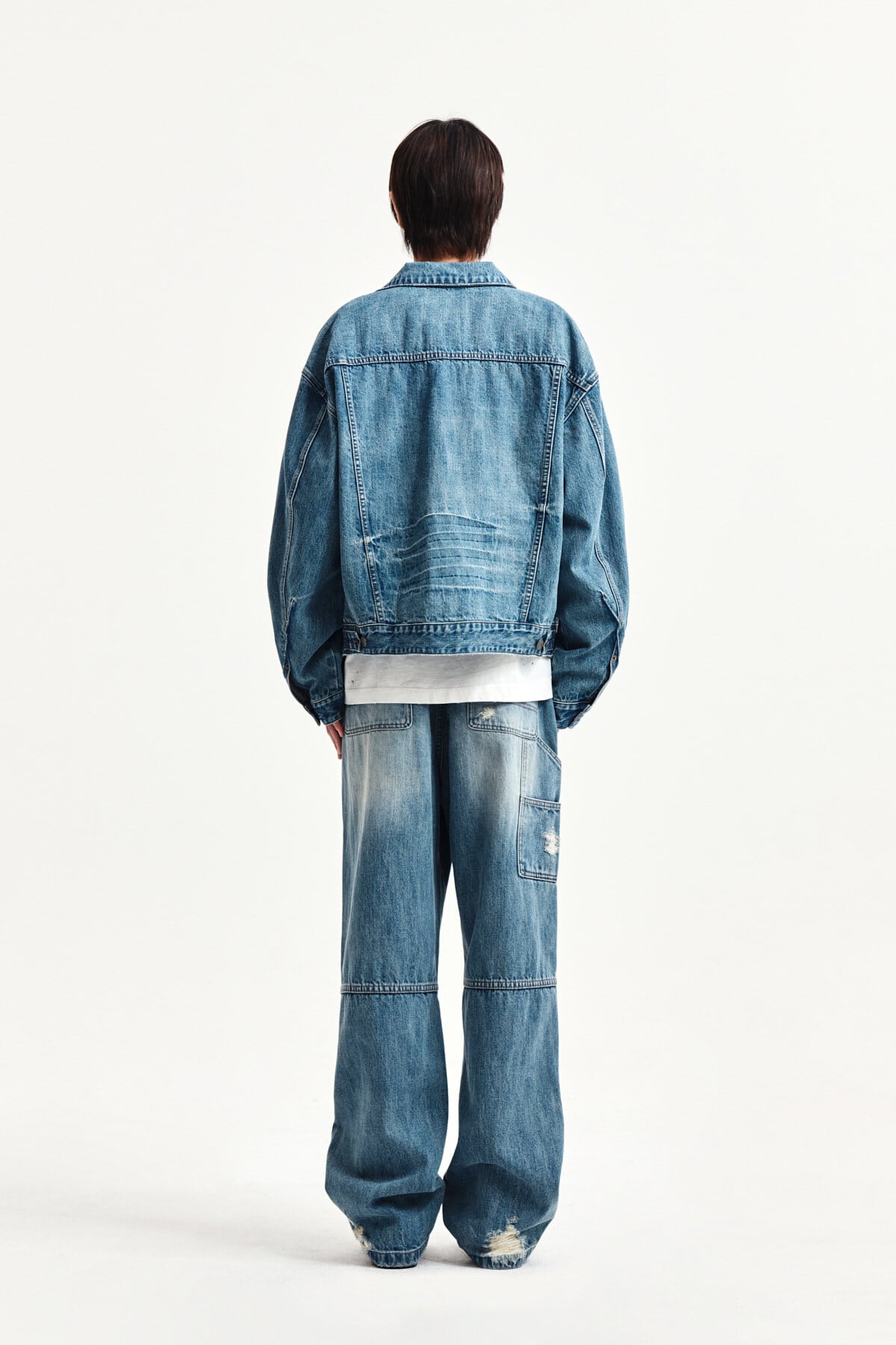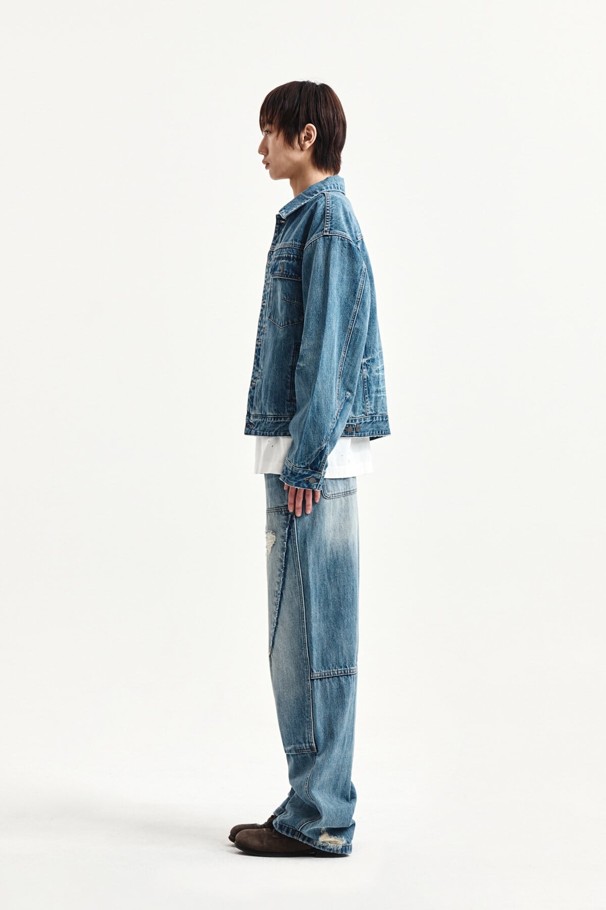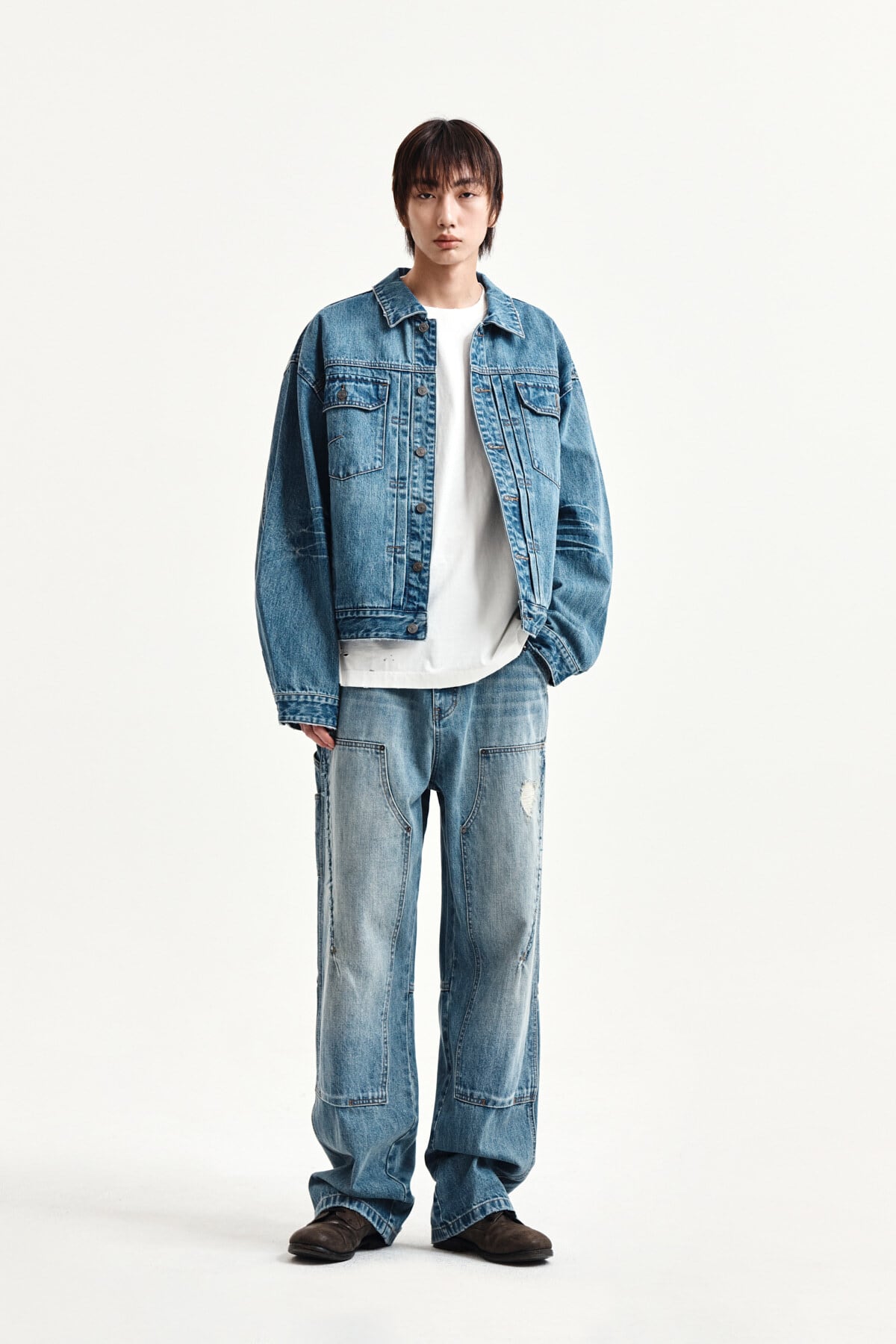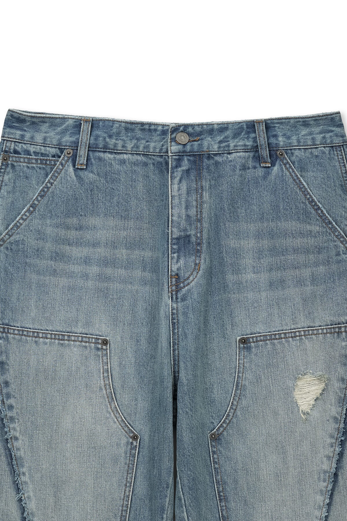 [Matin Kim] VINTAGE WASHED DOUBLE KNEE DENIM PANTS FOR MEN IN BLUE