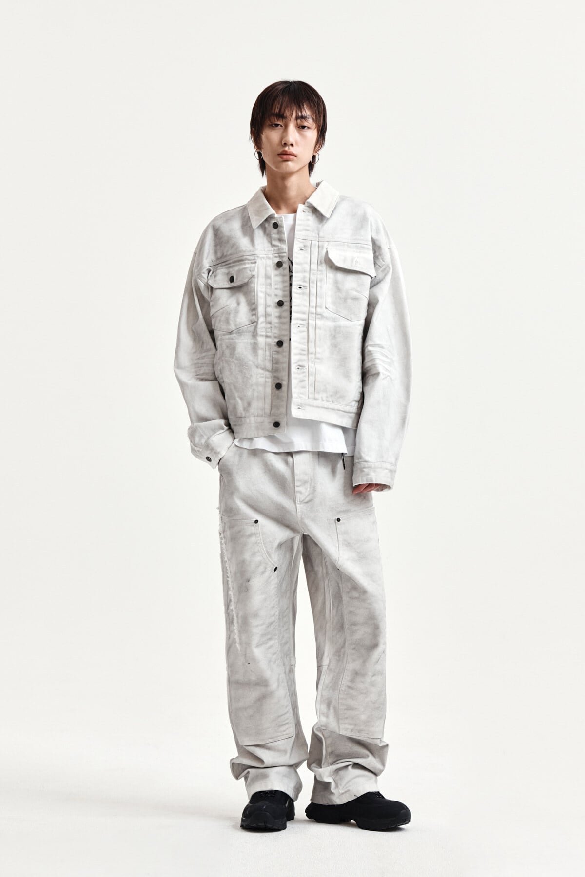 [Matin Kim] VINTAGE WASHED DOUBLE KNEE DENIM PANTS FOR MEN IN WHITE