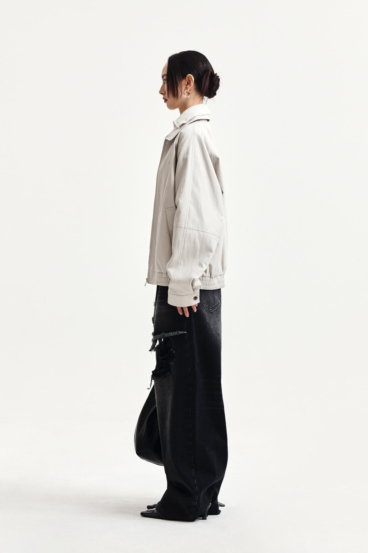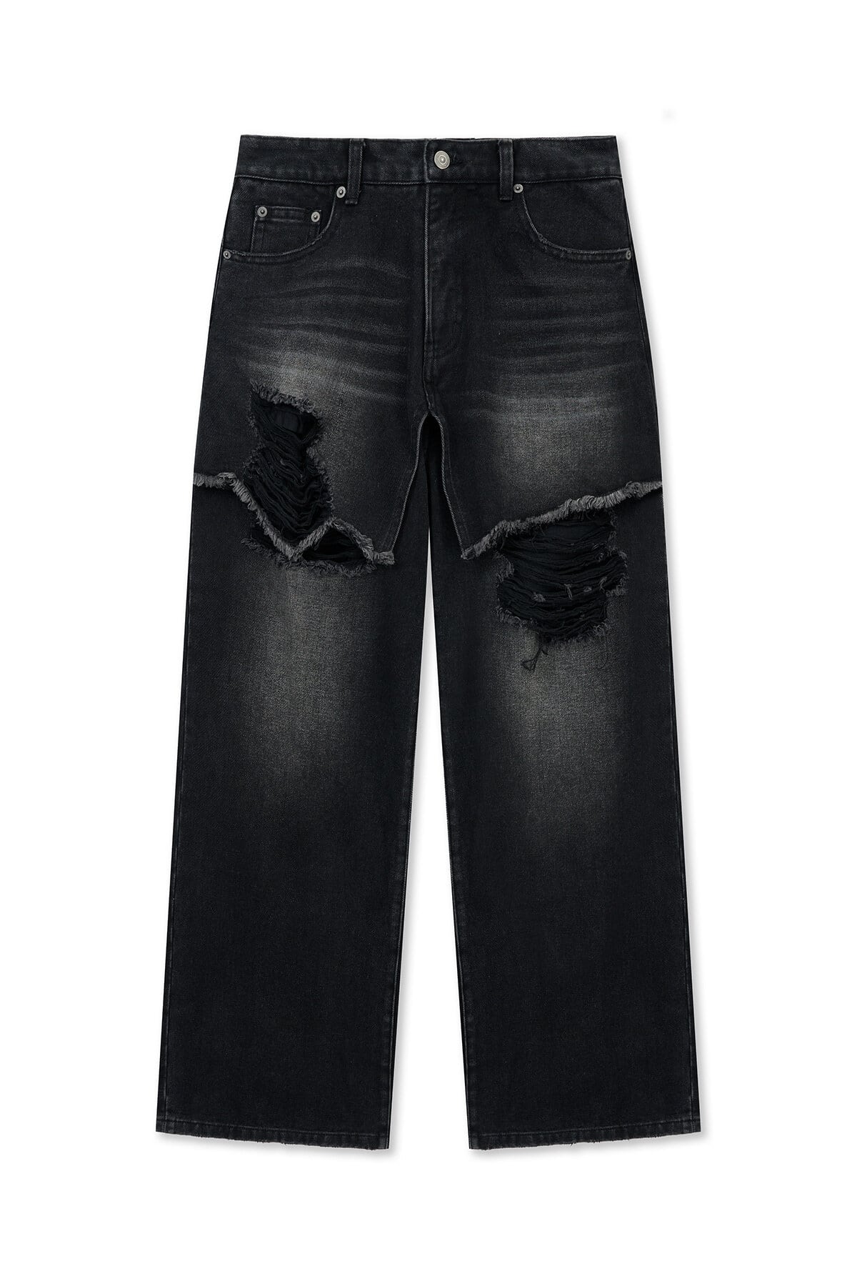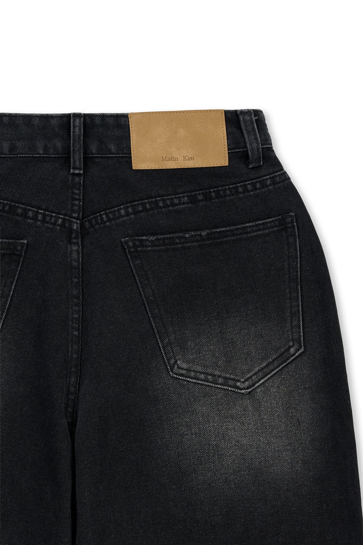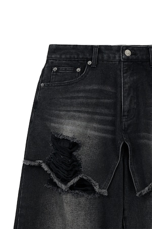 [Matin Kim] FRONT LAYERED DISTRESSED DENIM PANTS IN BLACK