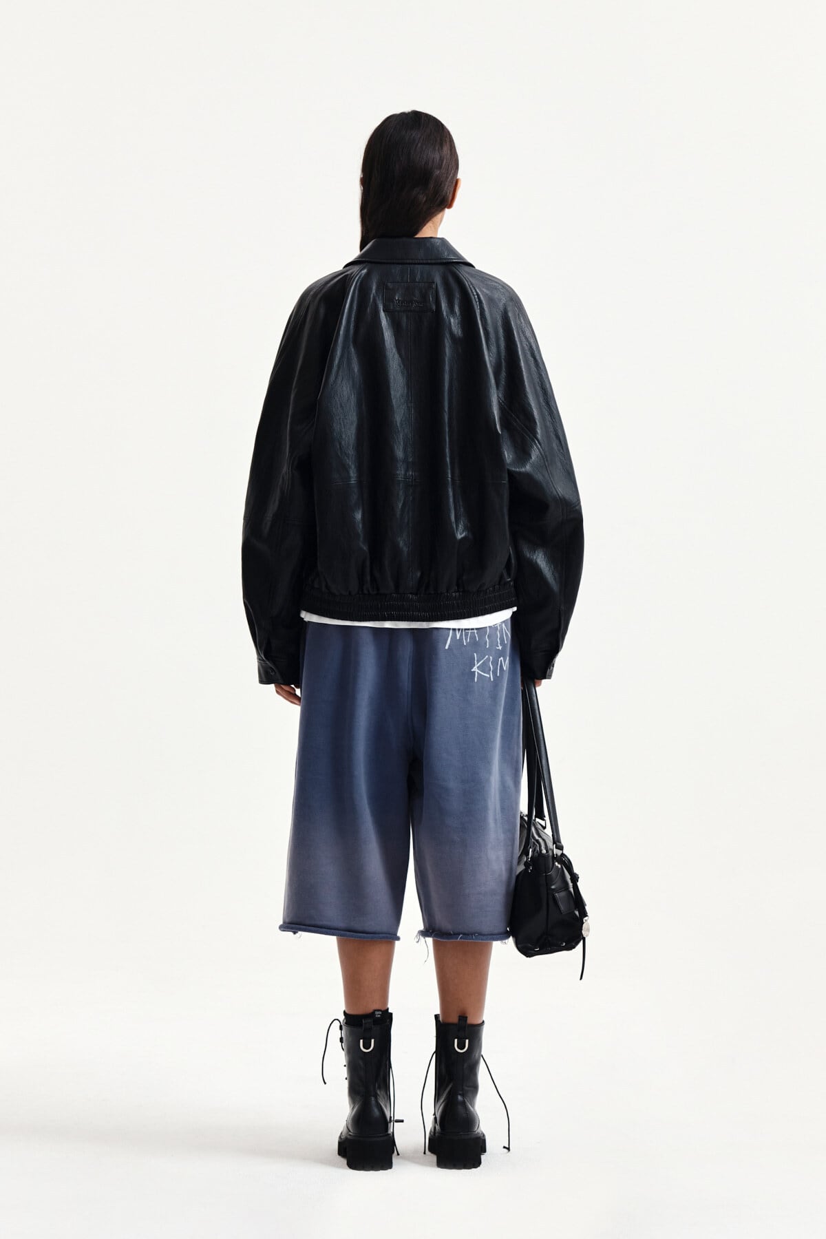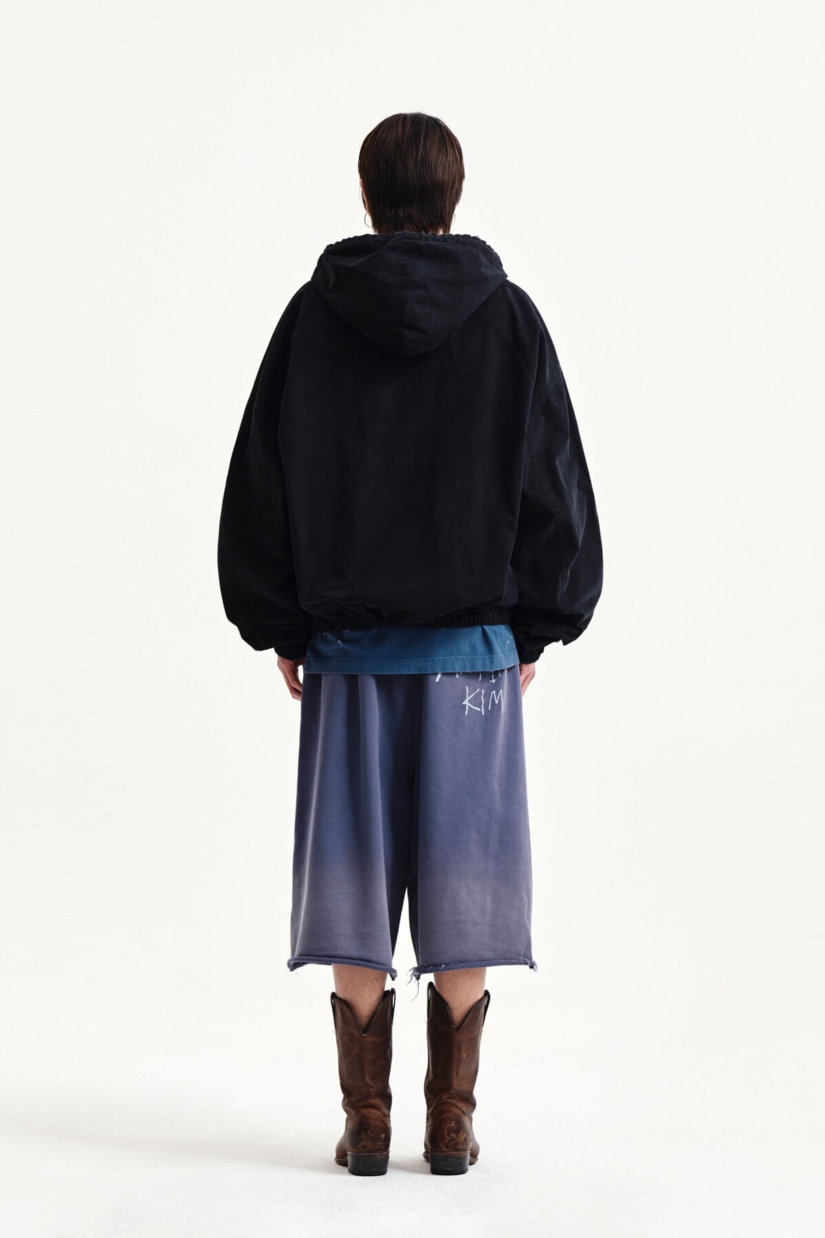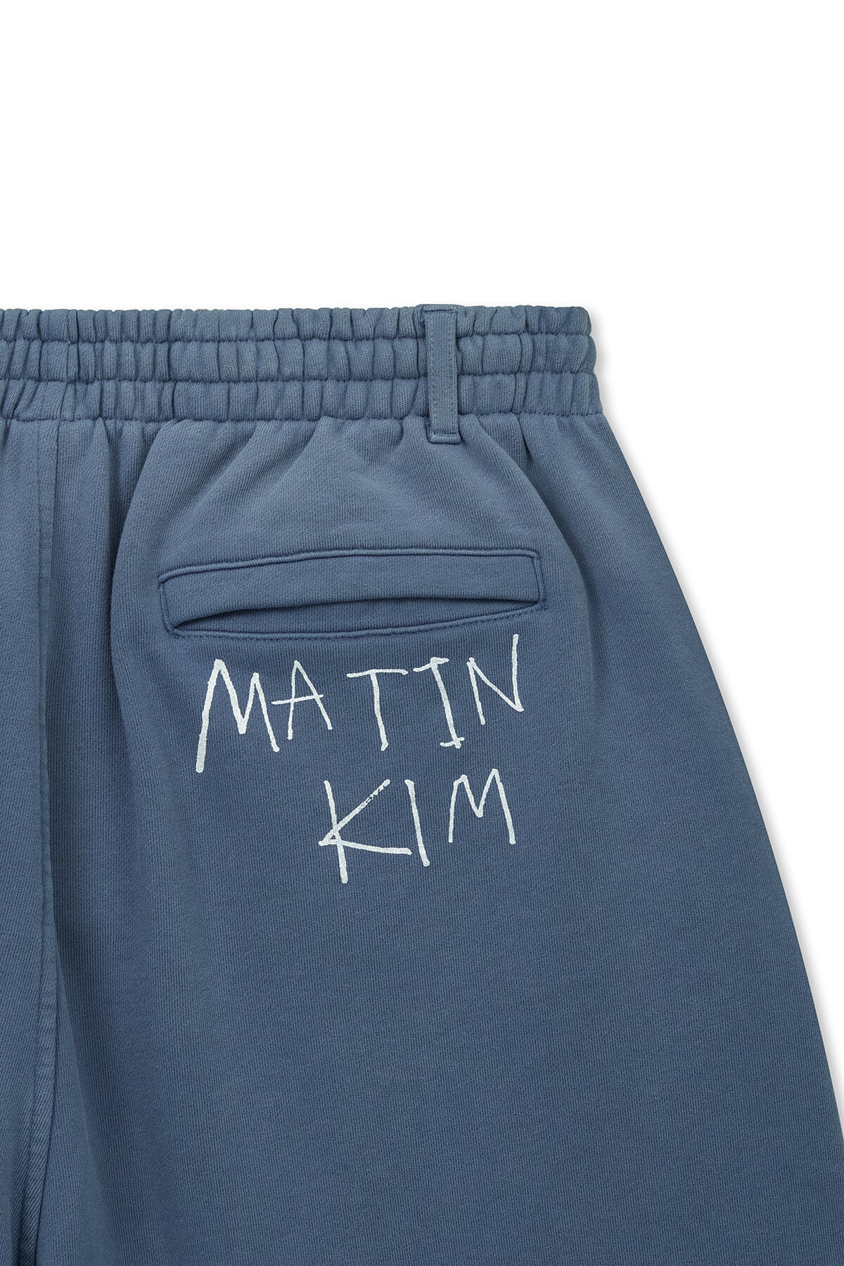 [Matin Kim] VINTAGE WASHED BACK LOGO BERMUDA SWEATPANTS IN SMOKE BLUE 正規品 韓国ブランド 韓国通販 韓国代行 韓国ファッション マーティンキム matinkim 日本 店舗