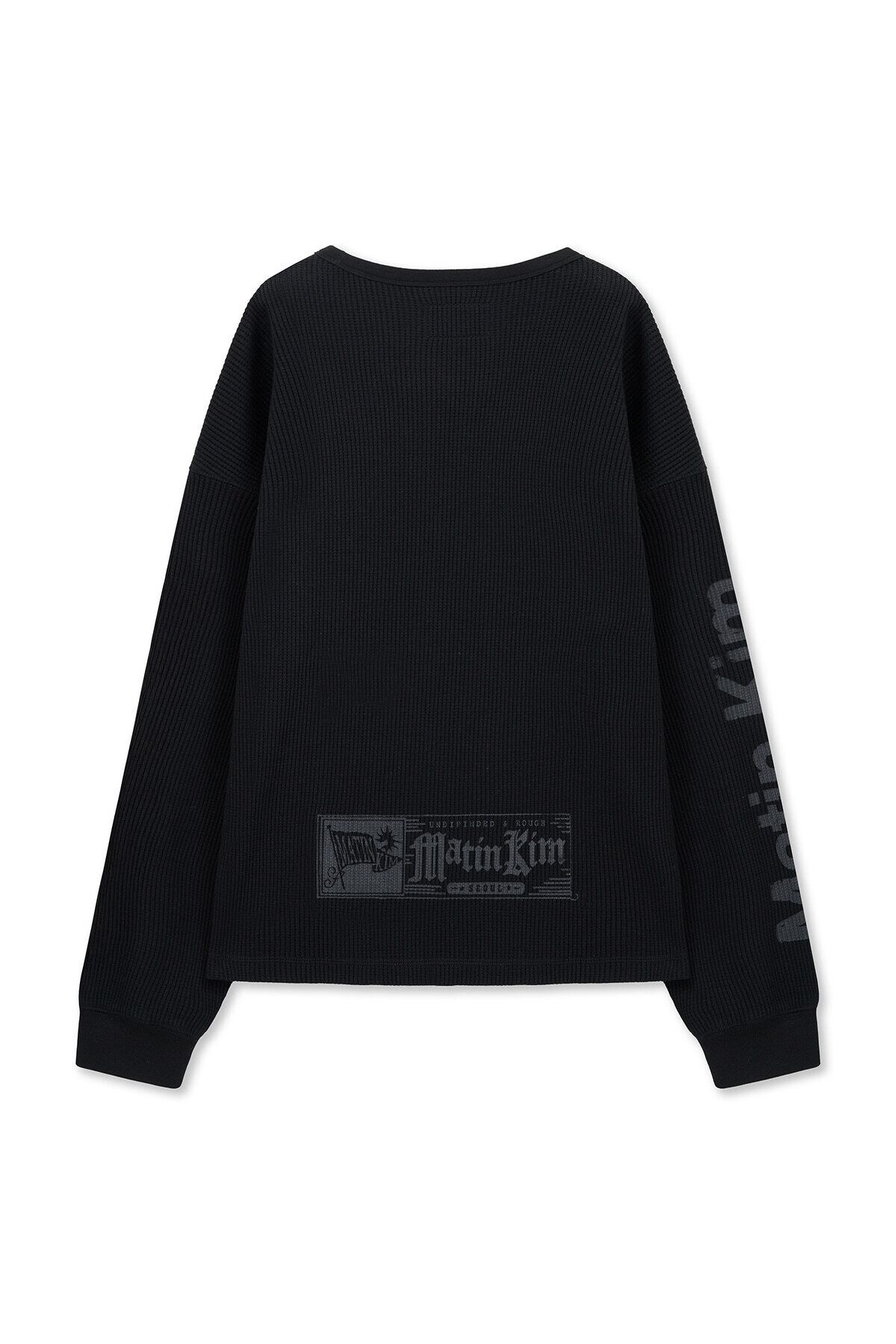 [Matin Kim] SLEEVE LOGO WAFFLE TOP FOR MEN IN BLACK 正規品 韓国ブランド 韓国通販 韓国代行 韓国ファッション マーティンキム matinkim 日本 店舗