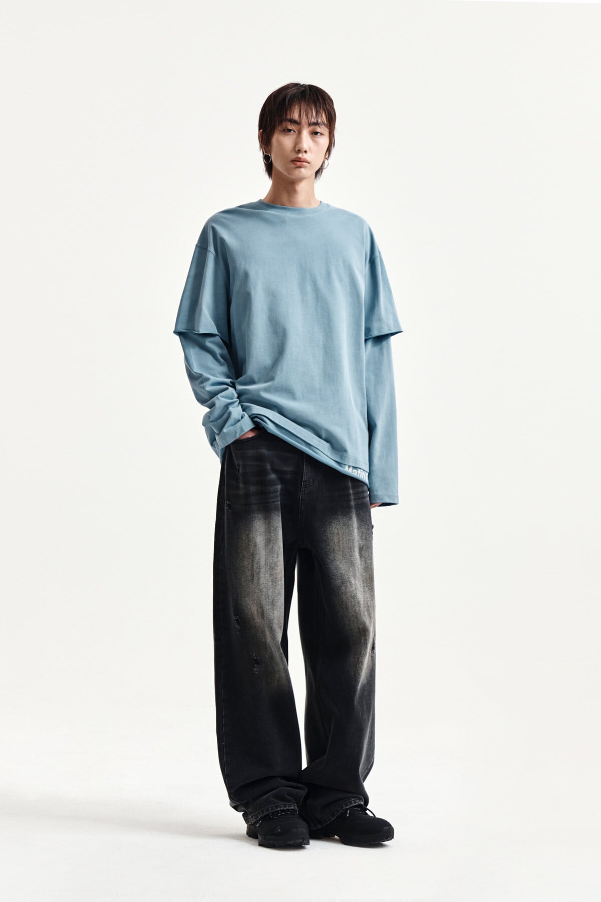 [Matin Kim] SPRAY EFFECT LAYERED TOP FOR MEN IN LIGHT BLUE 正規品 韓国ブランド 韓国通販 韓国代行 韓国ファッション マーティンキム matinkim 日本 店舗