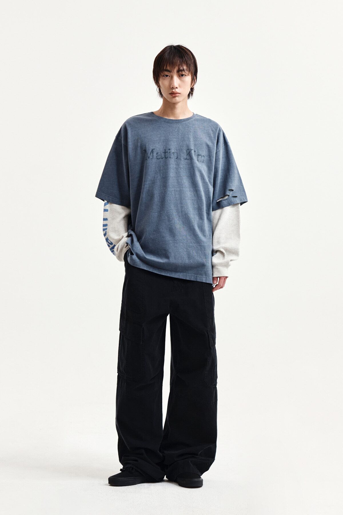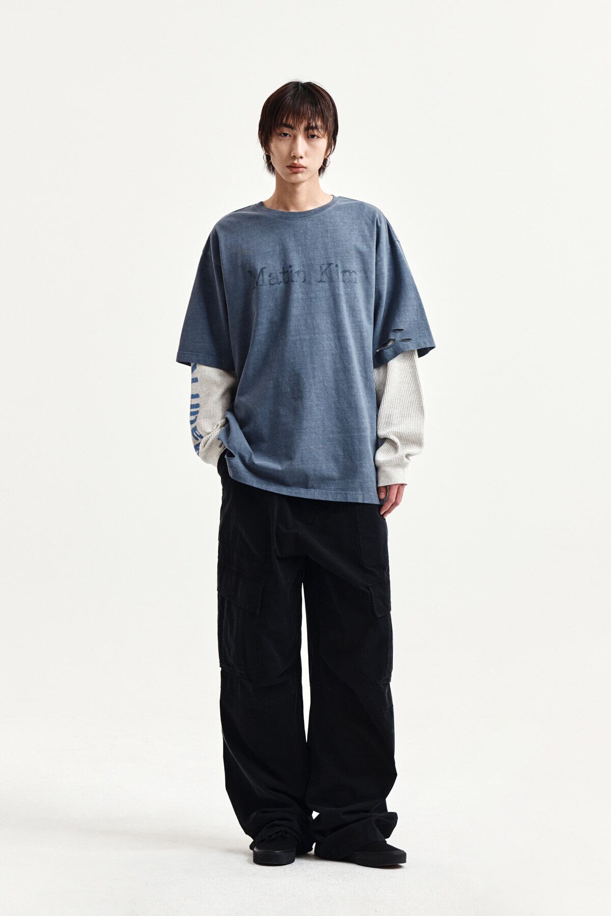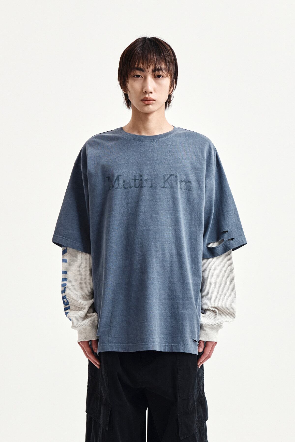 [Matin Kim] DISTRESSED LOGO TOP IN SMOKE BLUE 正規品 韓国ブランド 韓国通販 韓国代行 韓国ファッション マーティンキム matinkim 日本 店舗