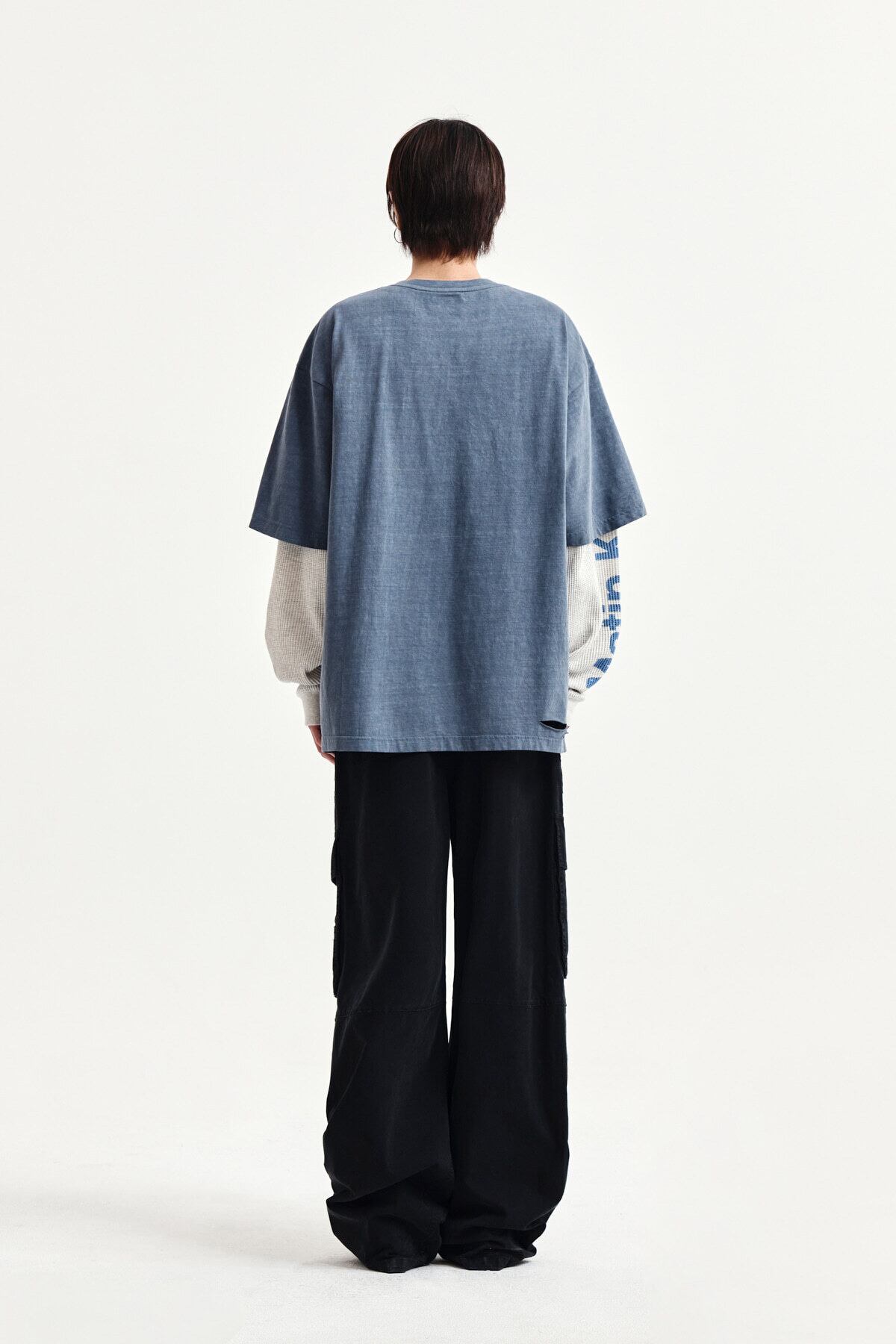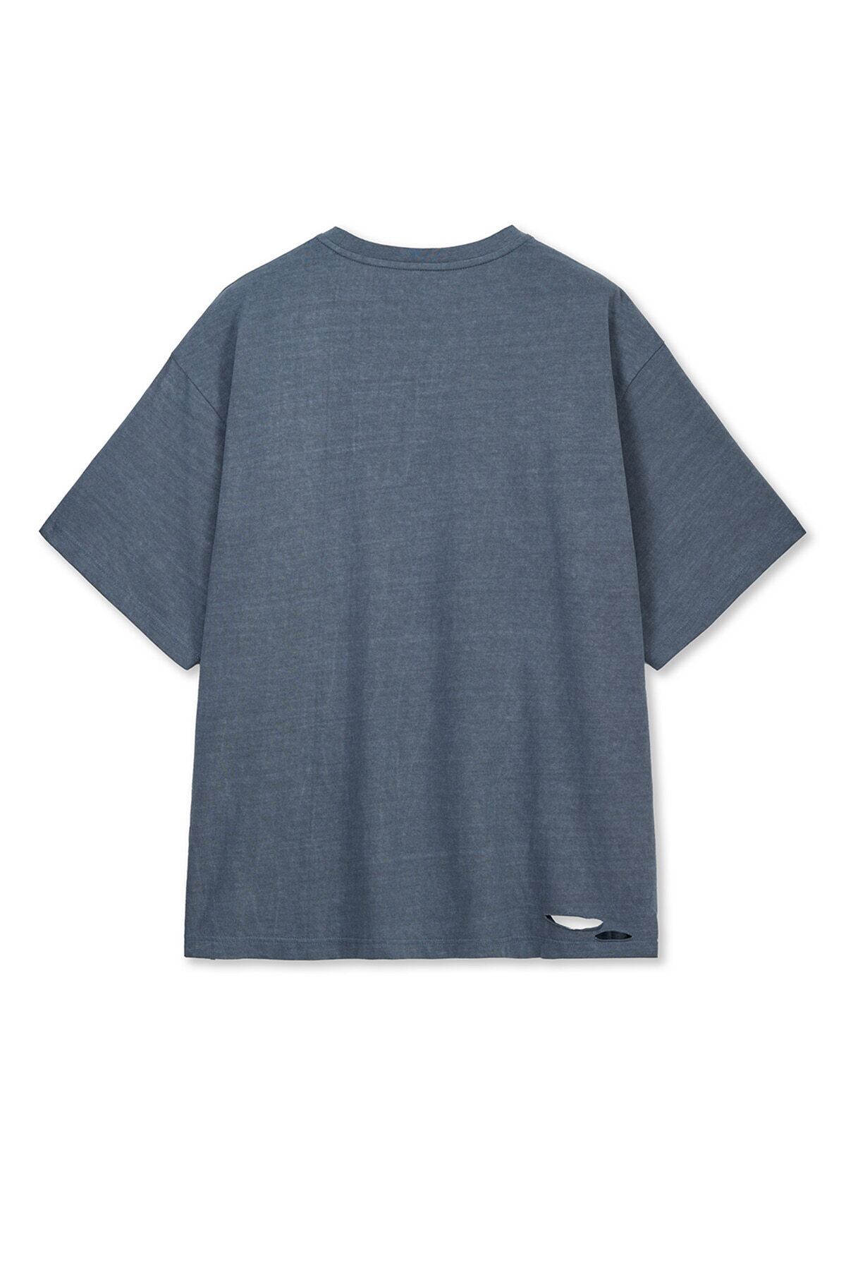 [Matin Kim] DISTRESSED LOGO TOP IN SMOKE BLUE