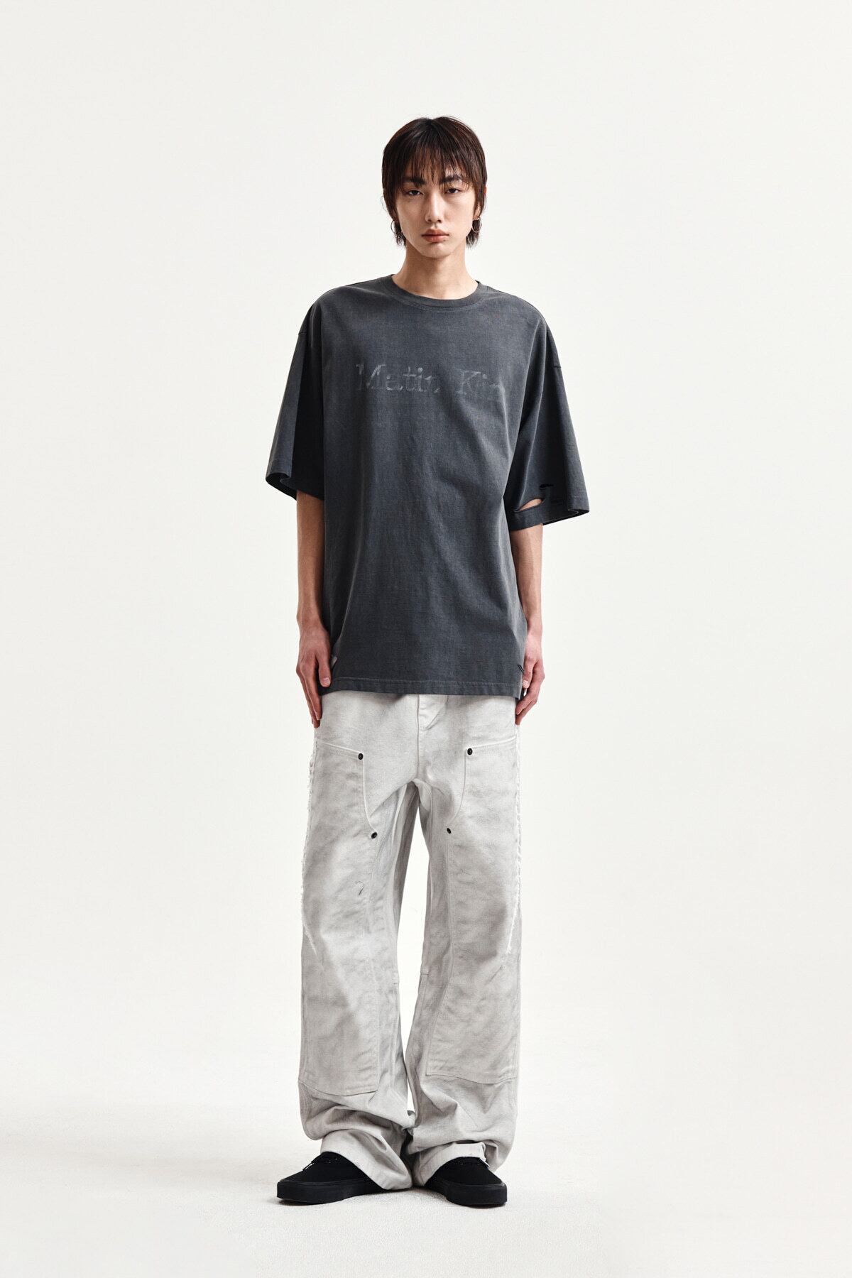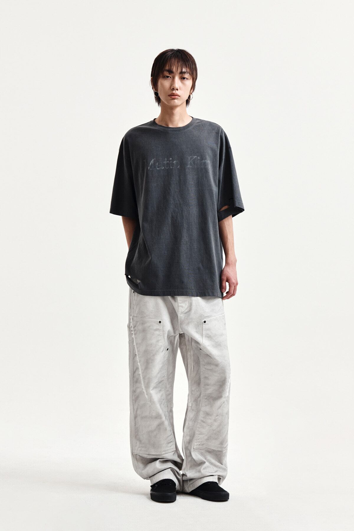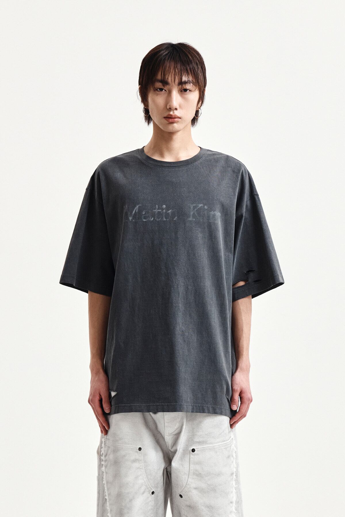 [Matin Kim] DISTRESSED LOGO TOP IN CHARCOAL 正規品 韓国ブランド 韓国通販 韓国代行 韓国ファッション マーティンキム matinkim 日本 店舗