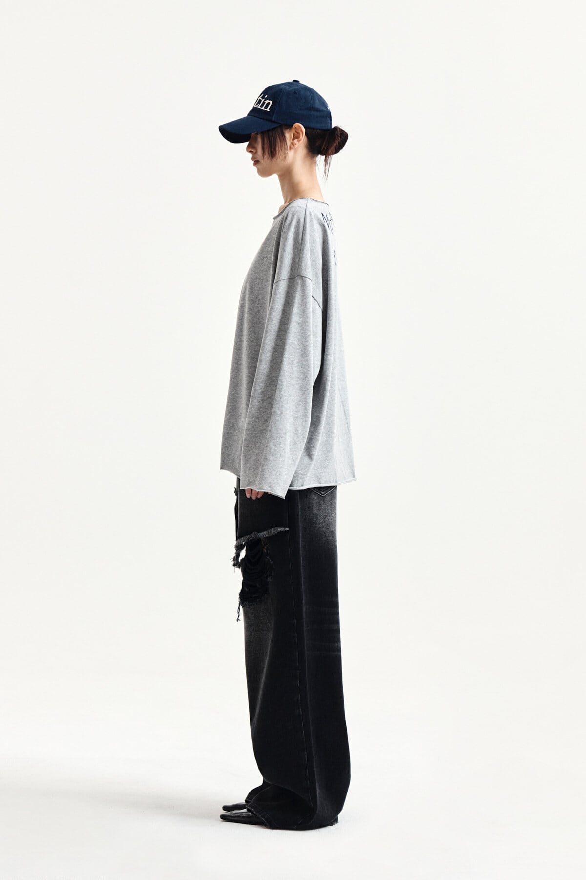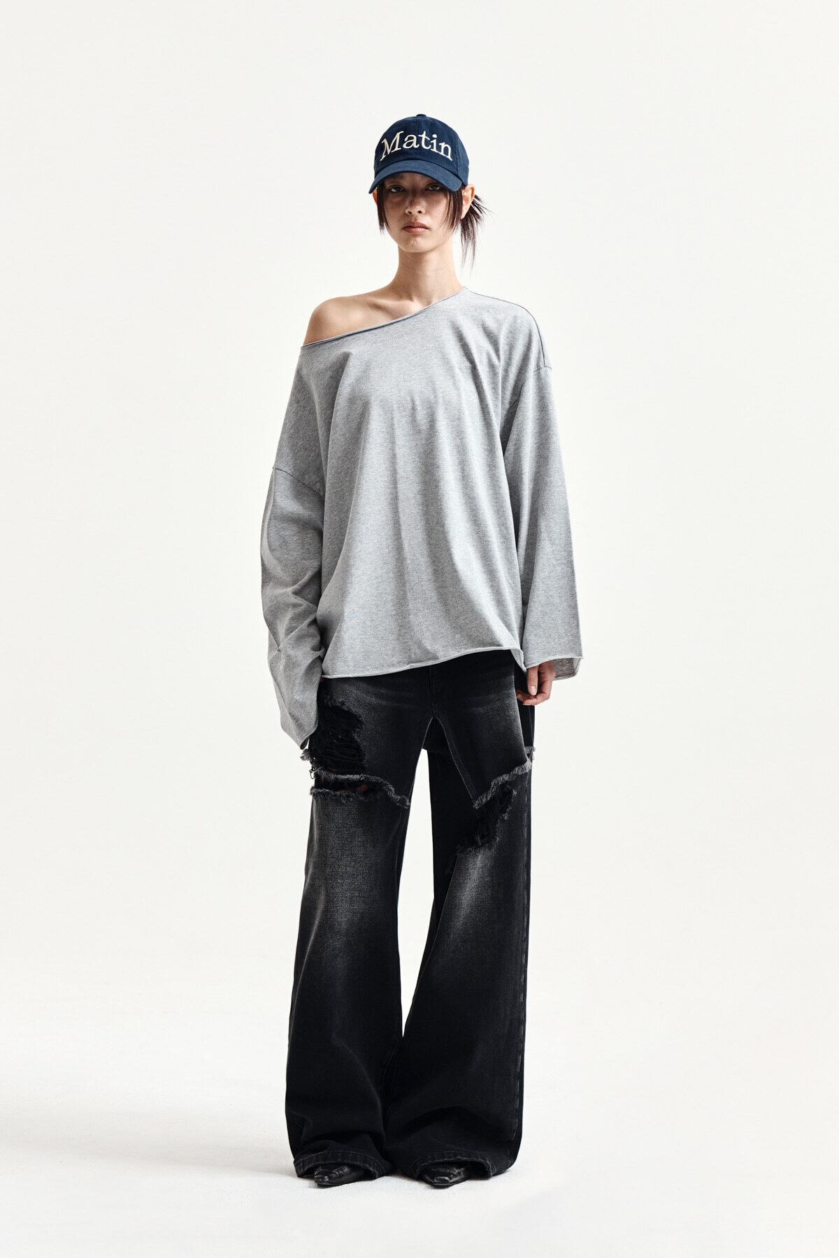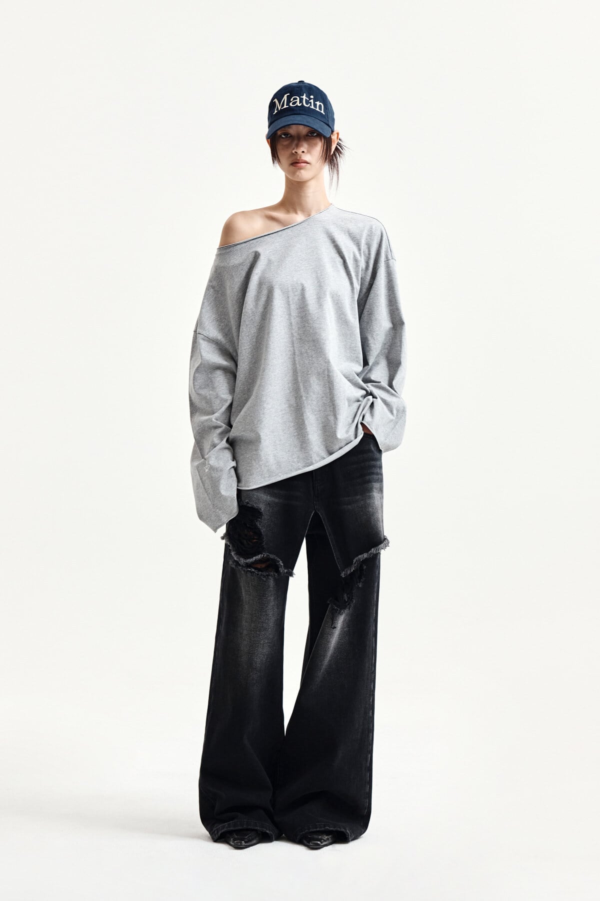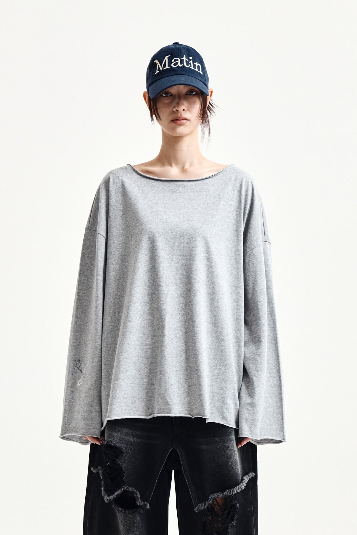 [Matin Kim] RAW HEM FINISHED BOAT NECK TOP IN GREY