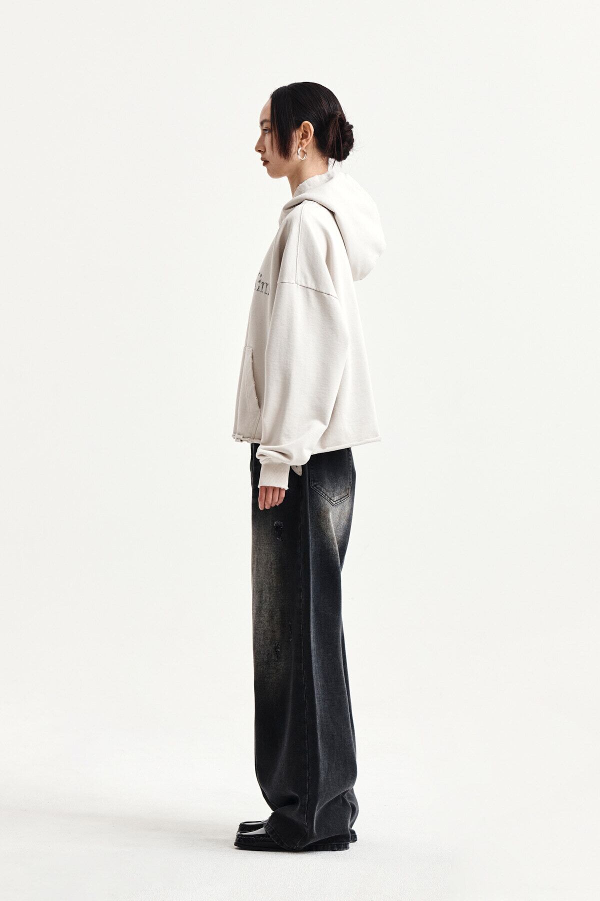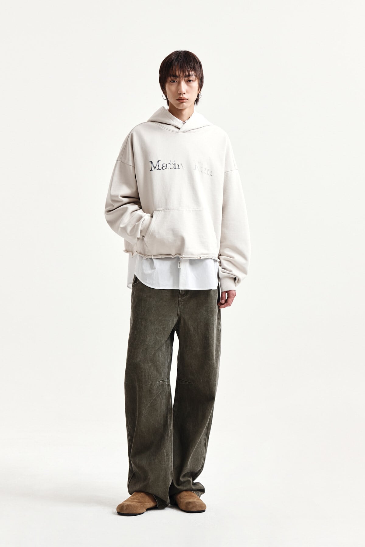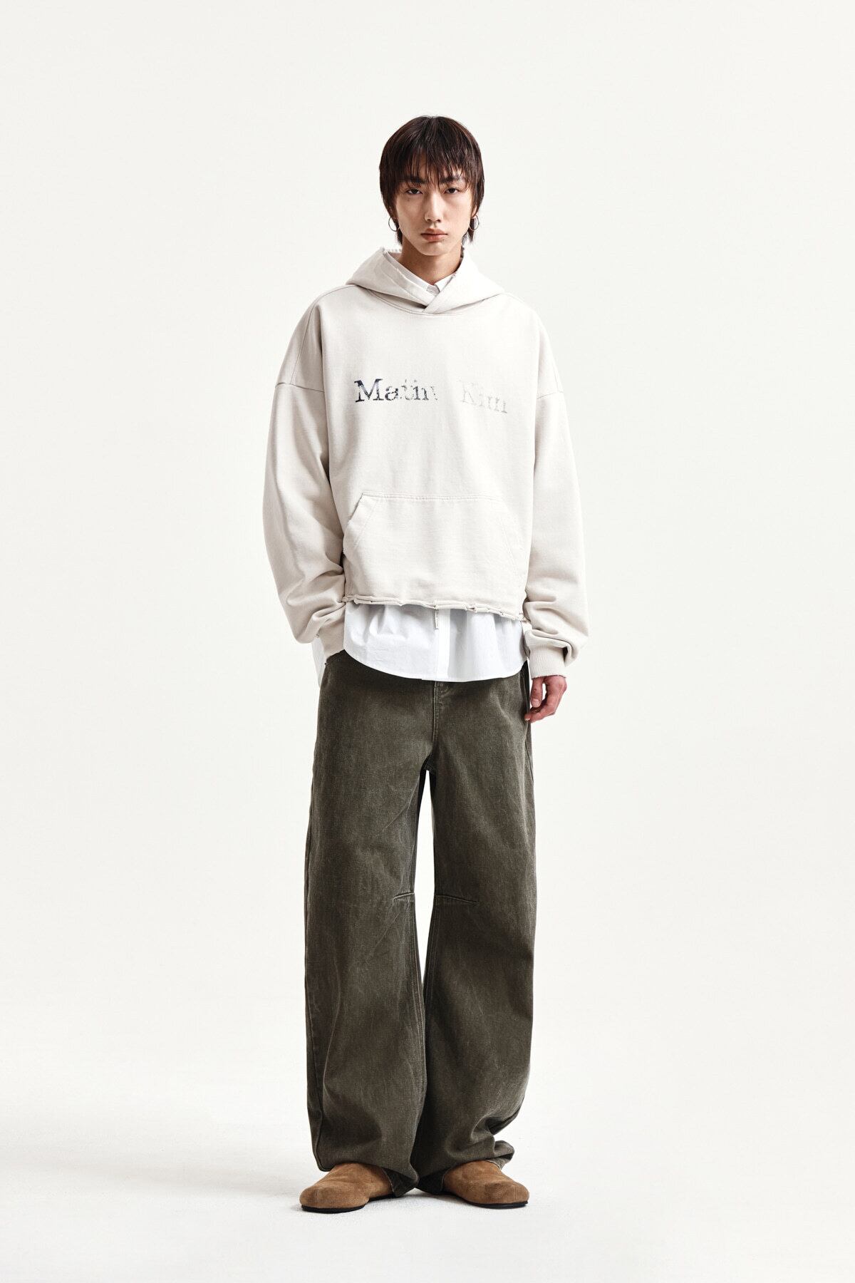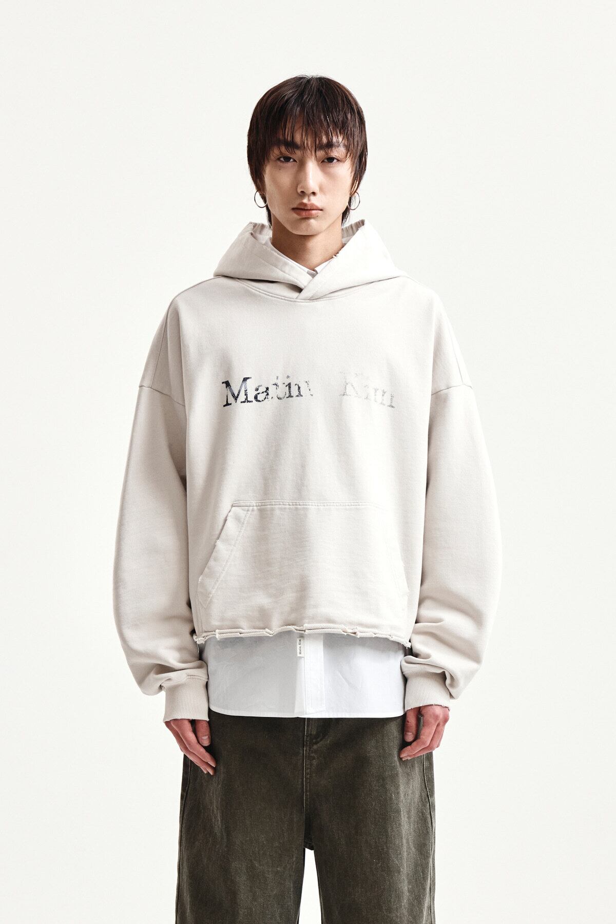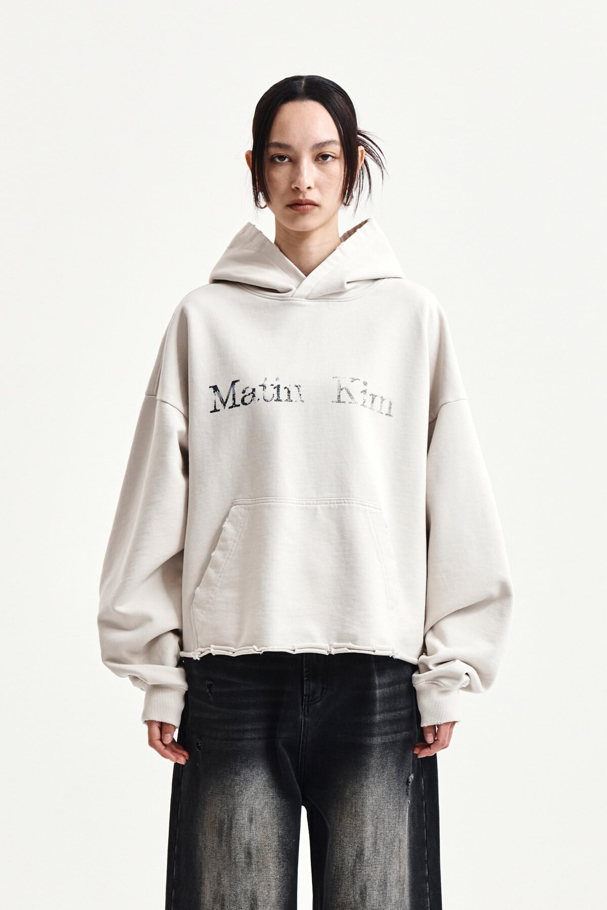 [Matin Kim] RAW EDGE HEM SWEAT HOODY IN LIGHT BEIGE