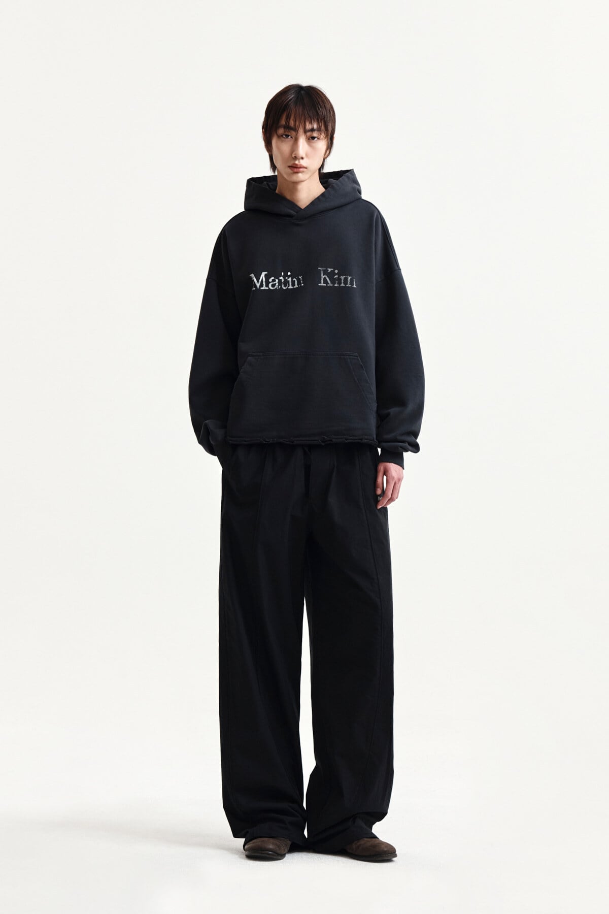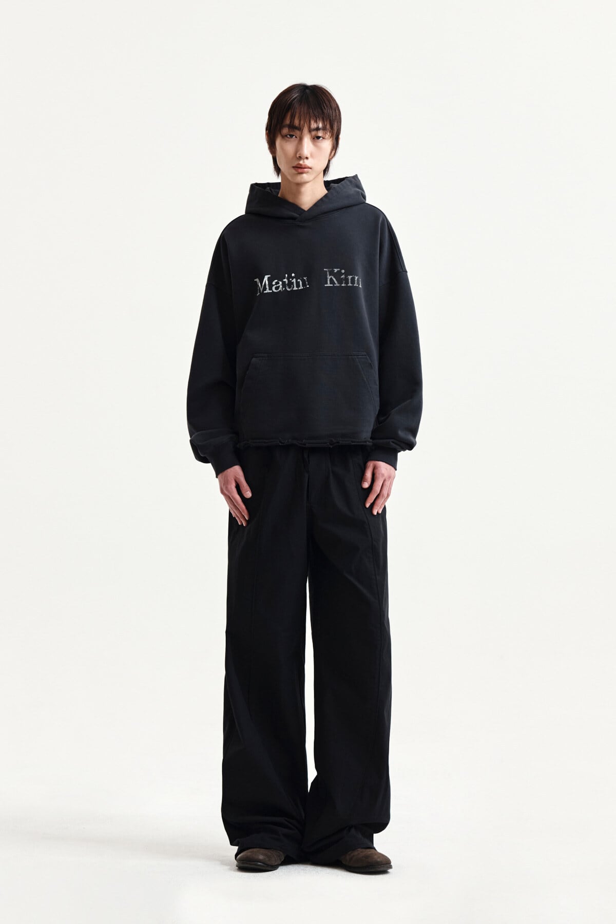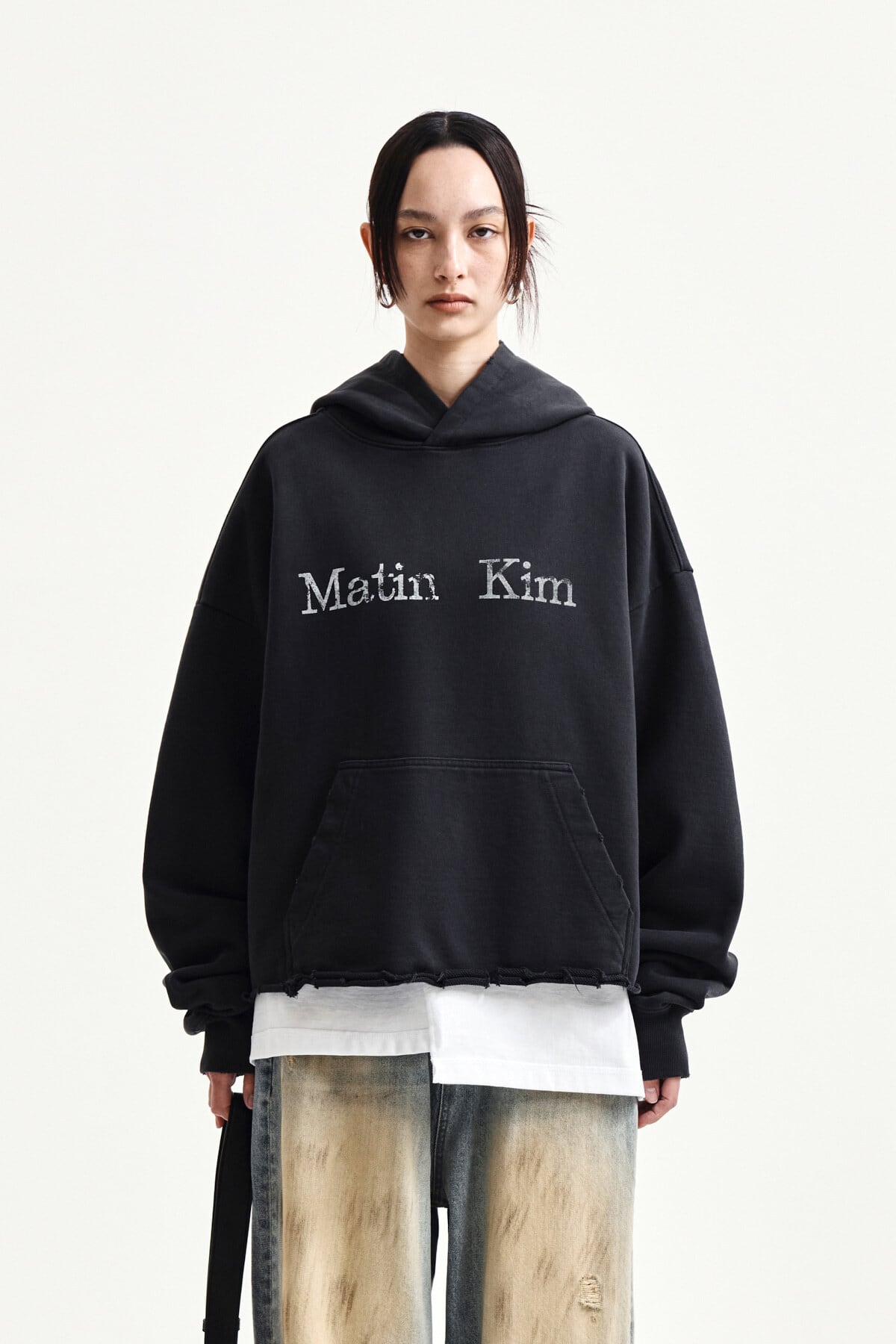 [Matin Kim] RAW EDGE HEM SWEAT HOODY IN CHARCOAL