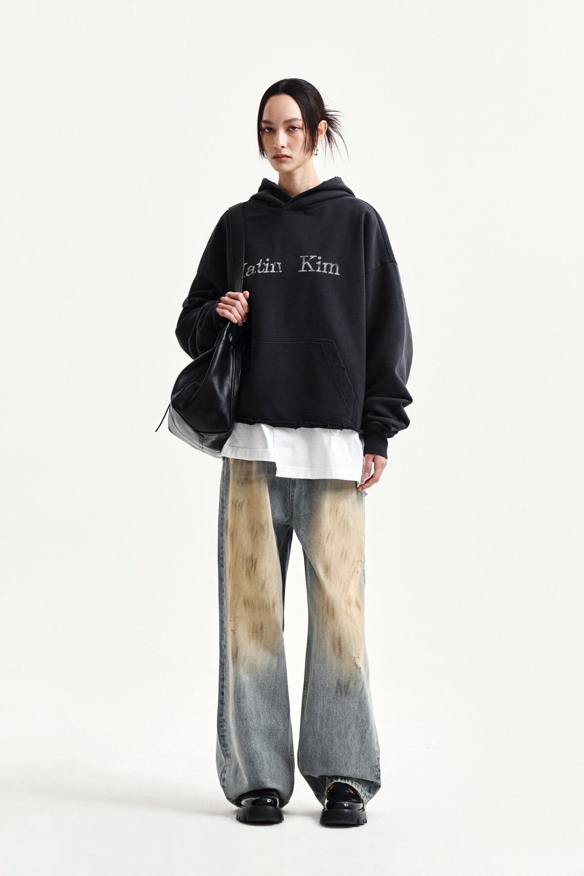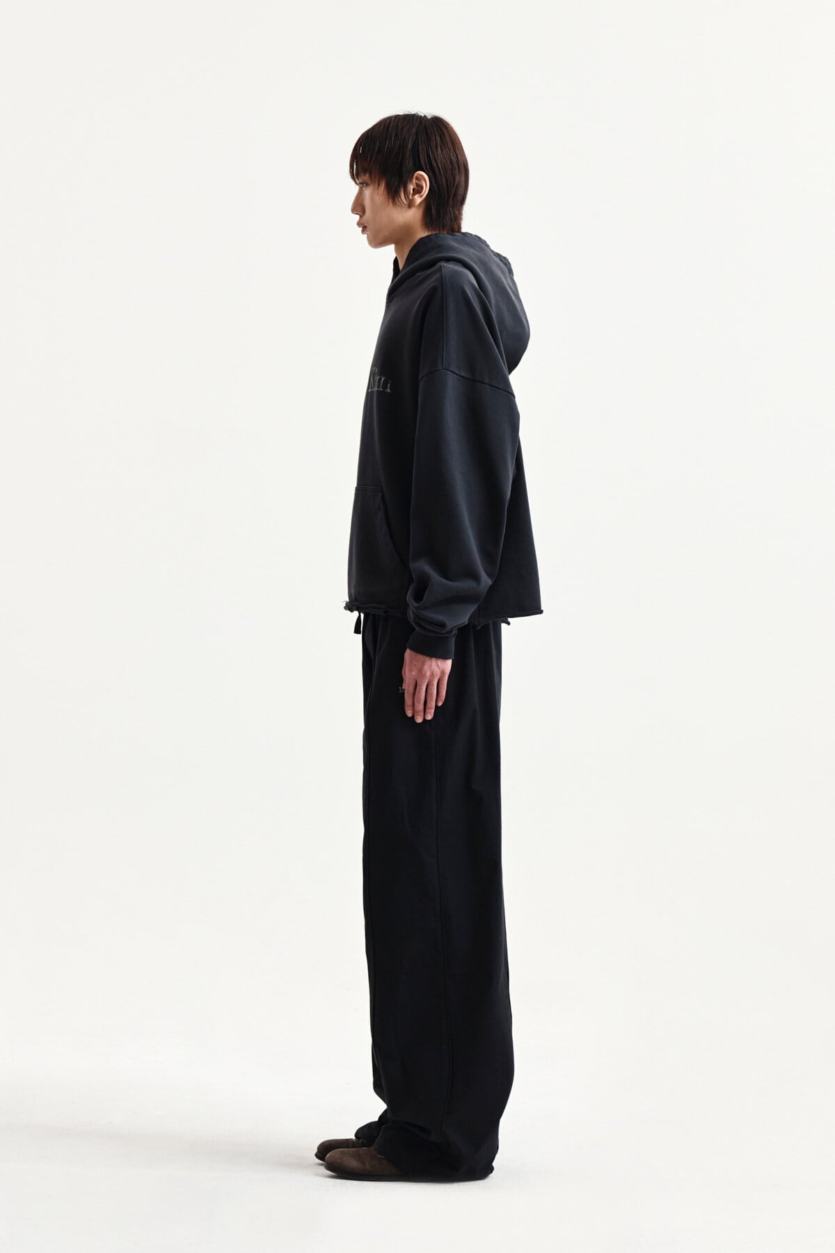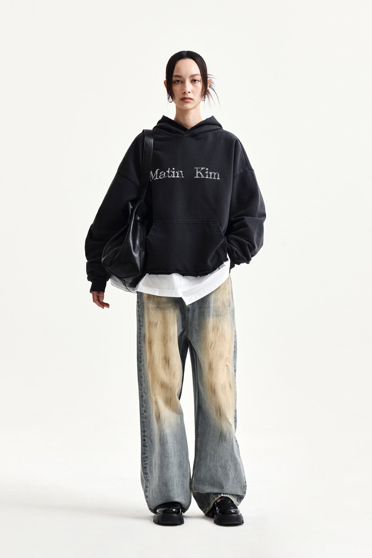 [Matin Kim] RAW EDGE HEM SWEAT HOODY IN CHARCOAL