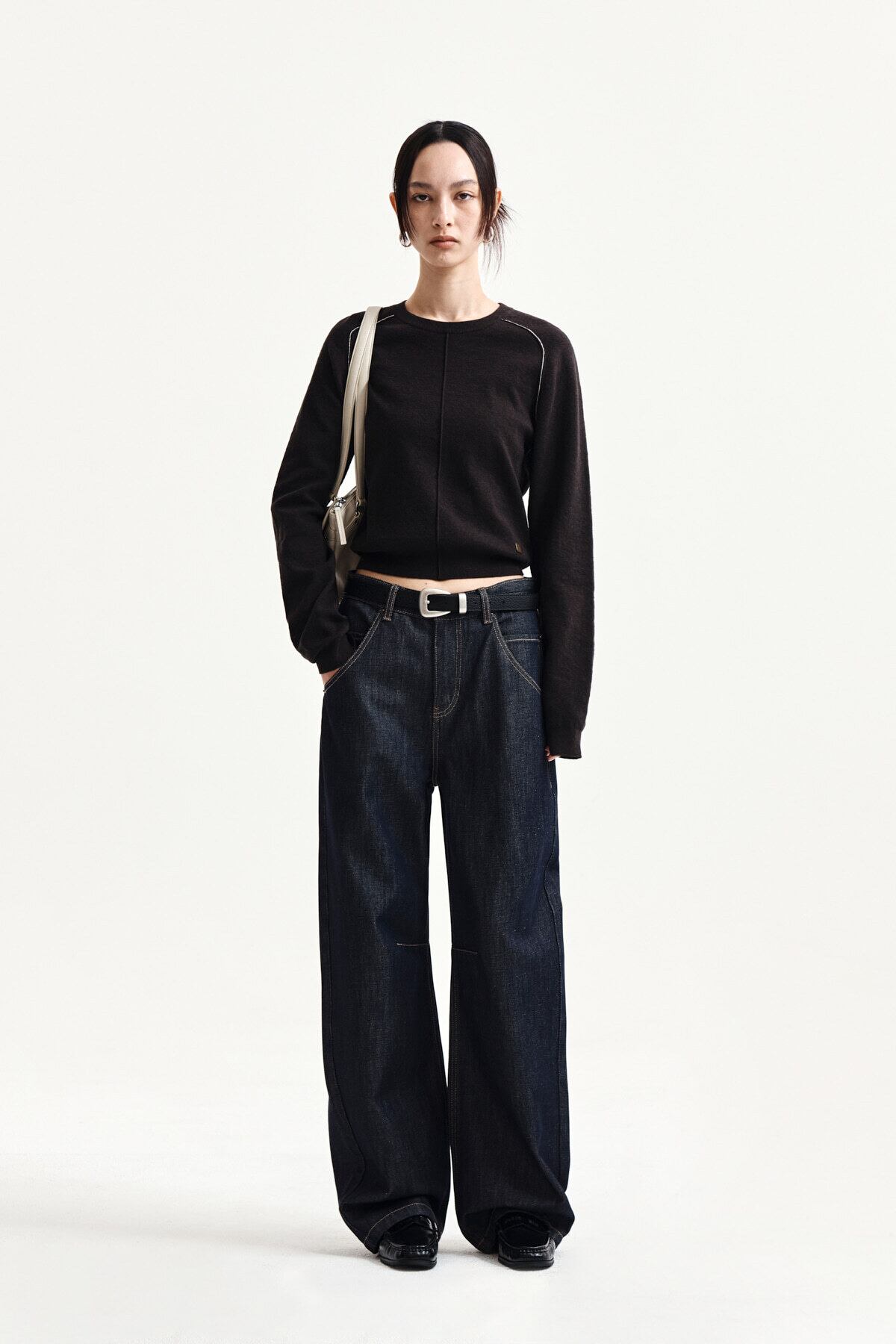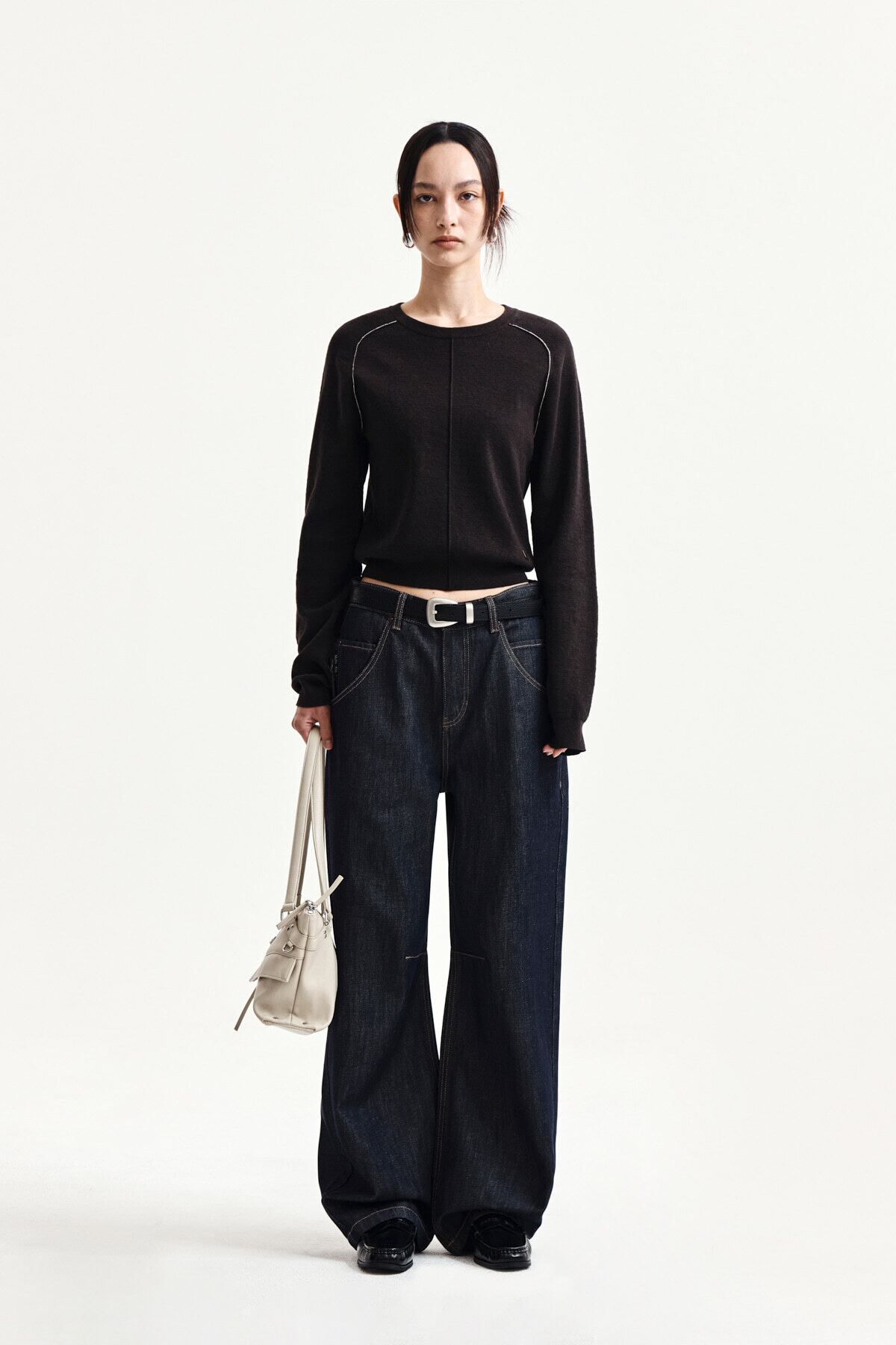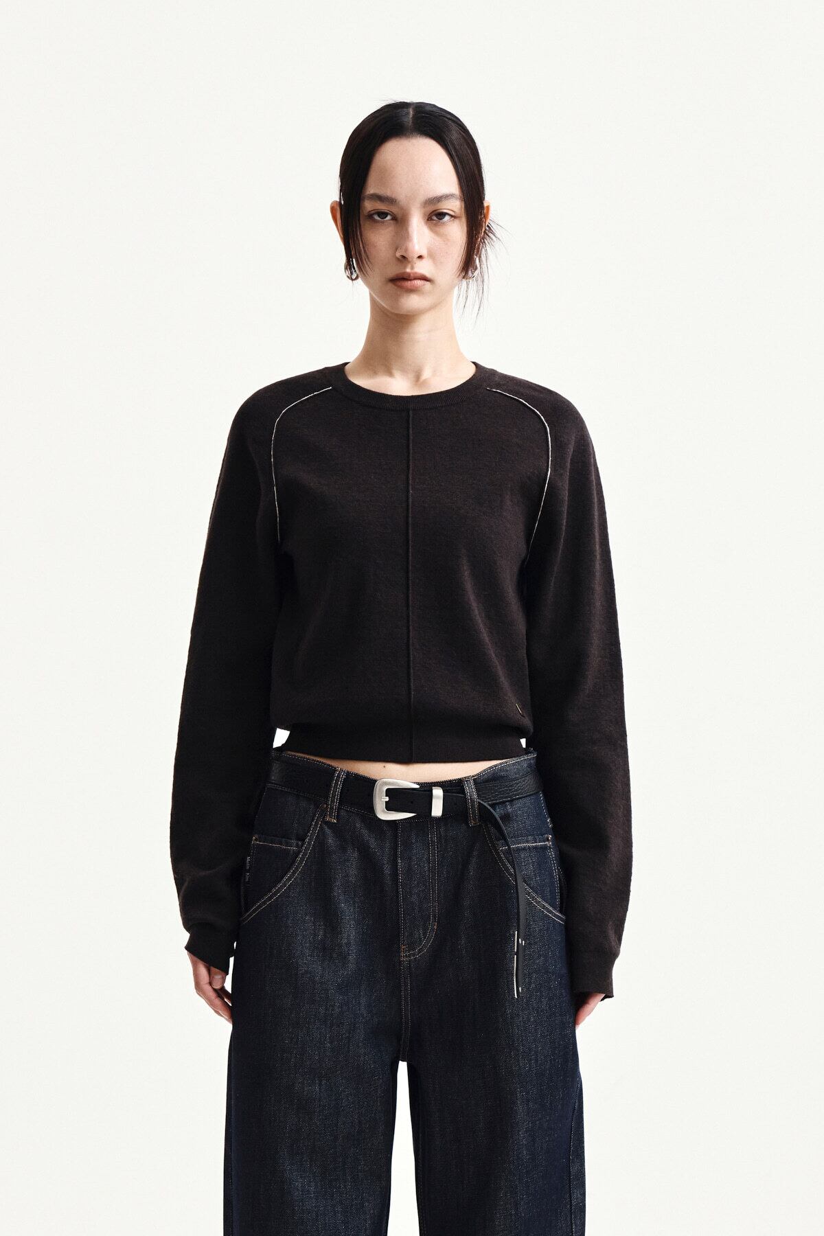 [Matin Kim] RAGLAN SLEEVE KNIT PULLOVER IN DARK BROWN