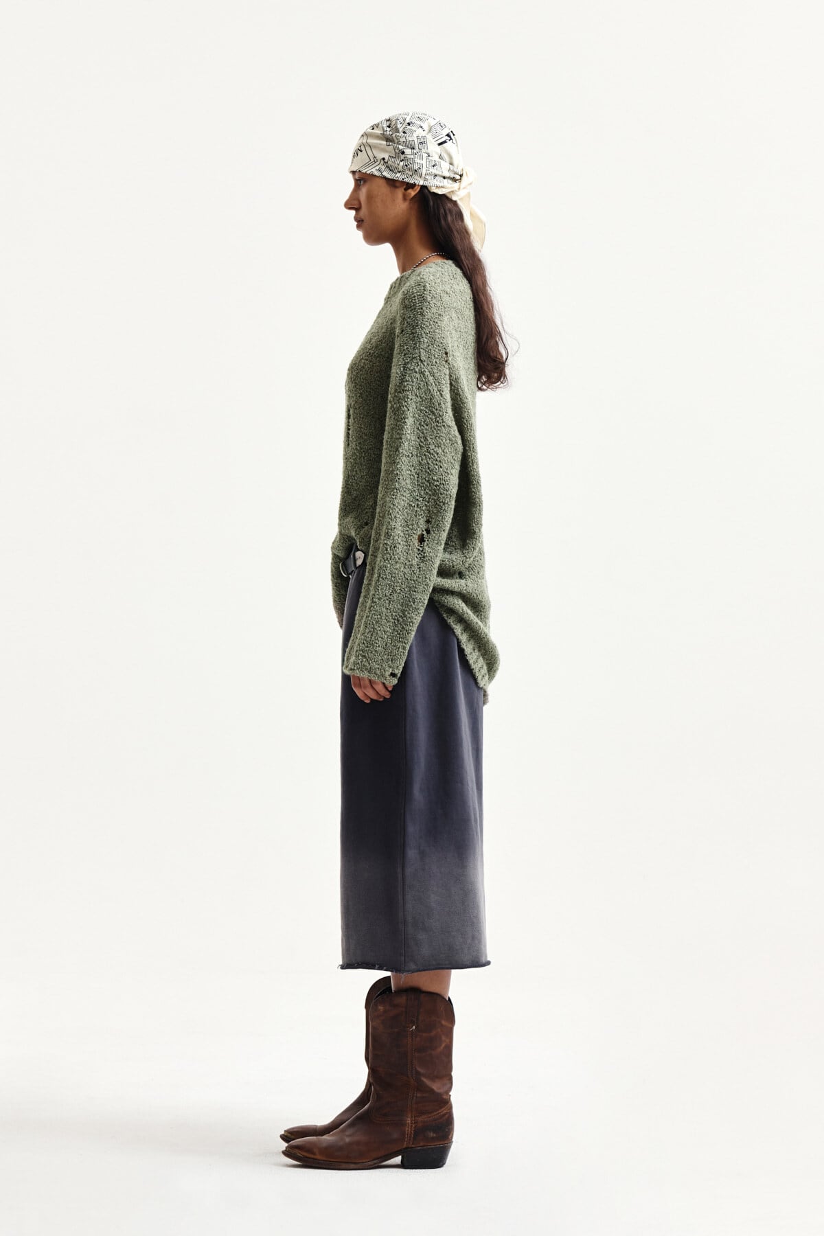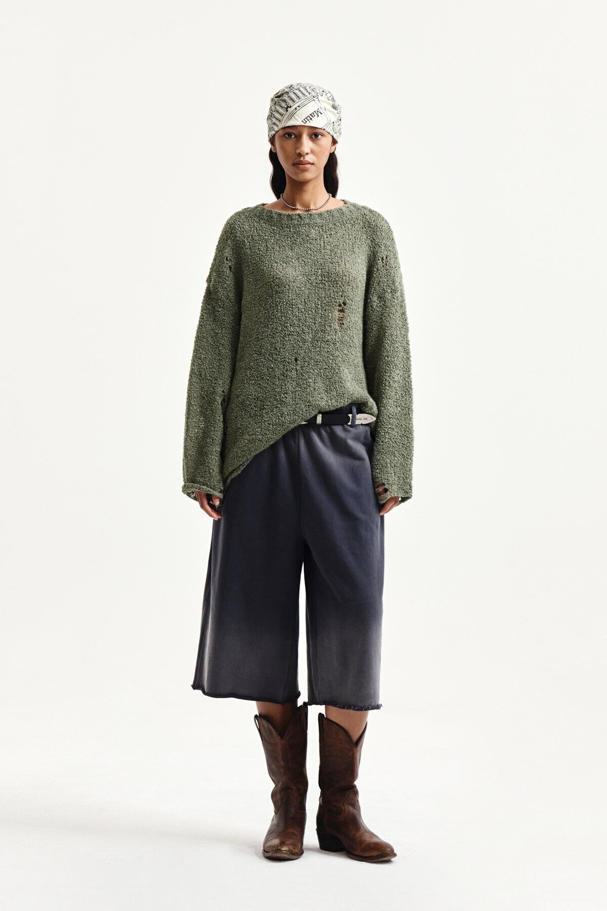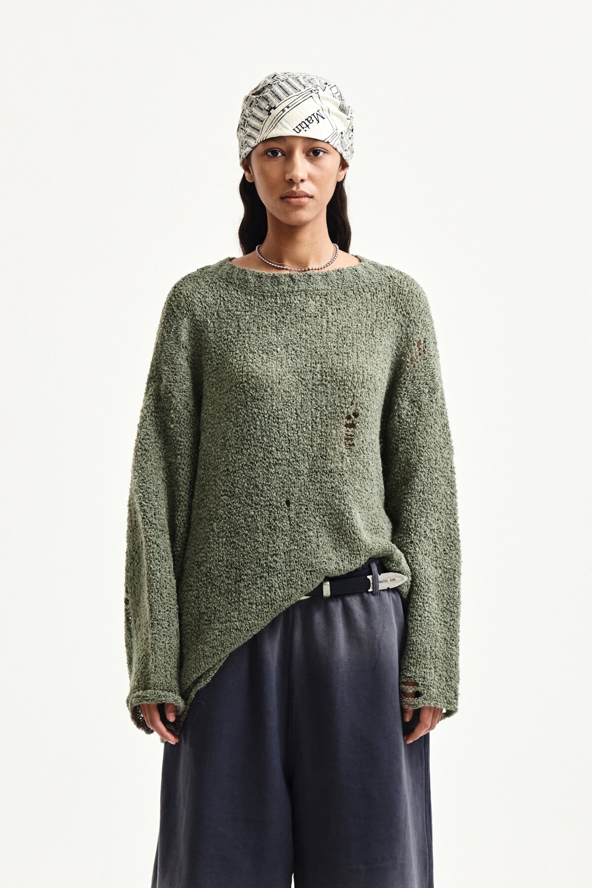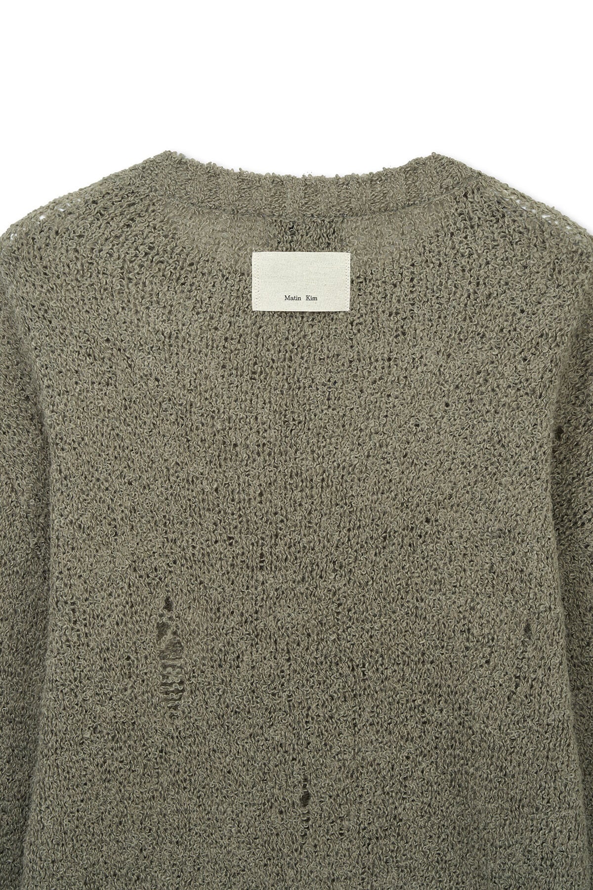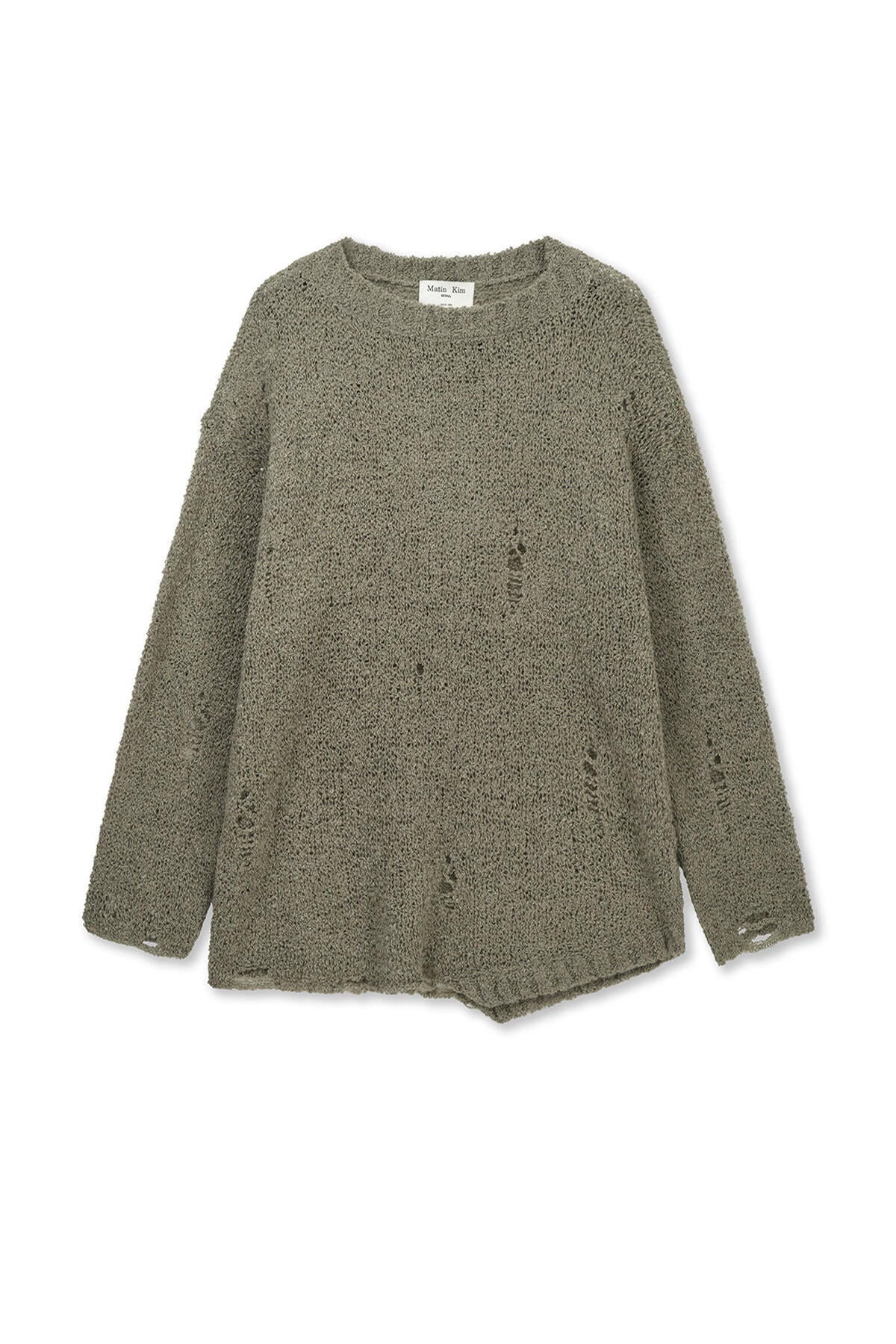 [Matin Kim] ASYMMETRIC DAMAGED KNIT PULLOVER IN KHAKI