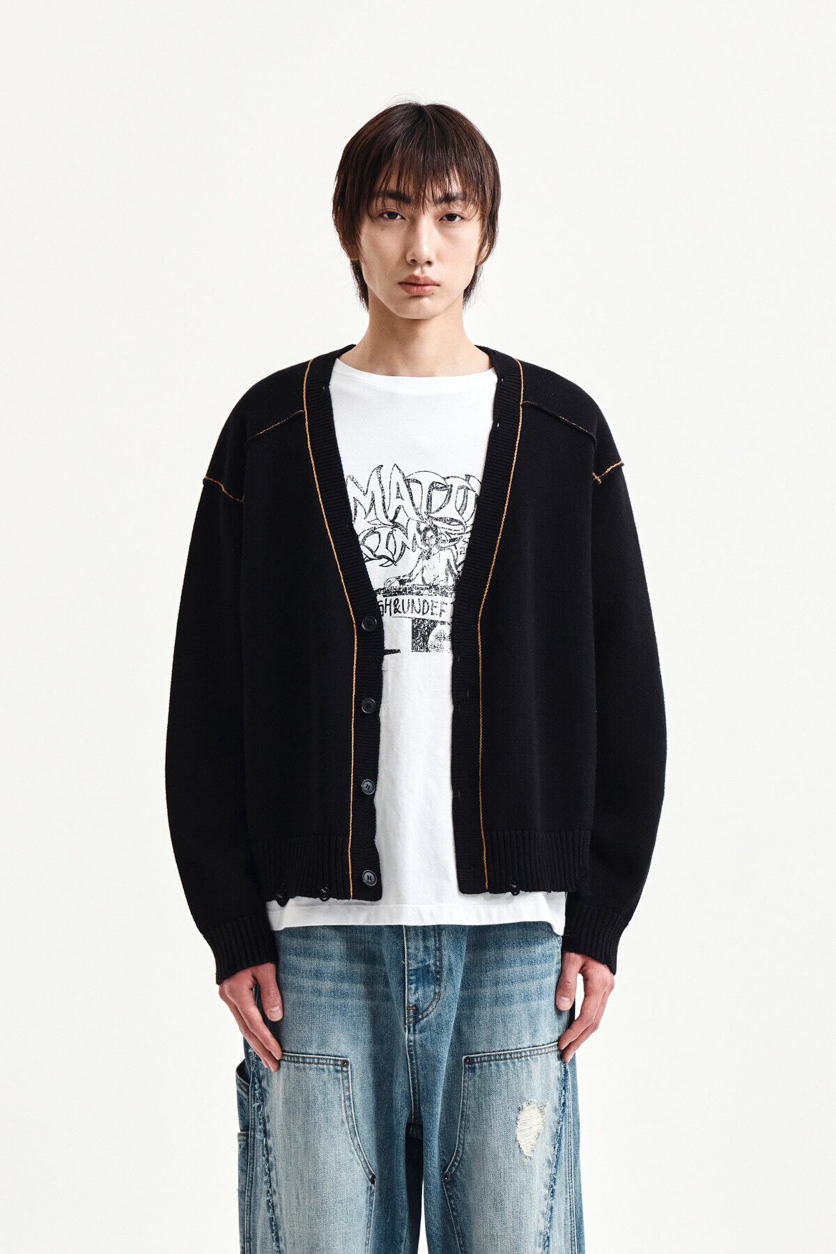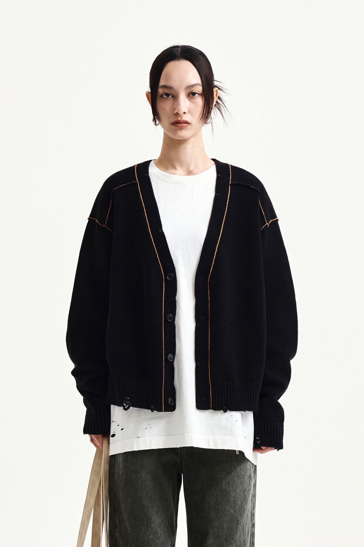 [Matin Kim] BACK LOGO LINE POINT KNIT CARDIGAN IN BLACK