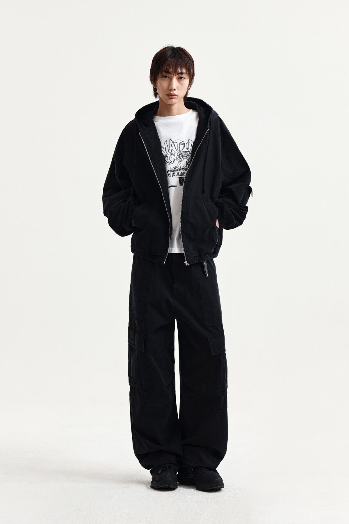 [Matin Kim] WASHED COTTON HOODY ZIP UP IN BLACK 正規品 韓国ブランド 韓国通販 韓国代行 韓国ファッション マーティンキム matinkim 日本 店舗