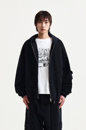 [Matin Kim] WASHED COTTON HOODY ZIP UP IN BLACK