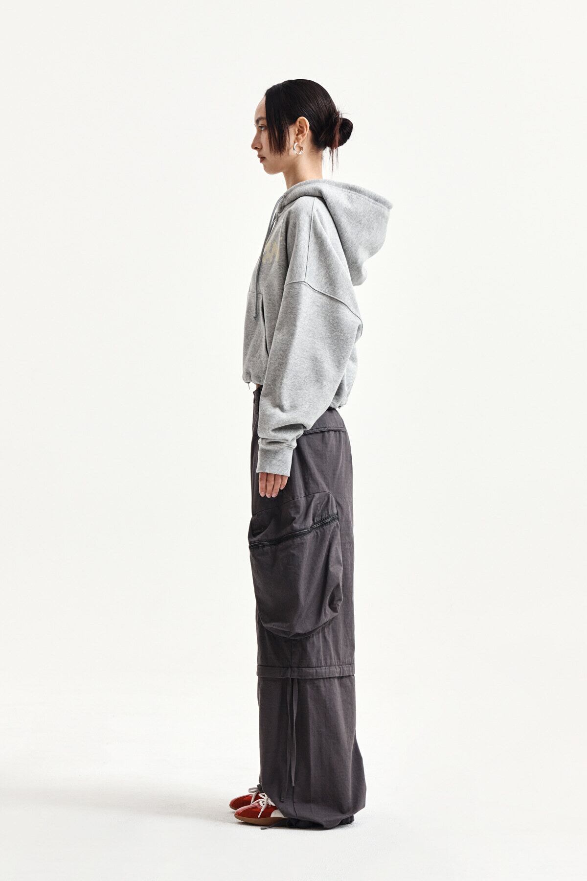 [Matin Kim] GRAFFITI LOGO CROP HOODY ZIP UP IN GREY