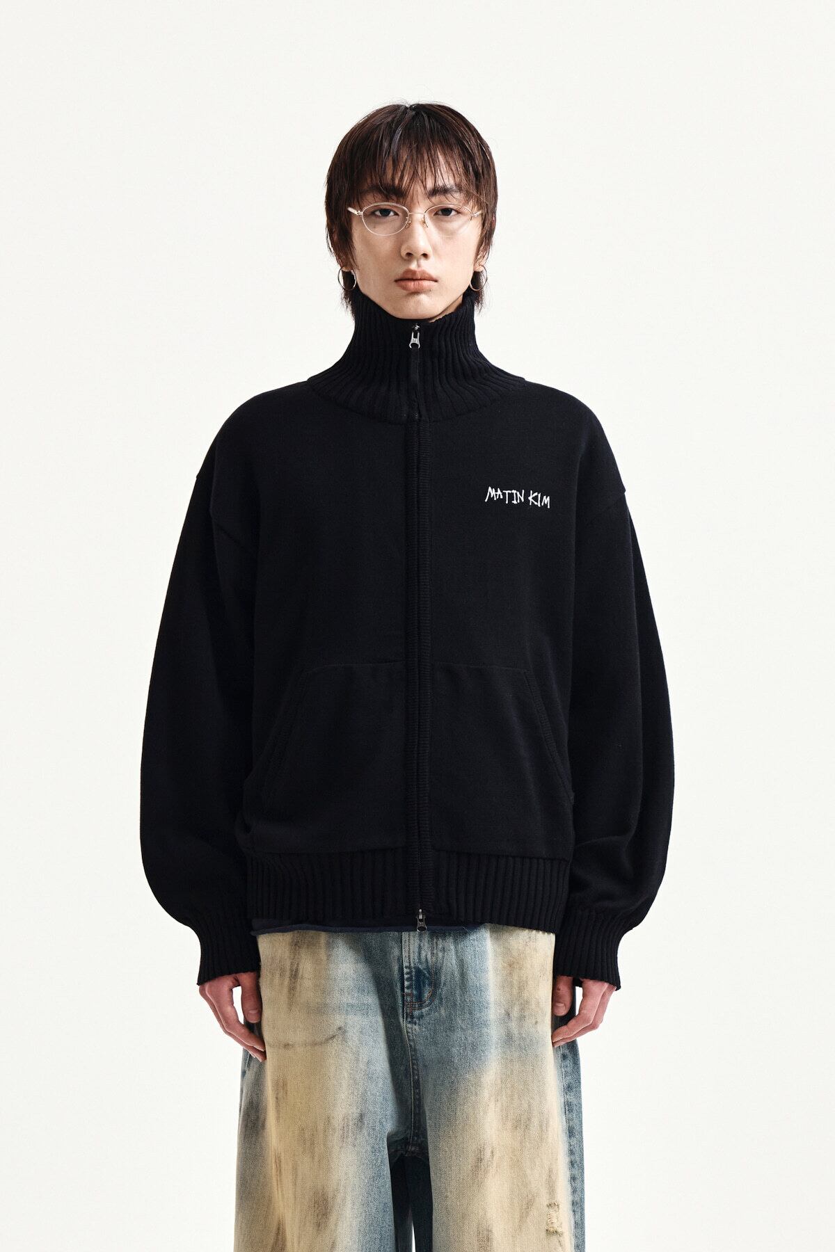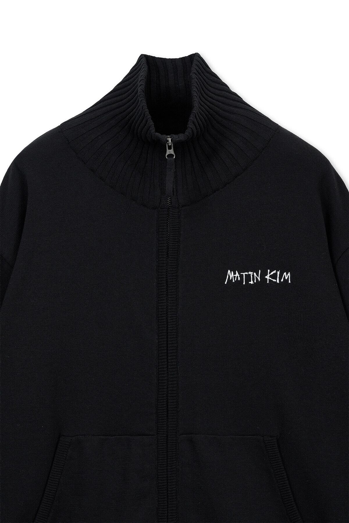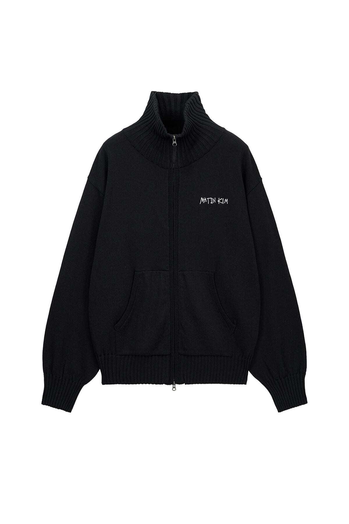 [Matin Kim] HIGH NECK EMBROIDERED LOGO ZIP UP FOR MEN IN BLACK