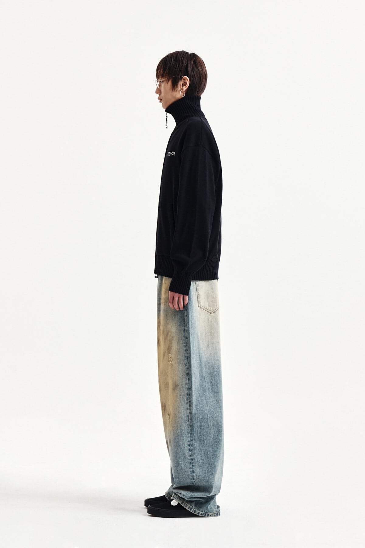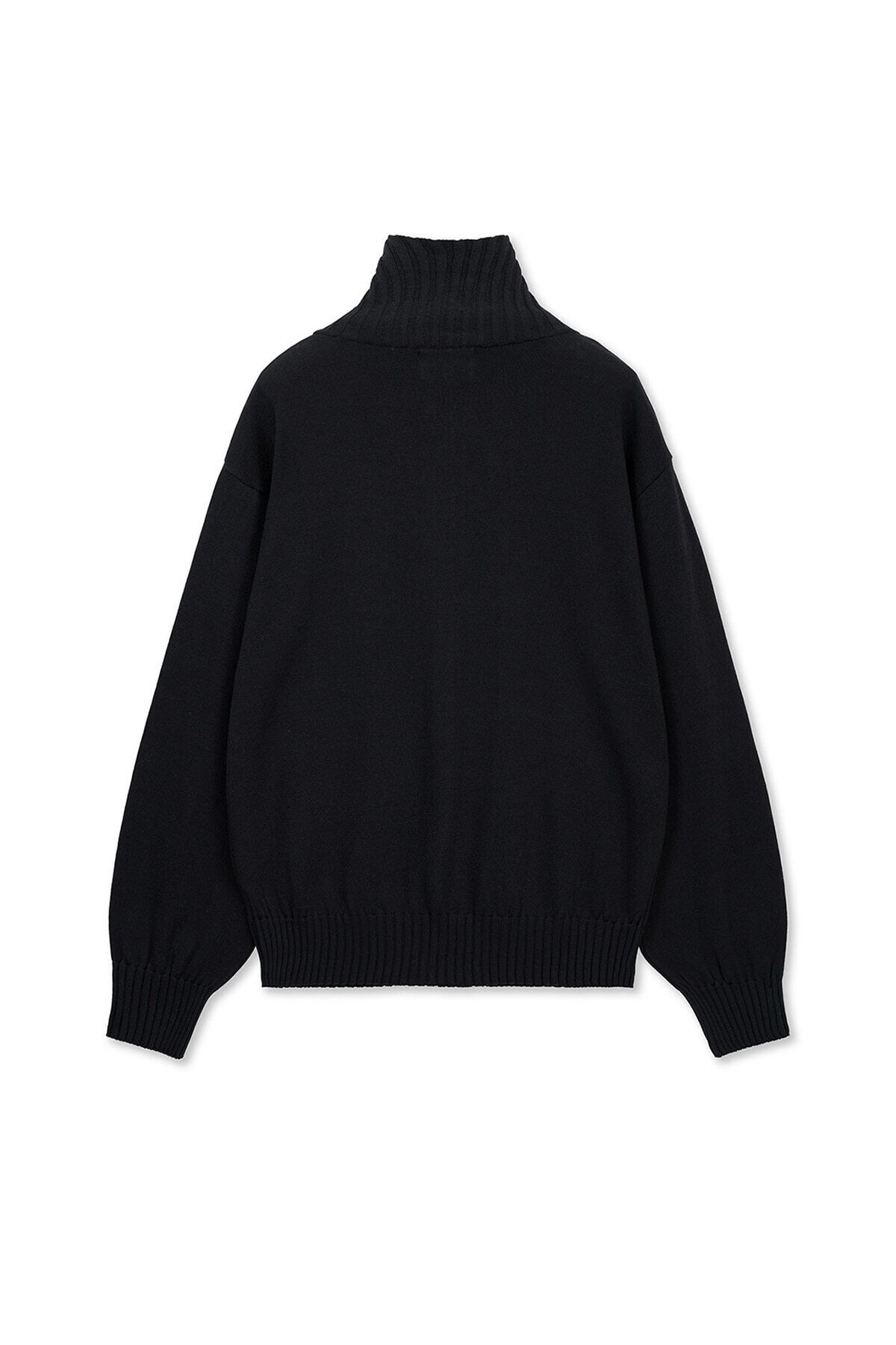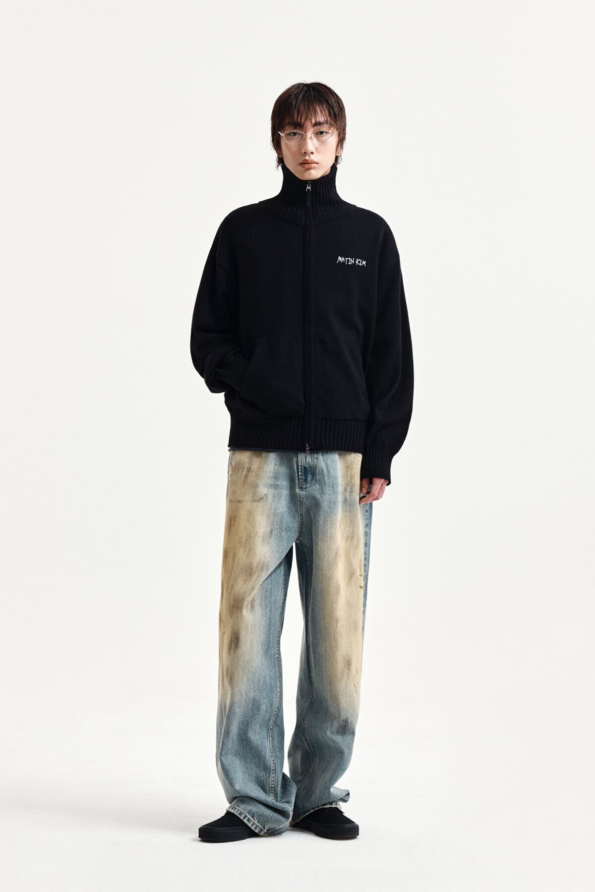 [Matin Kim] HIGH NECK EMBROIDERED LOGO ZIP UP FOR MEN IN BLACK