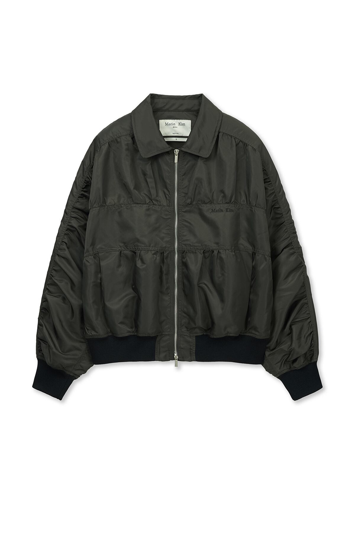 [Matin Kim] SMALL LOGO SHIRRING JUMPER IN KHAKI