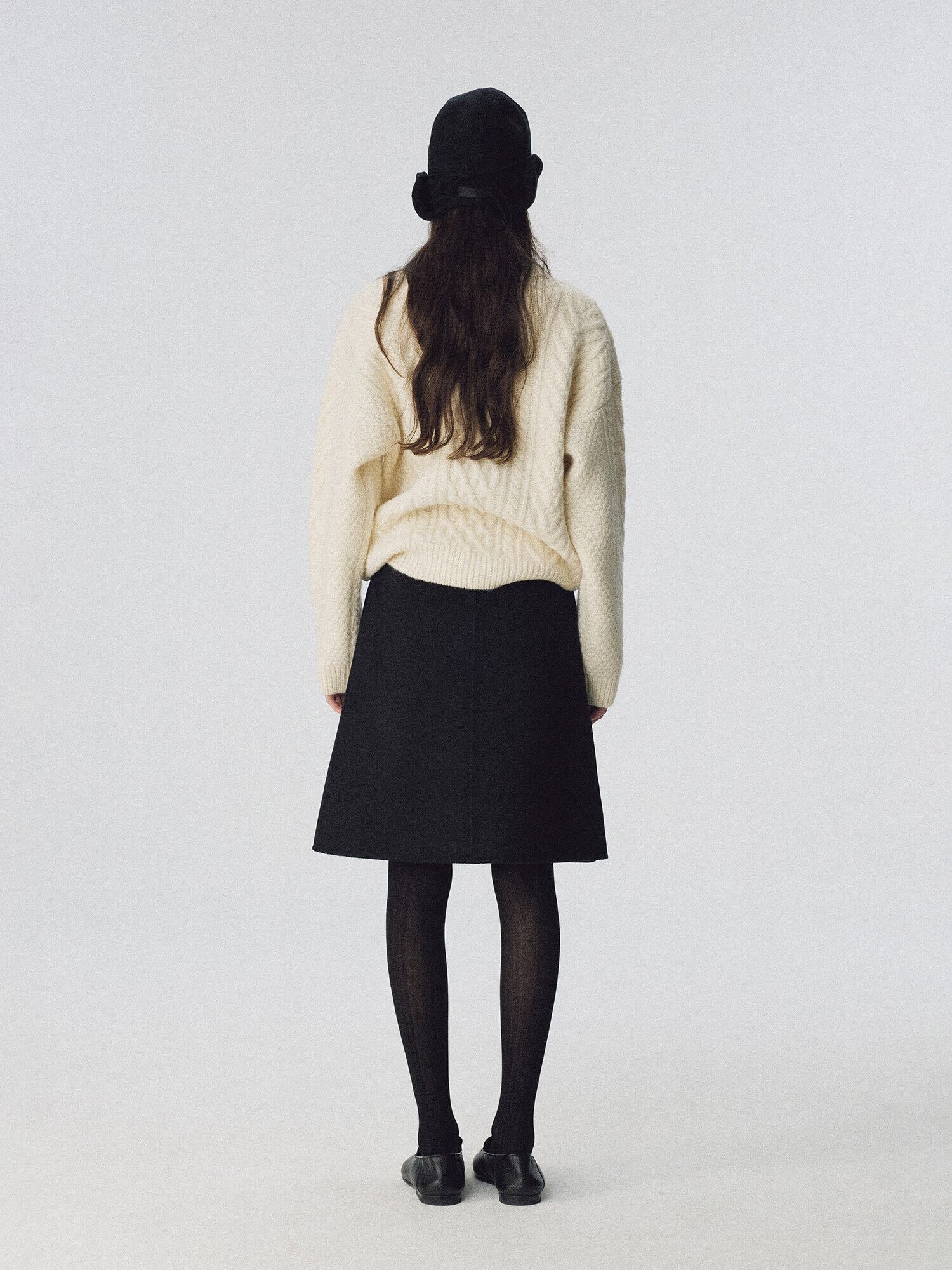 [NOTHING WRITTEN] Fleur wool skirt (Dark navy)