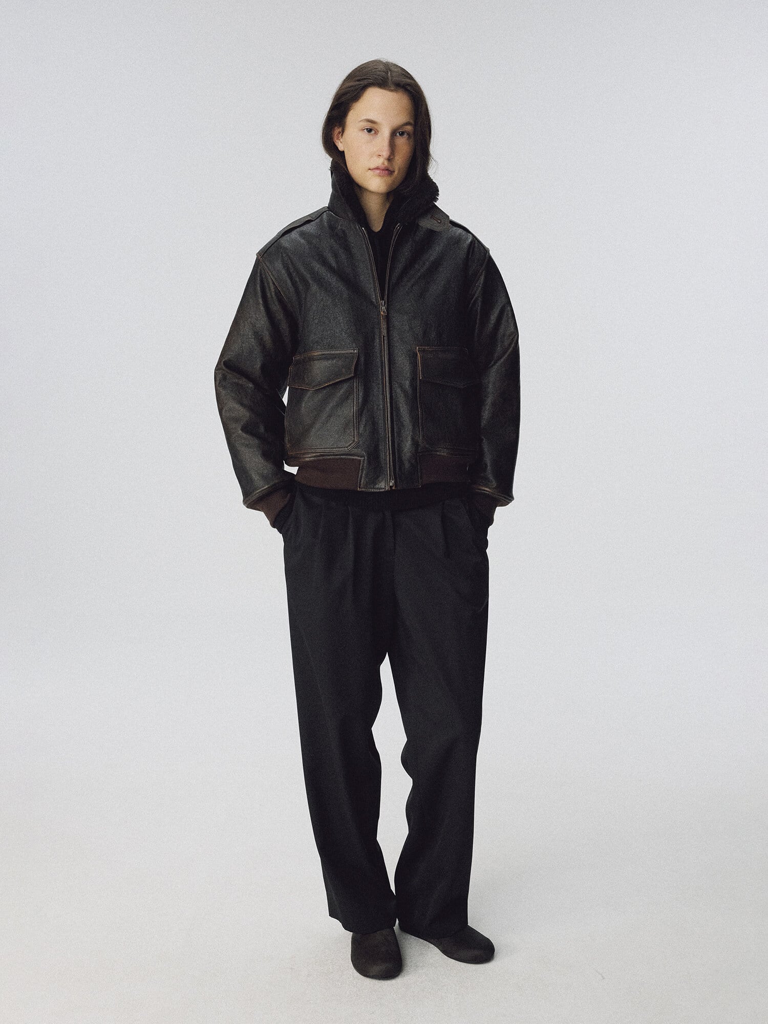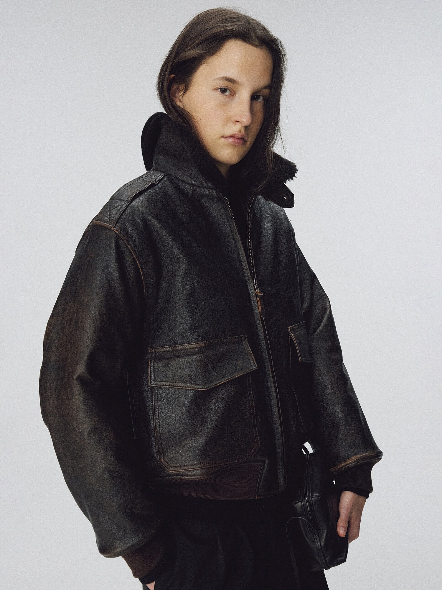 [NOTHING WRITTEN] Vintage captain leather jacket (Tan)