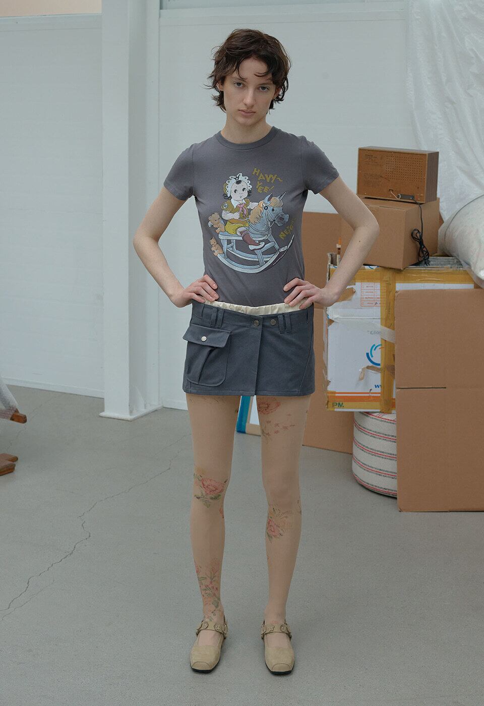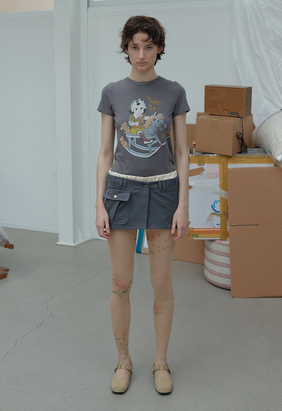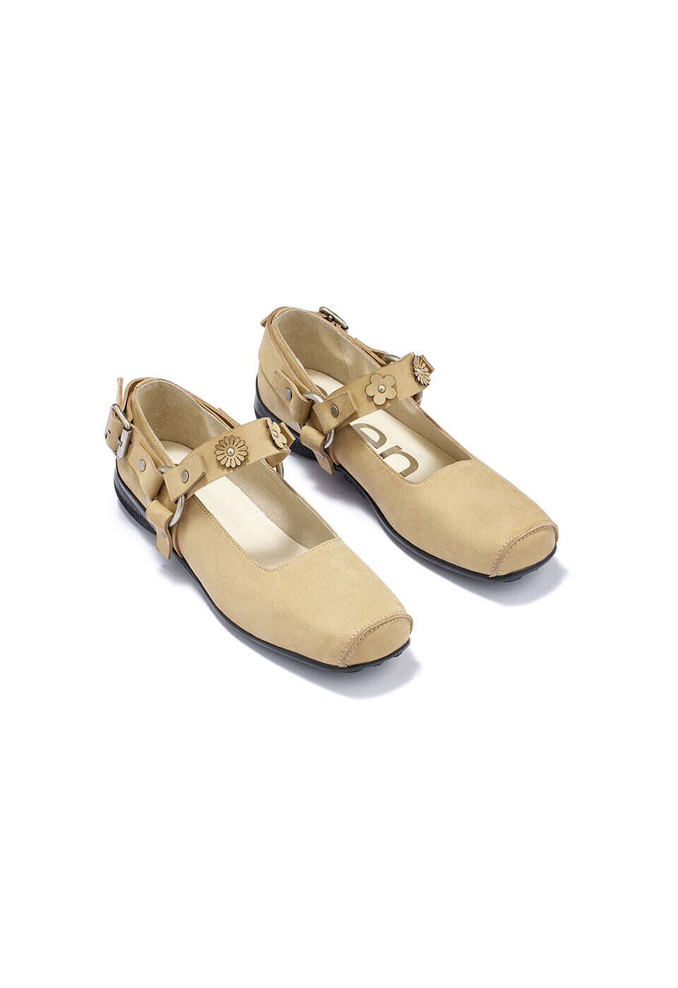 [OPEN YY] FLOWER-STUD BALLET FLATS, BEIGE 正規品 韓国ブランド 韓国通販 韓国代行 韓国ファッション オープン ワイワイ 日本 店舗