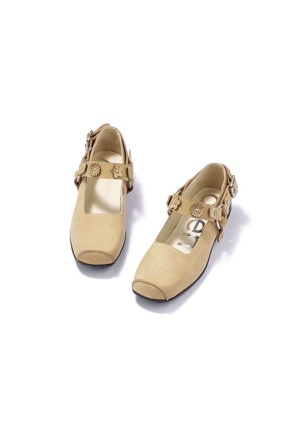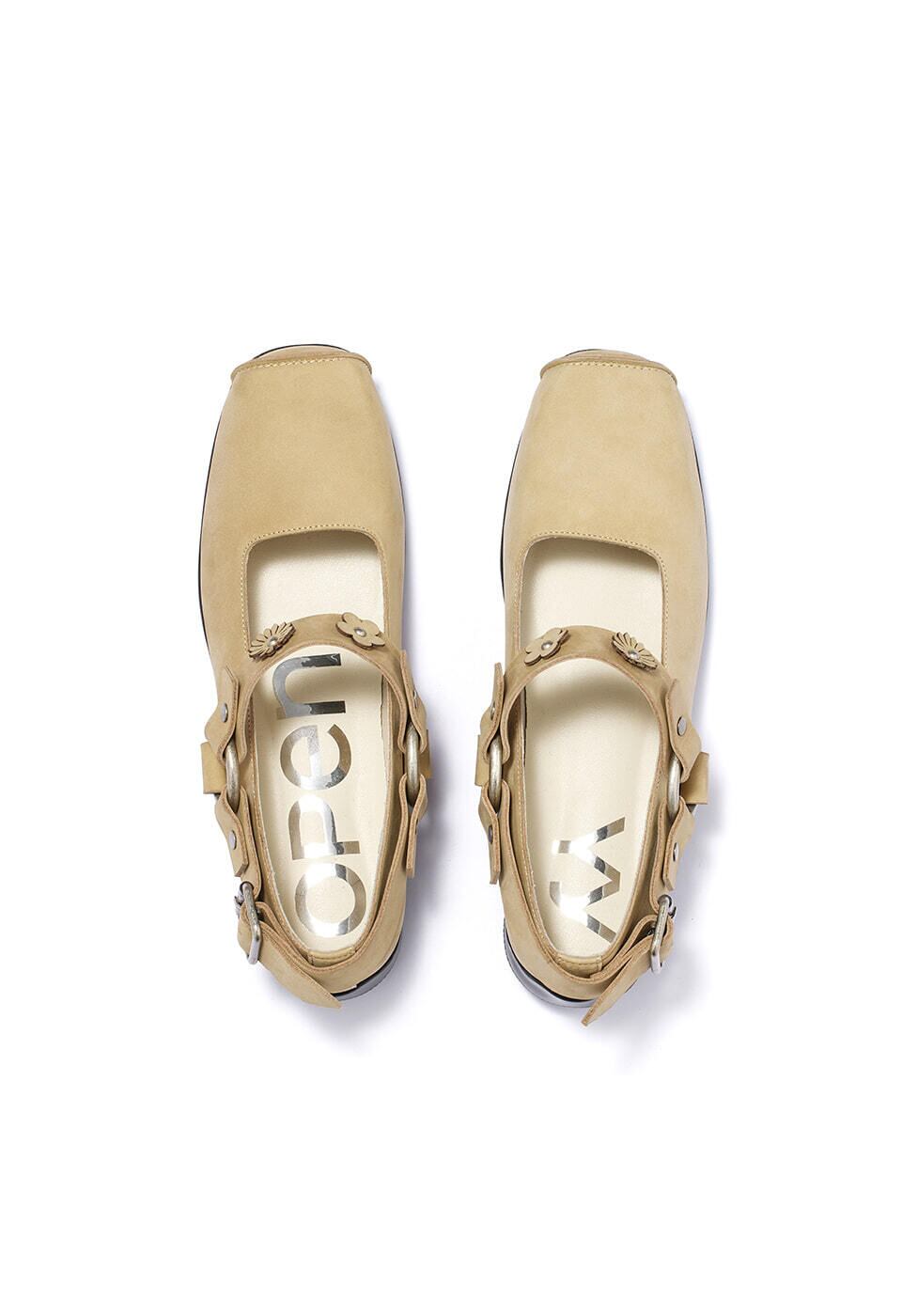[OPEN YY] FLOWER-STUD BALLET FLATS, BEIGE