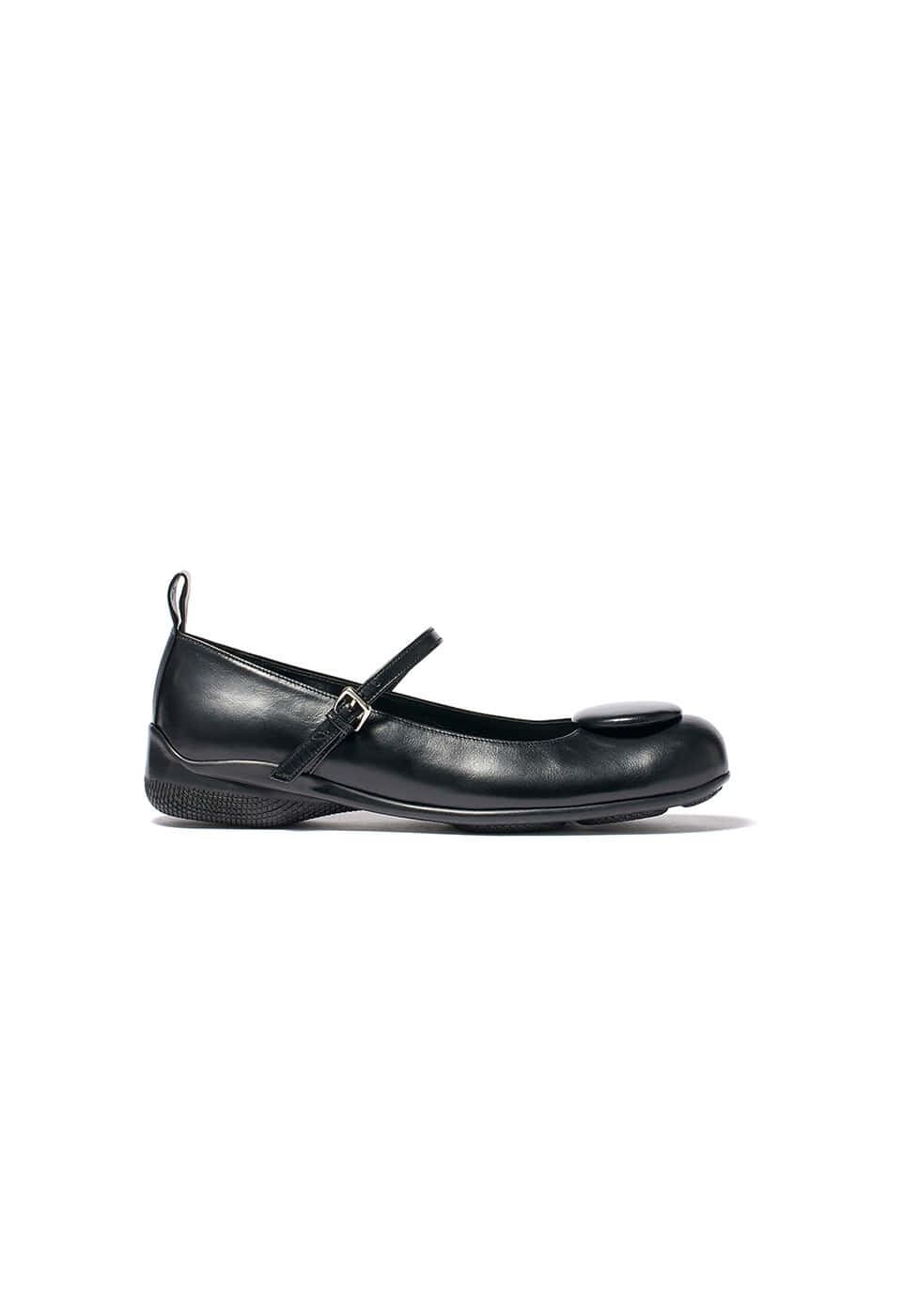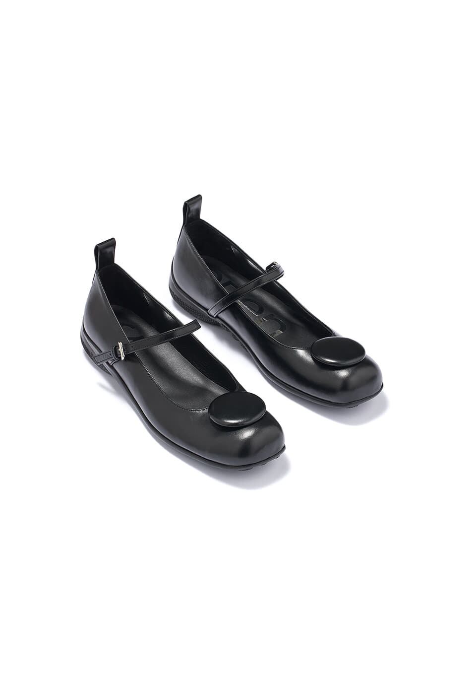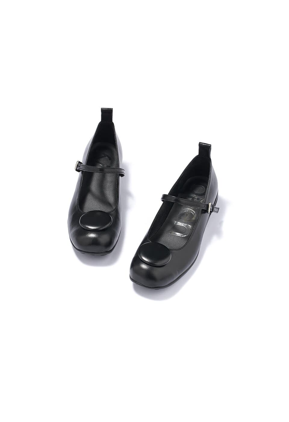[OPEN YY] BADGE APPLIQUÉ BALLET FLATS, BLACK