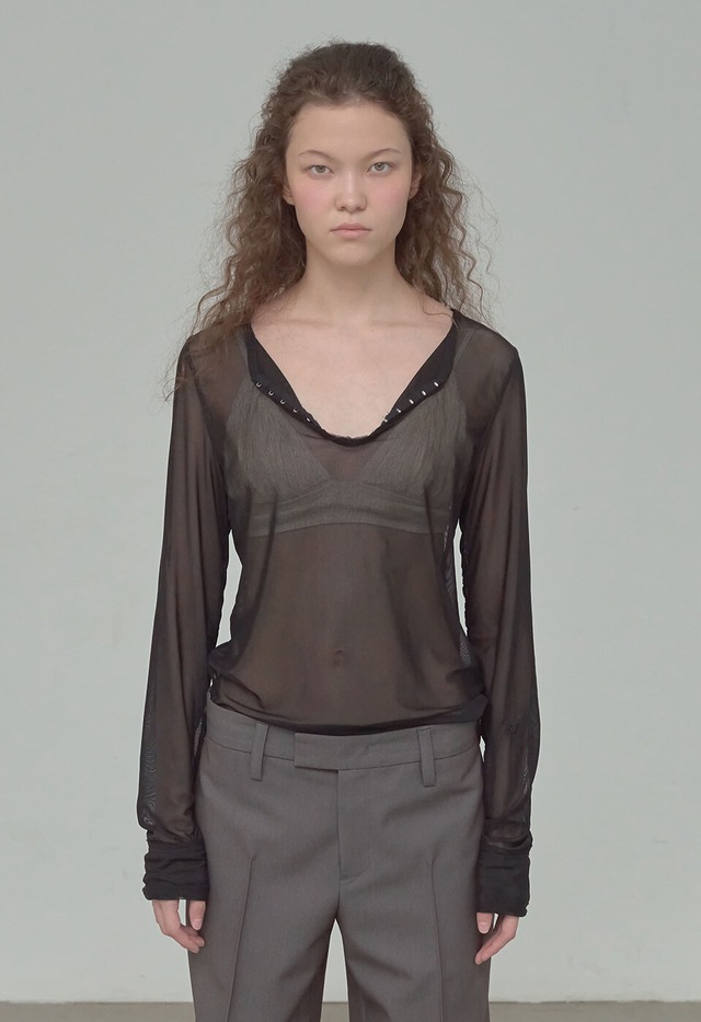 [OPEN YY] MESH HOOK HENLEY LONG SLEEVE, BLACK 正規品 韓国ブランド 韓国通販 韓国代行 韓国ファッション オープン ワイワイ 日本 店舗