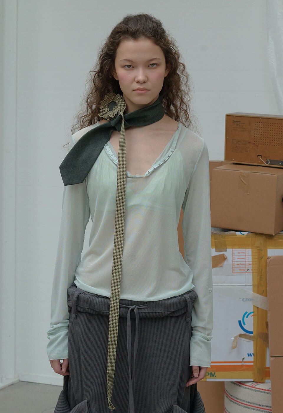 [OPEN YY] MESH HOOK HENLEY LONG SLEEVE, MINT 正規品 韓国ブランド 韓国通販 韓国代行 韓国ファッション オープン ワイワイ 日本 店舗