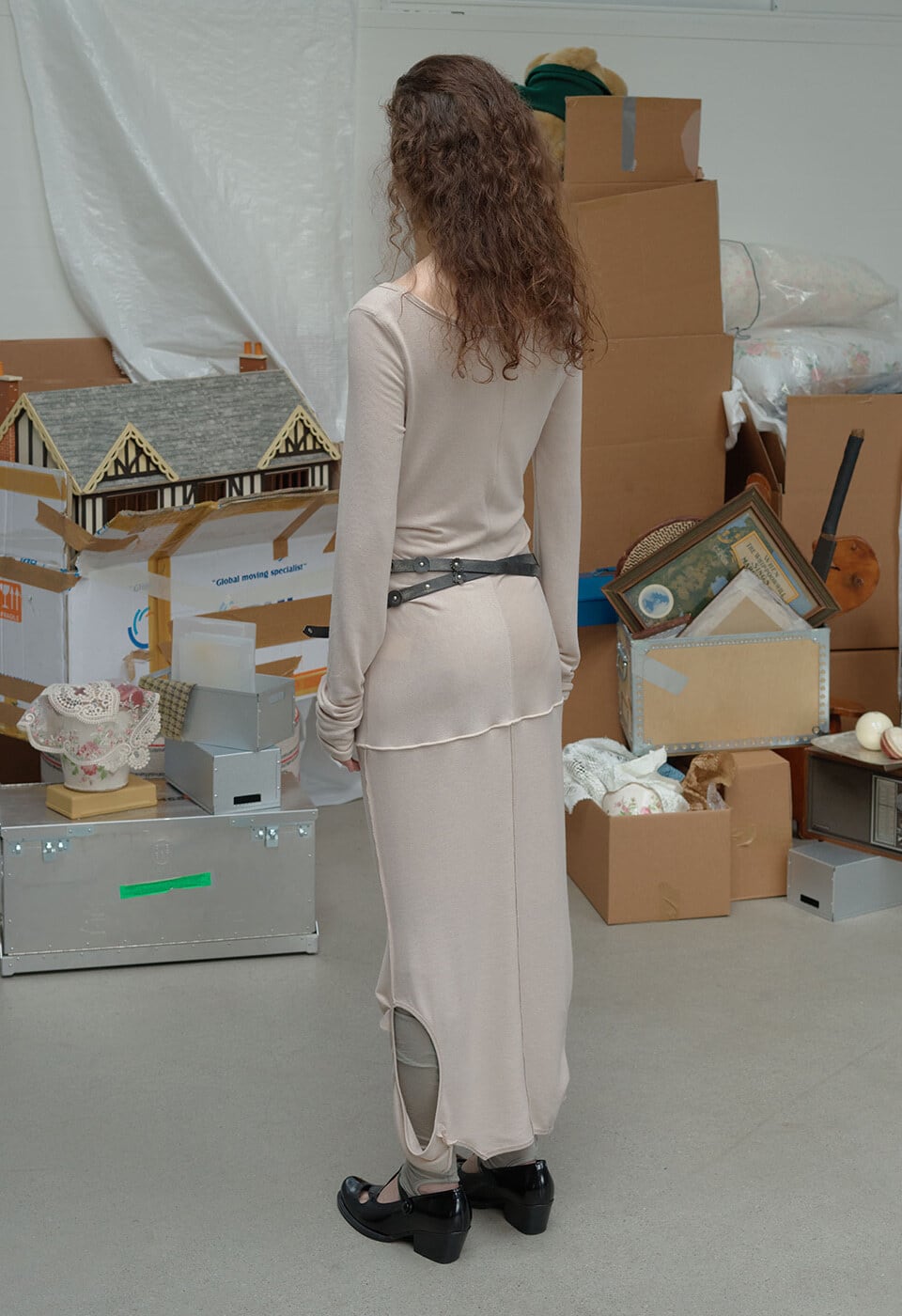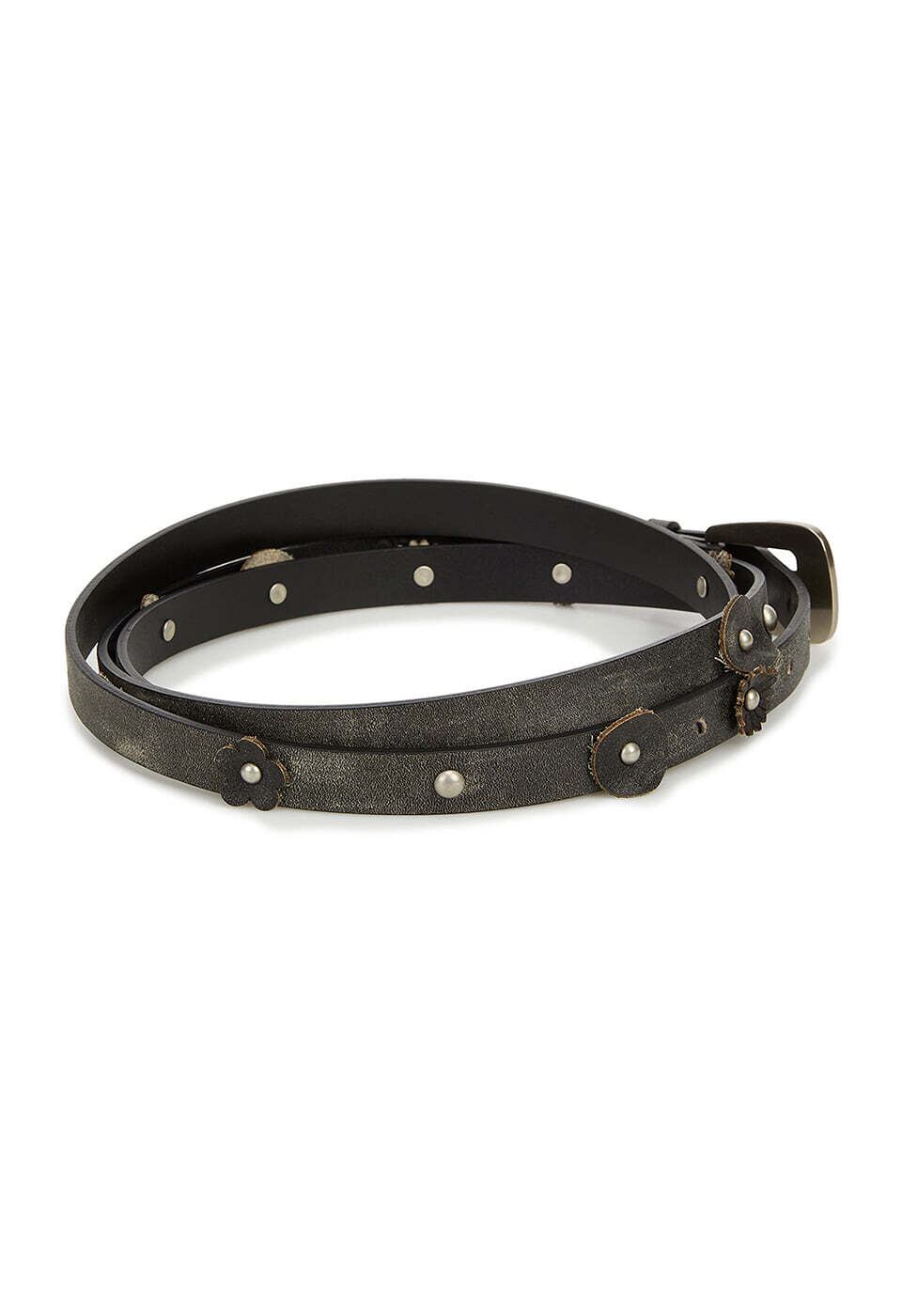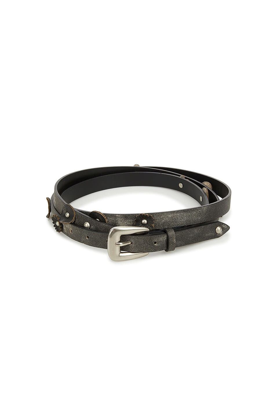 [OPEN YY] WRAP AROUND FLOWER-STUD BELT, CHARCOAL