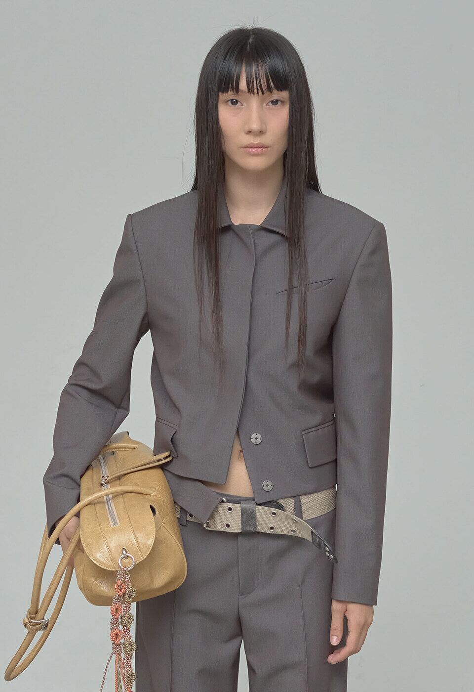 [OPEN YY] SINGLE-BREASTED BLAZER, CHARCOAL