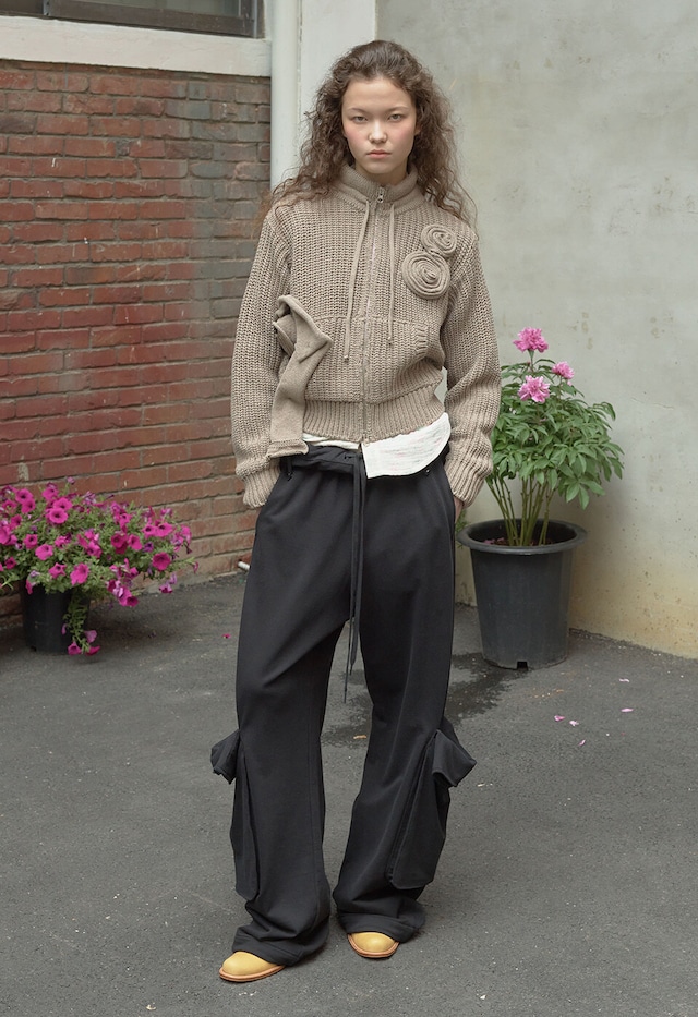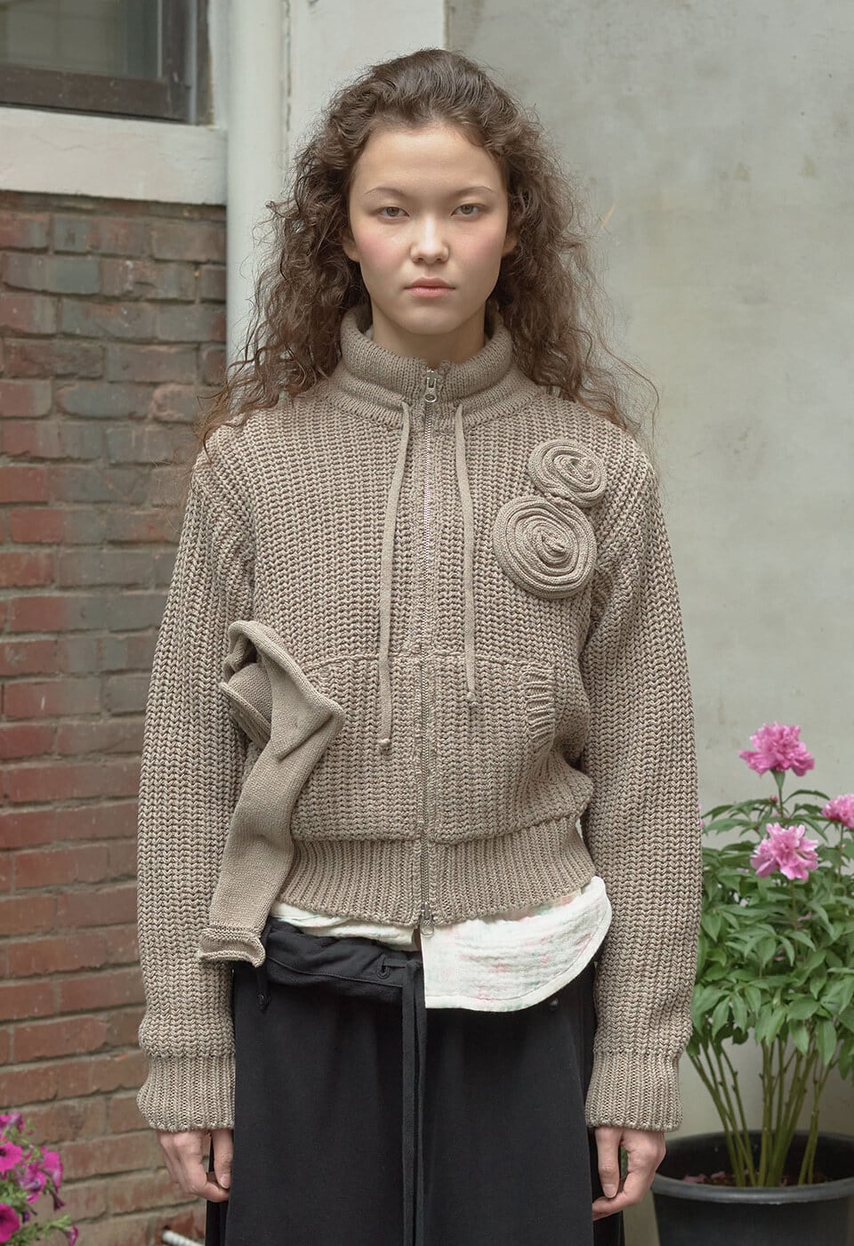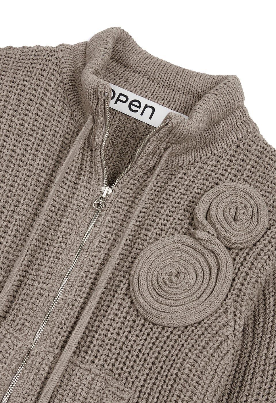 [OPEN YY] APPLIQUÉ KNIT ZIPUP JACKET, KHAKI