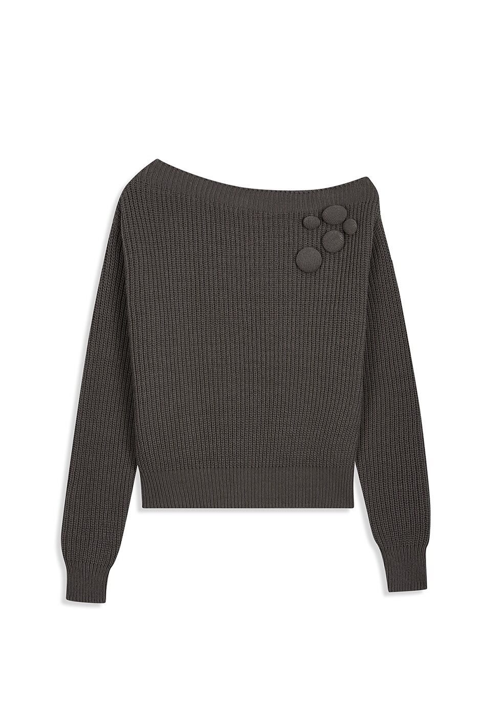 [OPEN YY] BADGE APPLIQUÉ KNIT PULLOVER, CHARCOAL