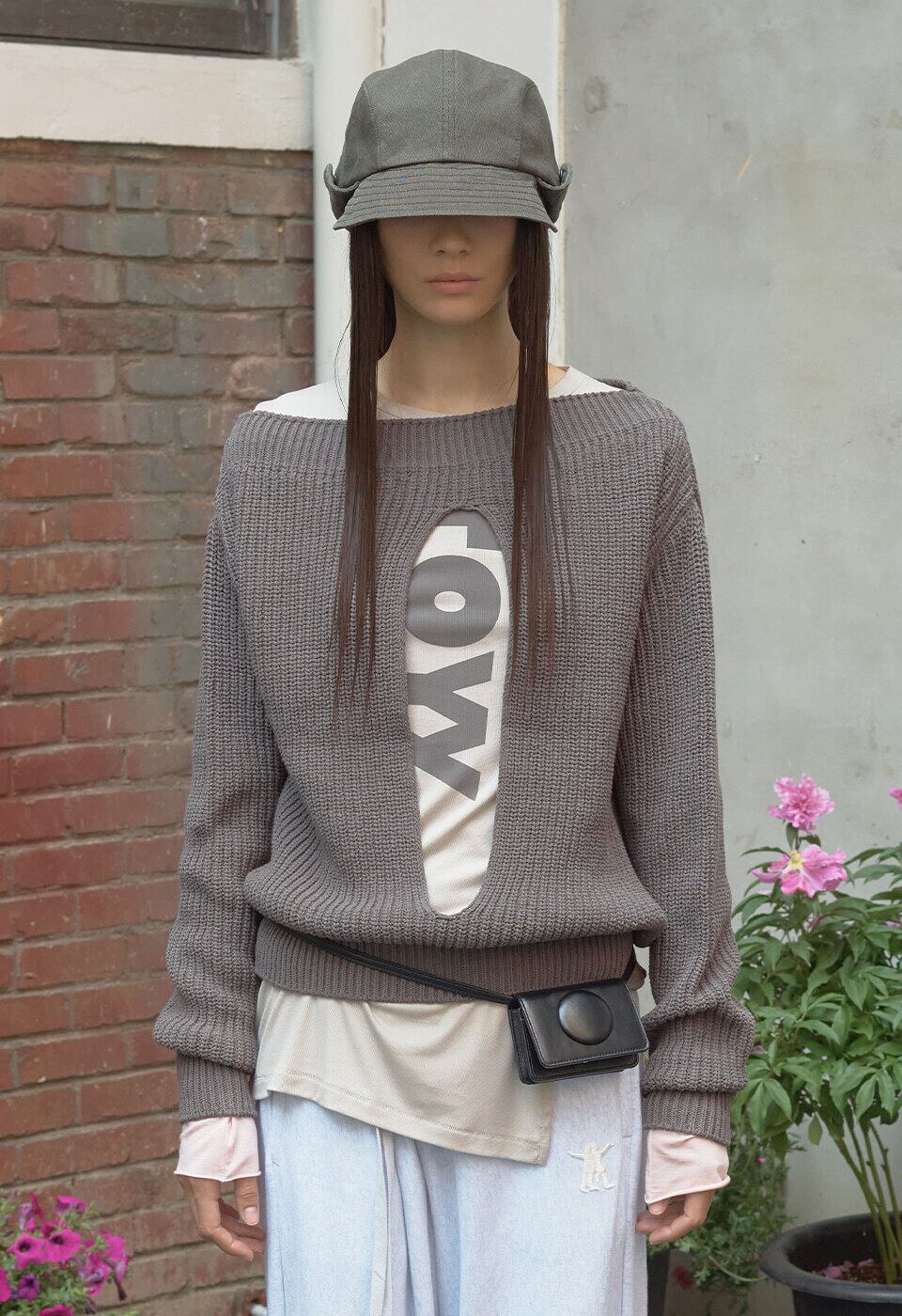 [OPEN YY] BADGE APPLIQUÉ KNIT PULLOVER, CHARCOAL 正規品 韓国ブランド 韓国通販 韓国代行 韓国ファッション オープン ワイワイ 日本 店舗
