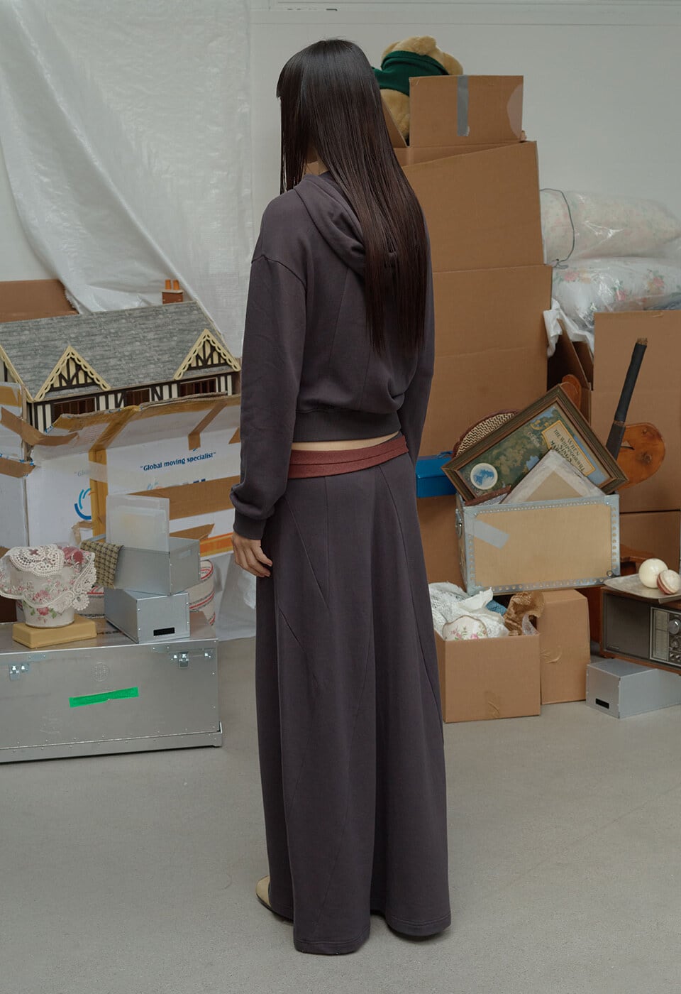 [OPEN YY] SLANT JERSEY SKIRT, CHARCOAL