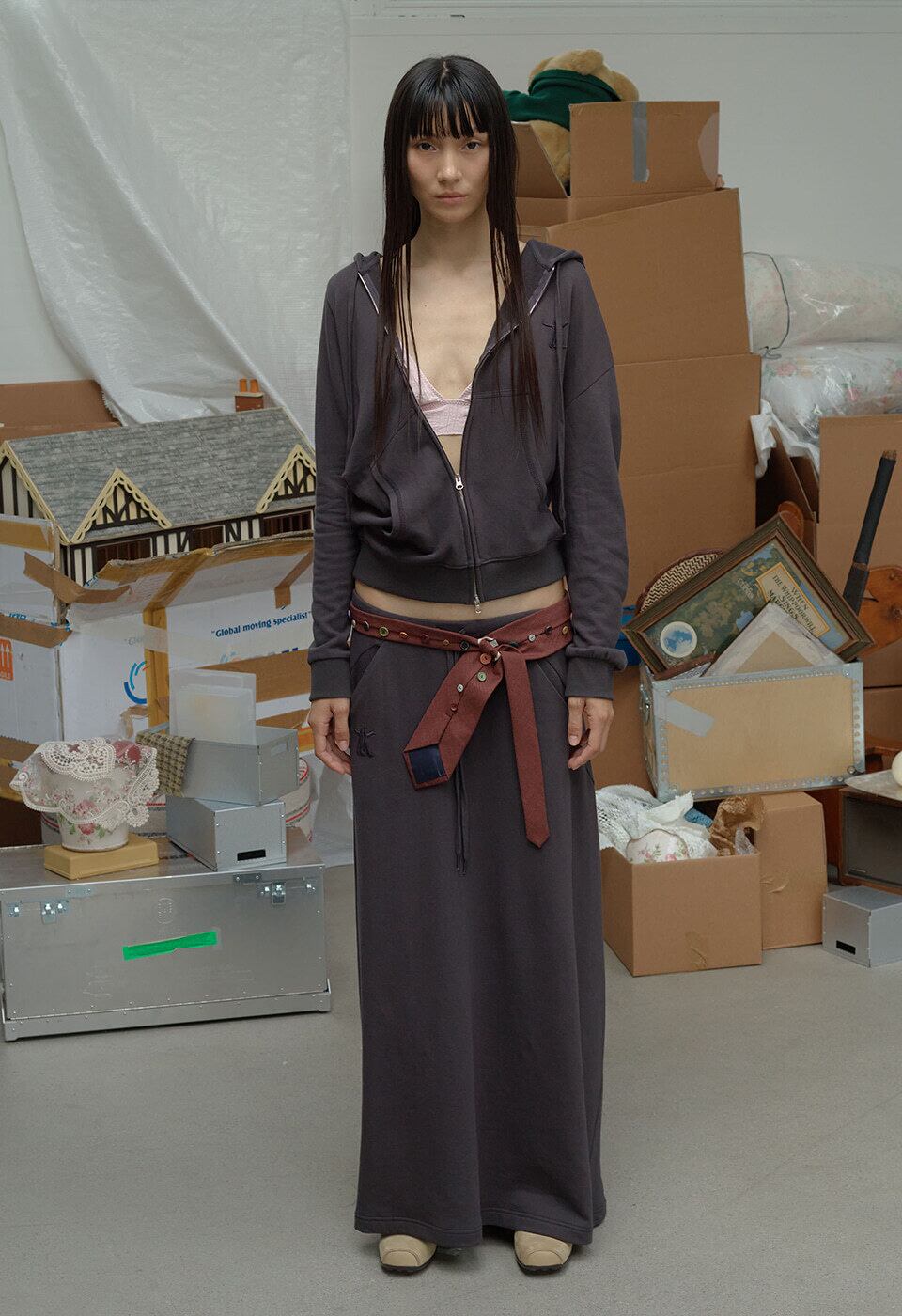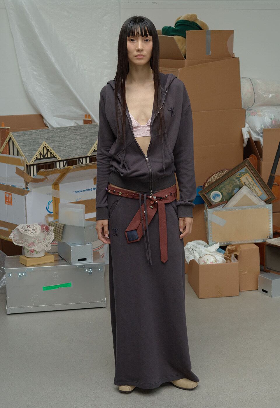 [OPEN YY] SLANT JERSEY SKIRT, CHARCOAL 正規品 韓国ブランド 韓国通販 韓国代行 韓国ファッション オープン ワイワイ 日本 店舗