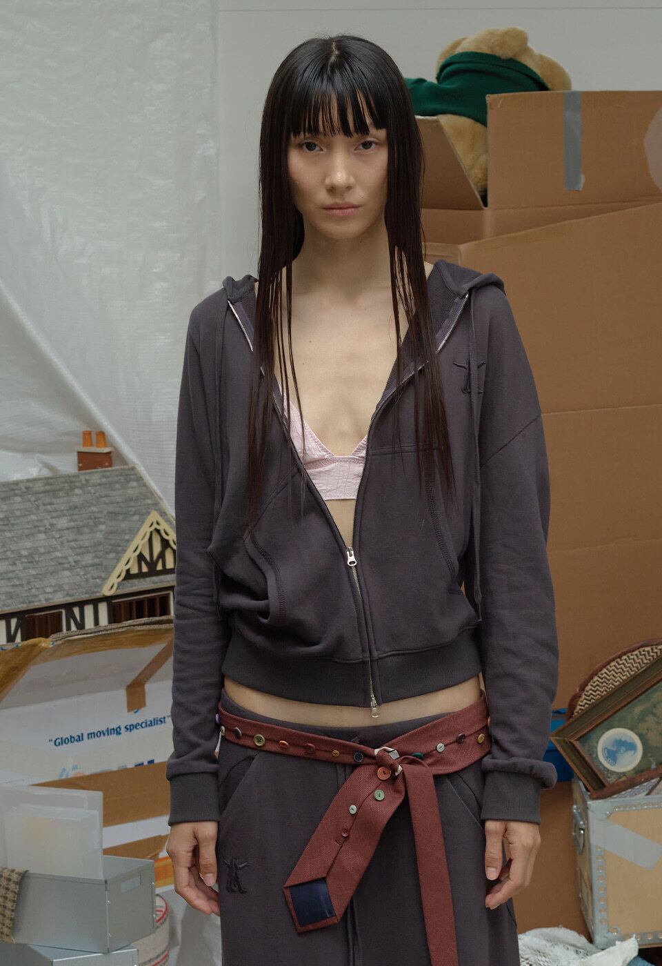 [OPEN YY] SLANT ZIP HOODIE, CHARCOAL