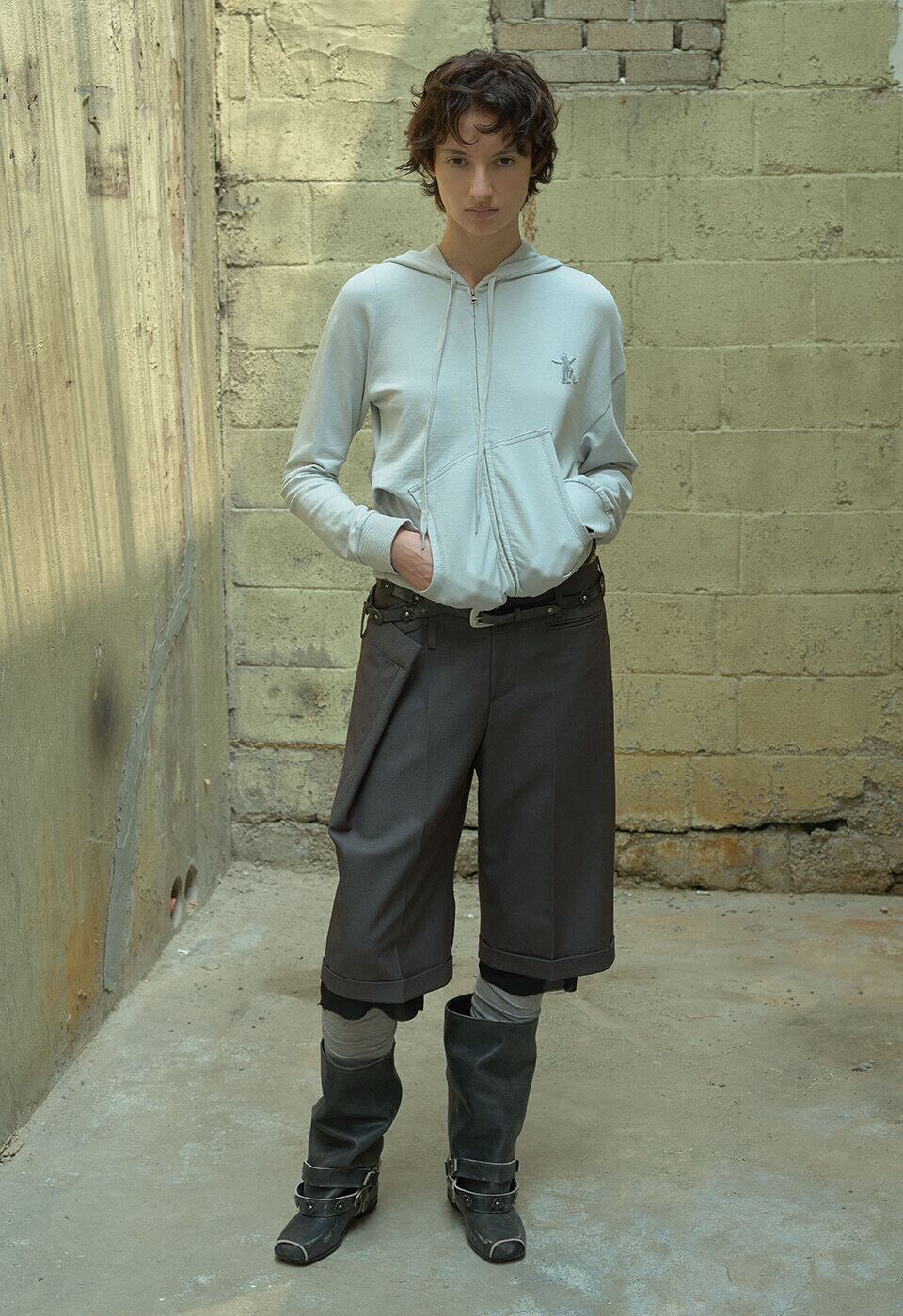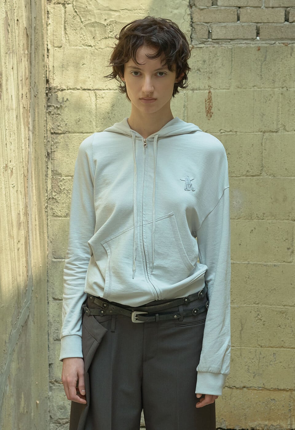 [OPEN YY] SLANT ZIP HOODIE, LIGHT GRAY