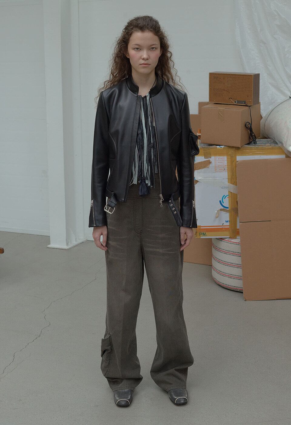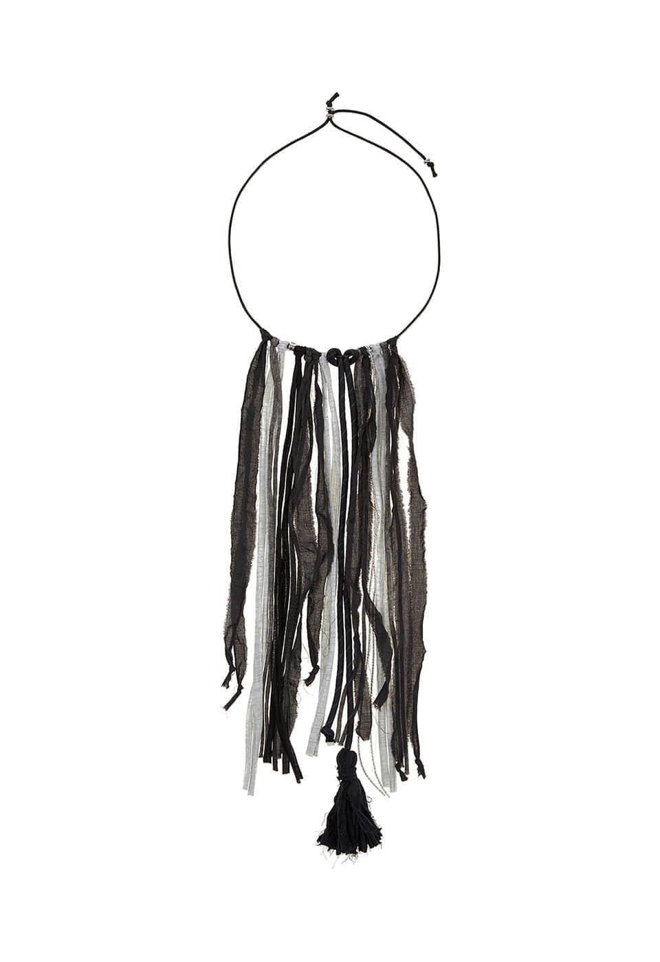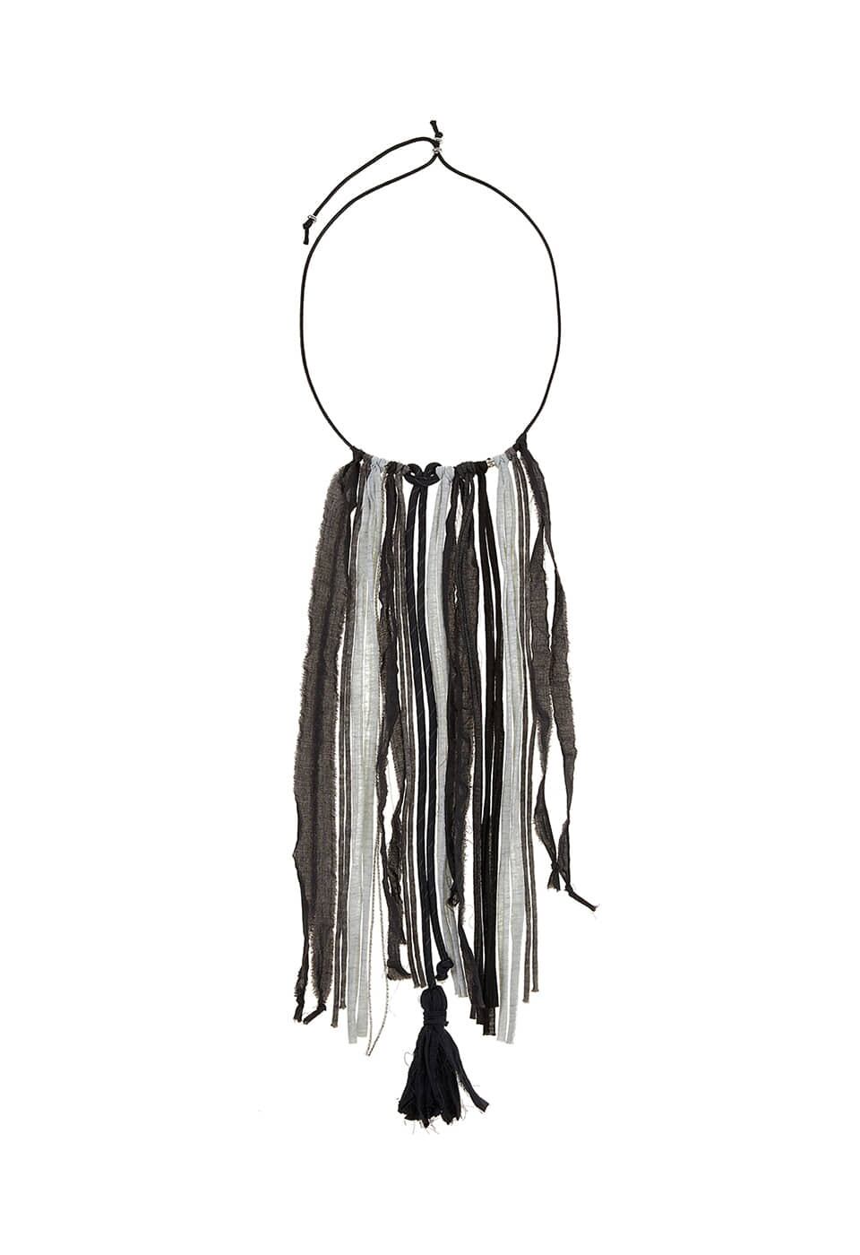 [OPEN YY] FABRIC FRINGE NECKLACE, BLACK