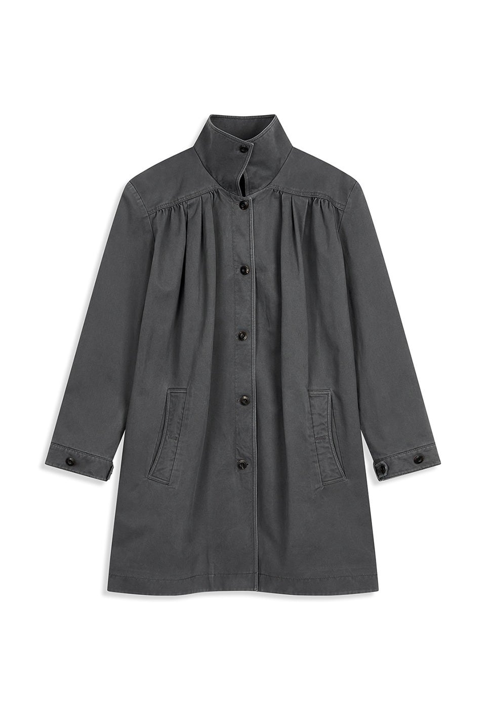 [OPEN YY] OVER SHIRRED TOP COAT, CHARCOAL