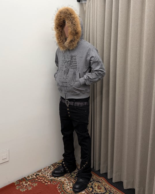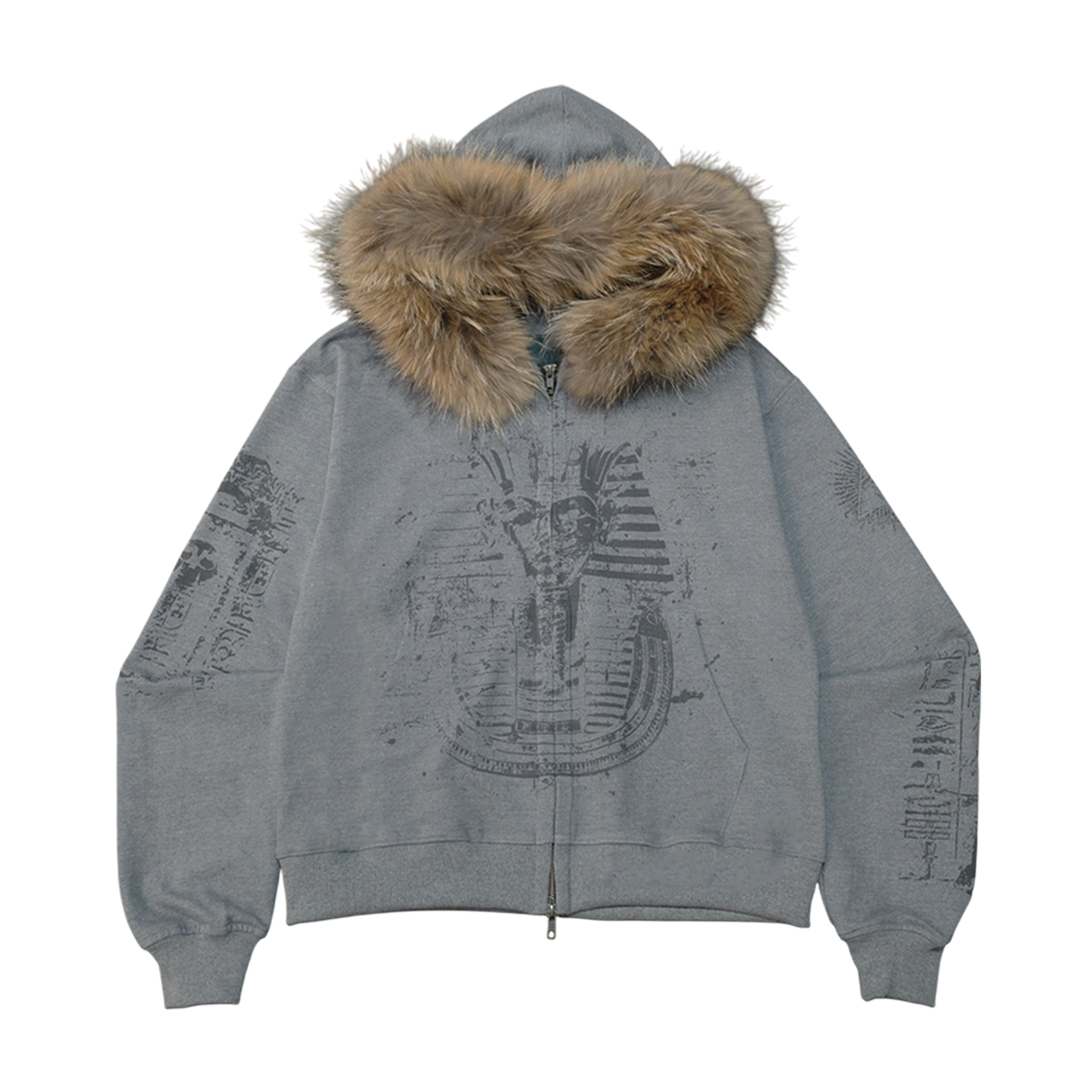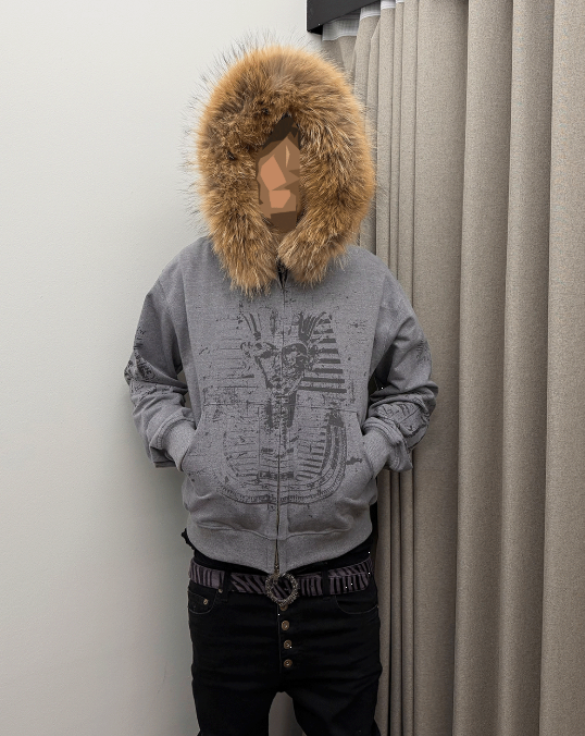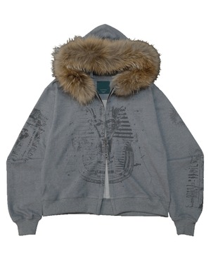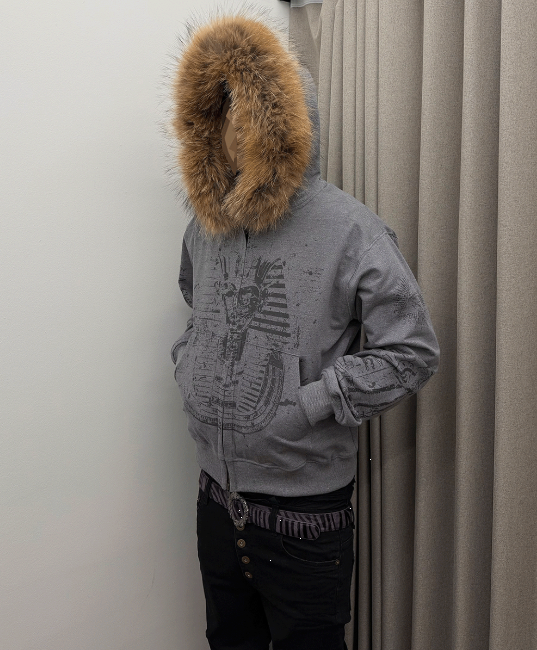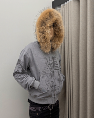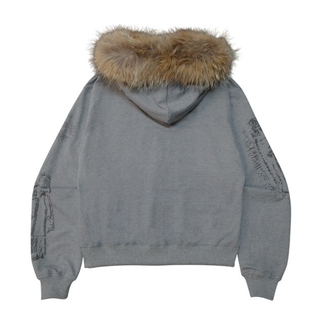 [UNDERMYCAR] Undermycar Immortal Raccoon Fur Zipped Hoodie Melange Gray