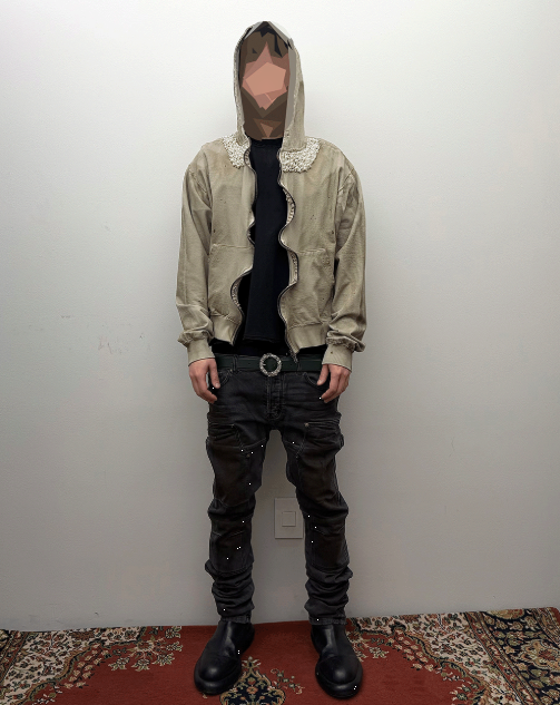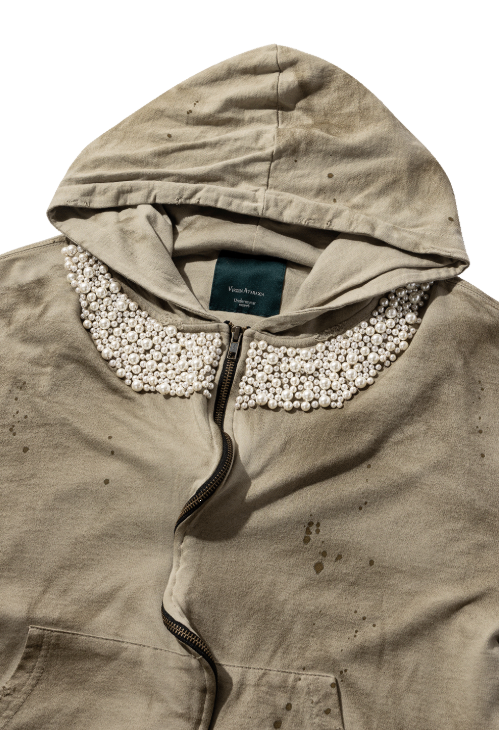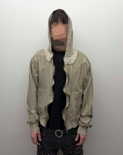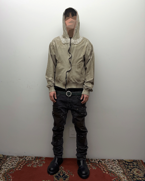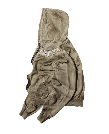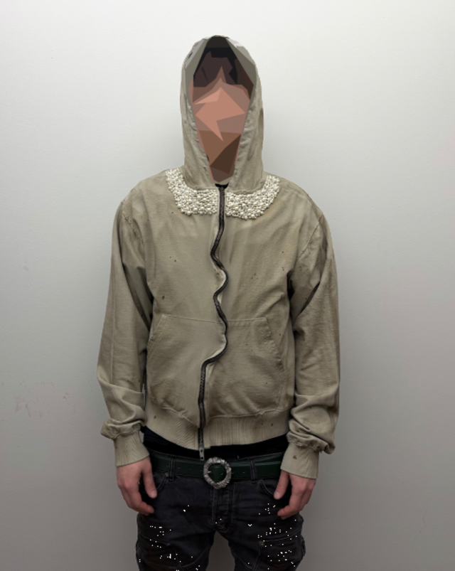 [UNDERMYCAR] Undermycar Elegance In Rags Zipped Hoodie White Pearl