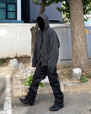 [UNDERMYCAR] Undermycar Mu.11 Anti Fxxking Logo Play Oversized Pigment Hood Zip-up Gray