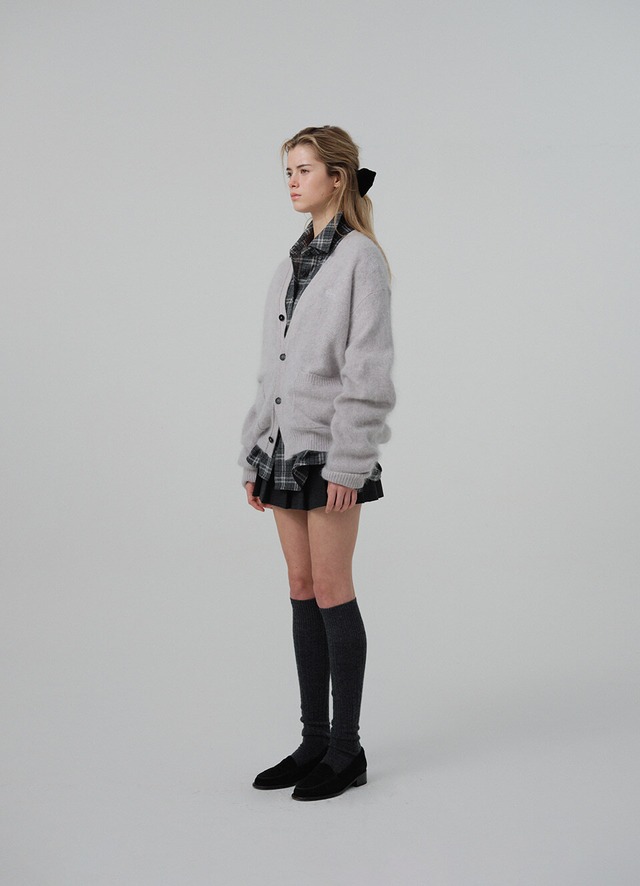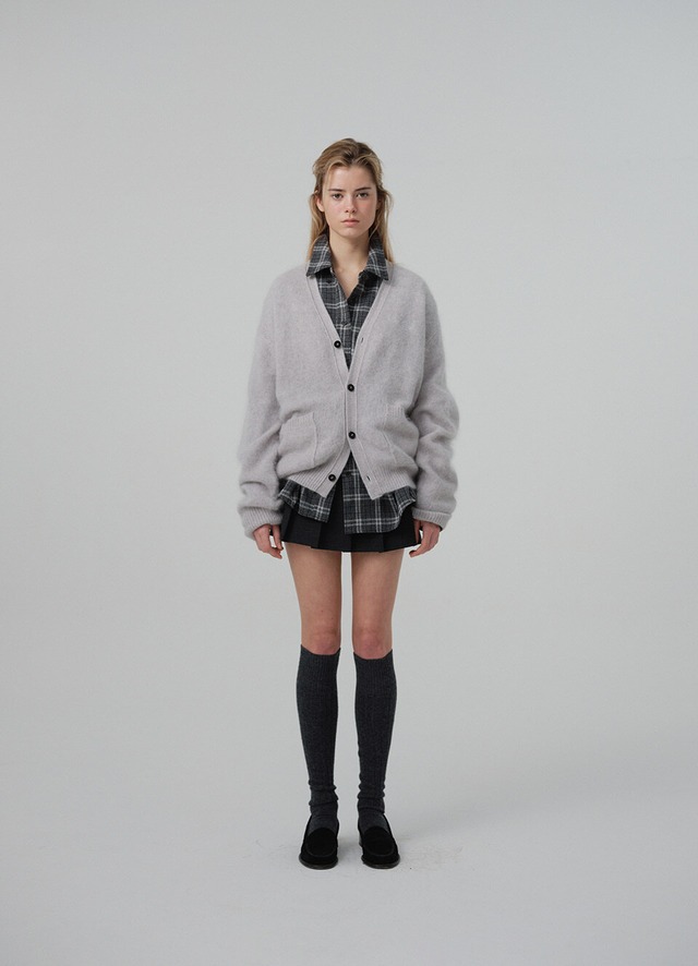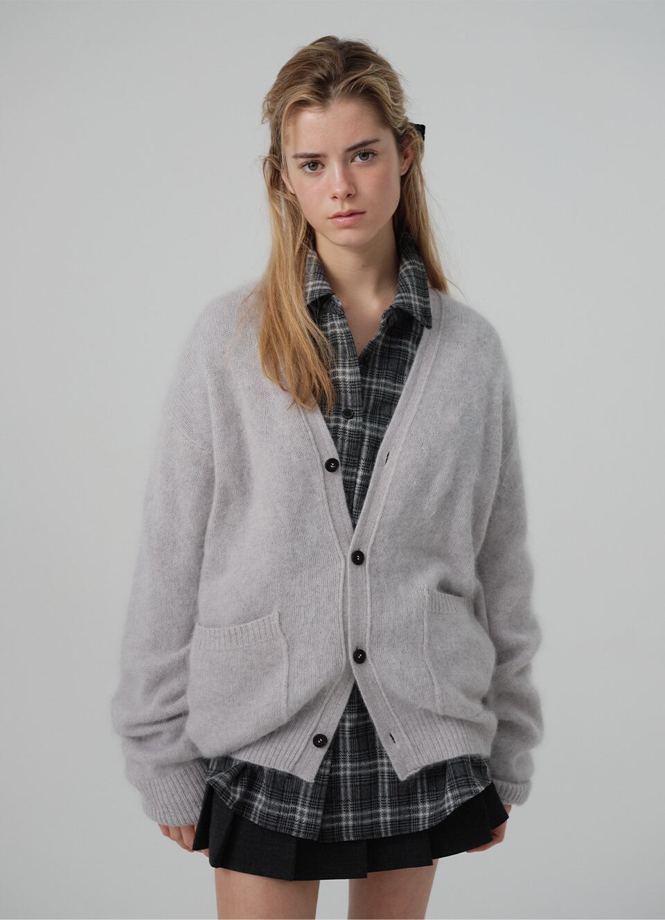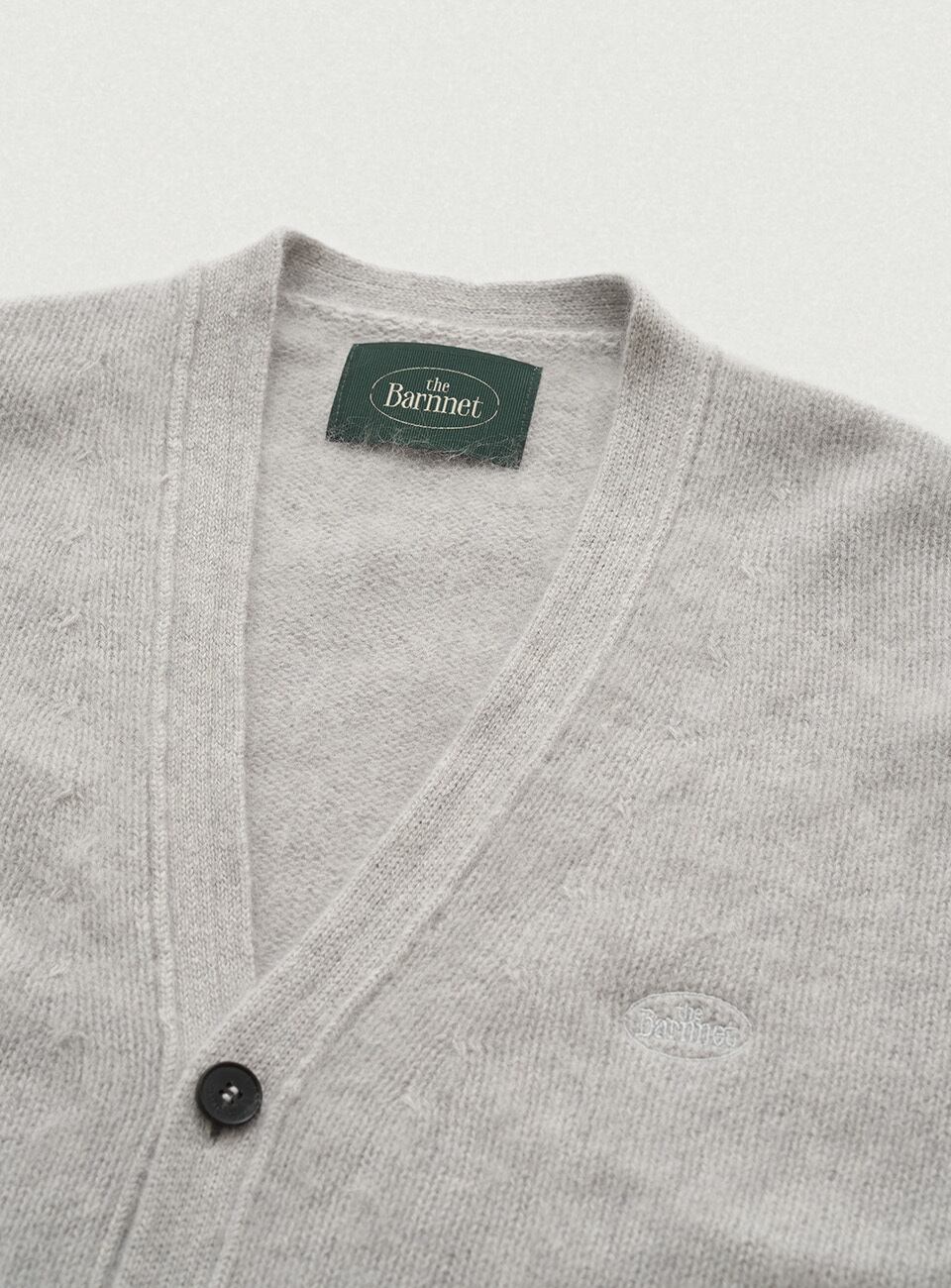 [The Barnnet] Fuzzy V-neck Knit Cardigan_Melange Grey