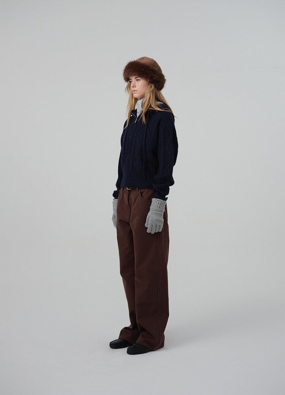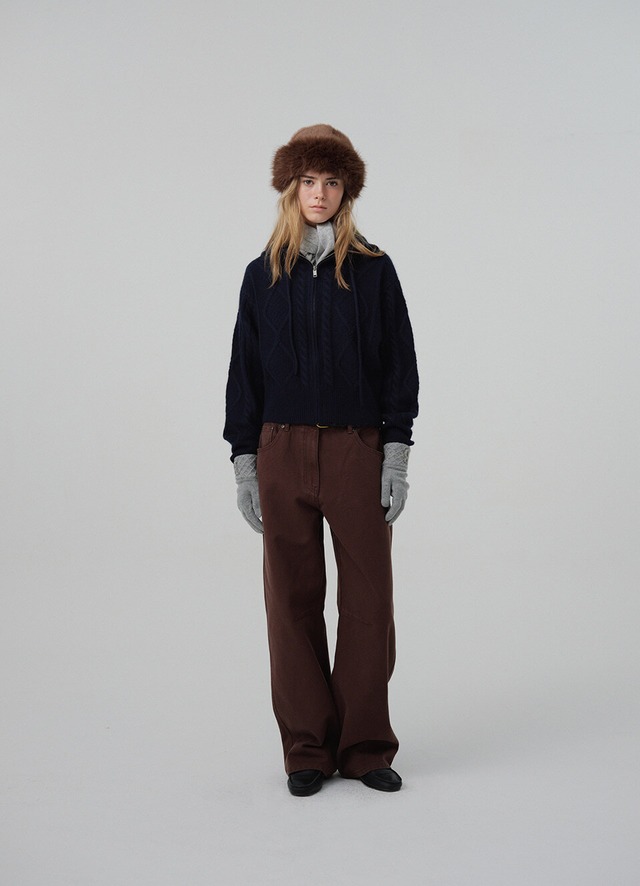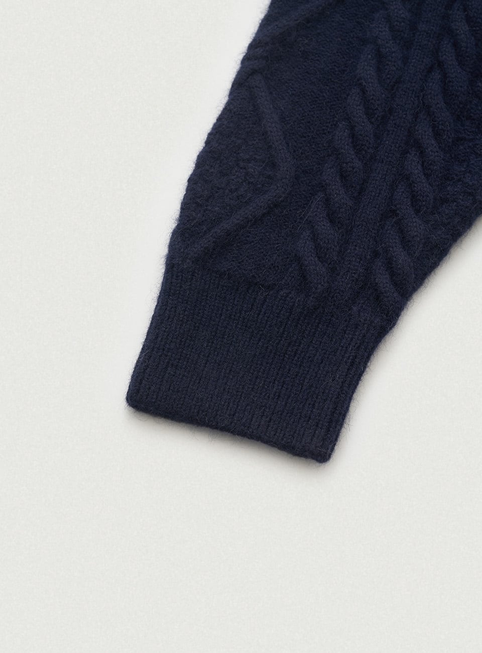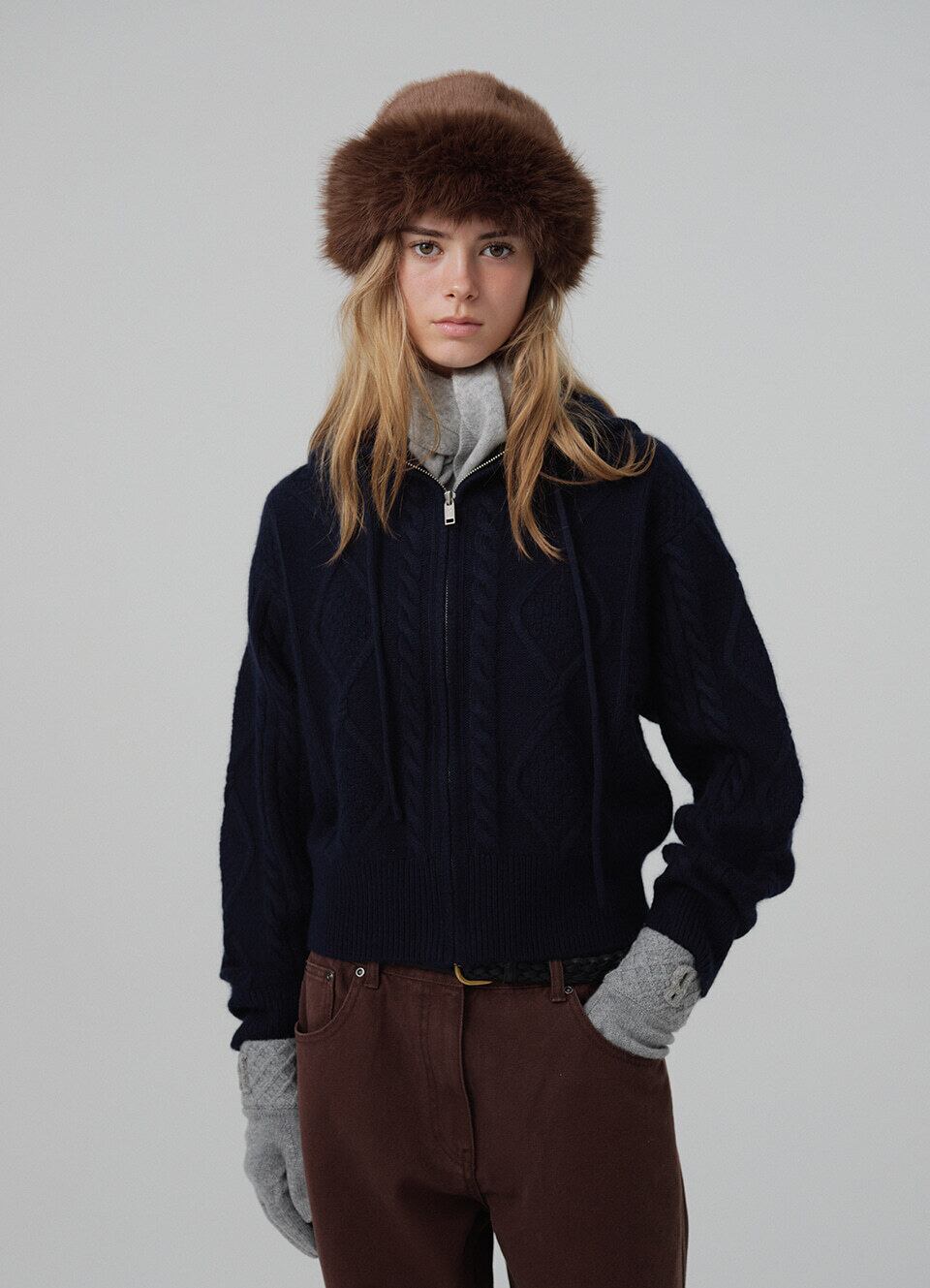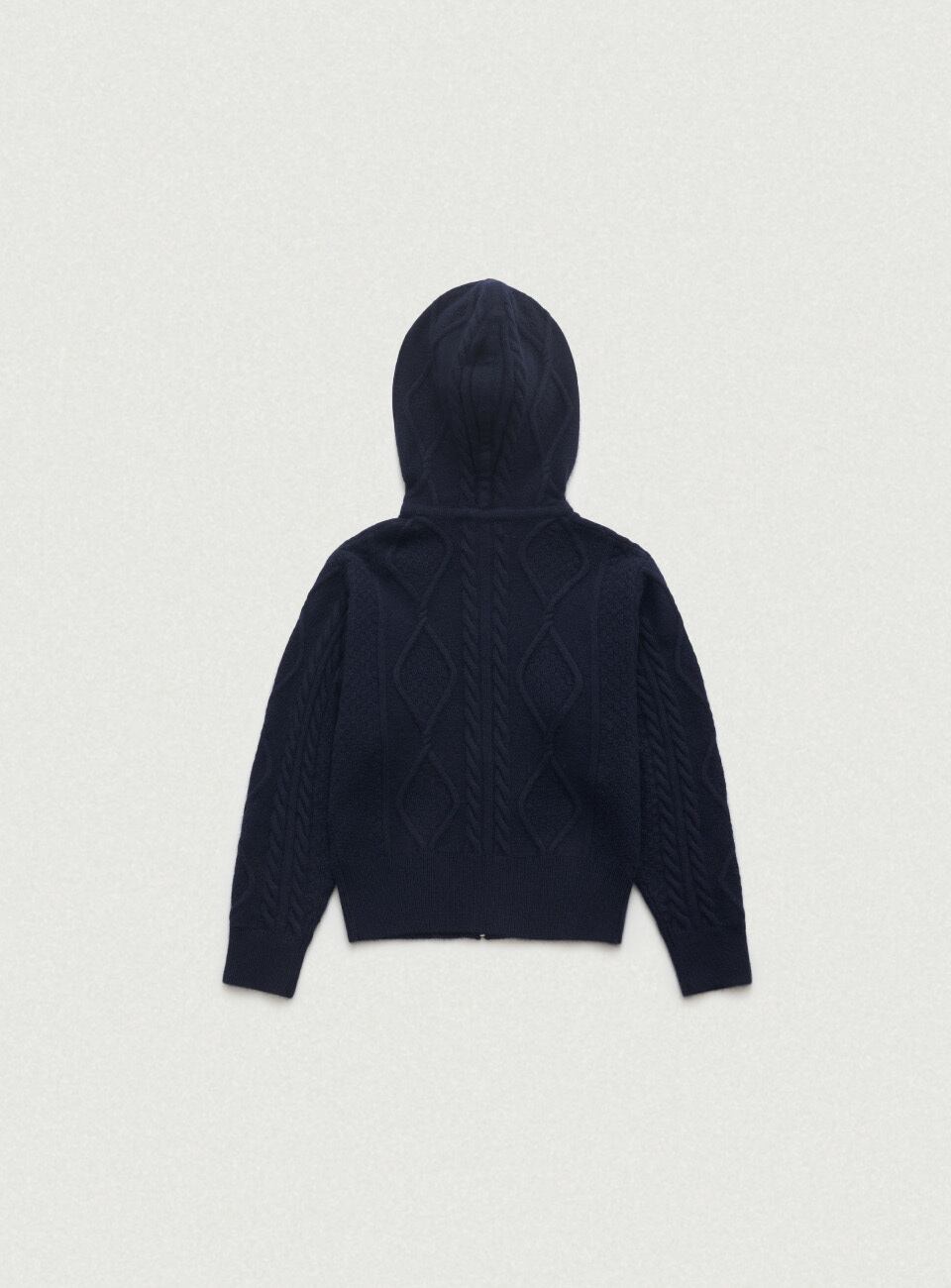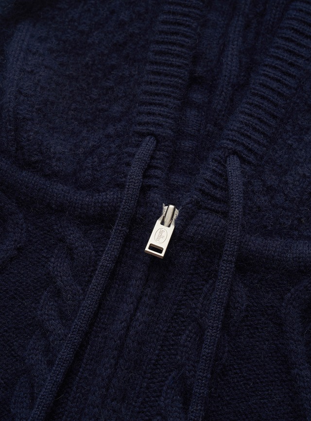 [The Barnnet] Boen Cable Knit Zip-Up Hoodie_Navy