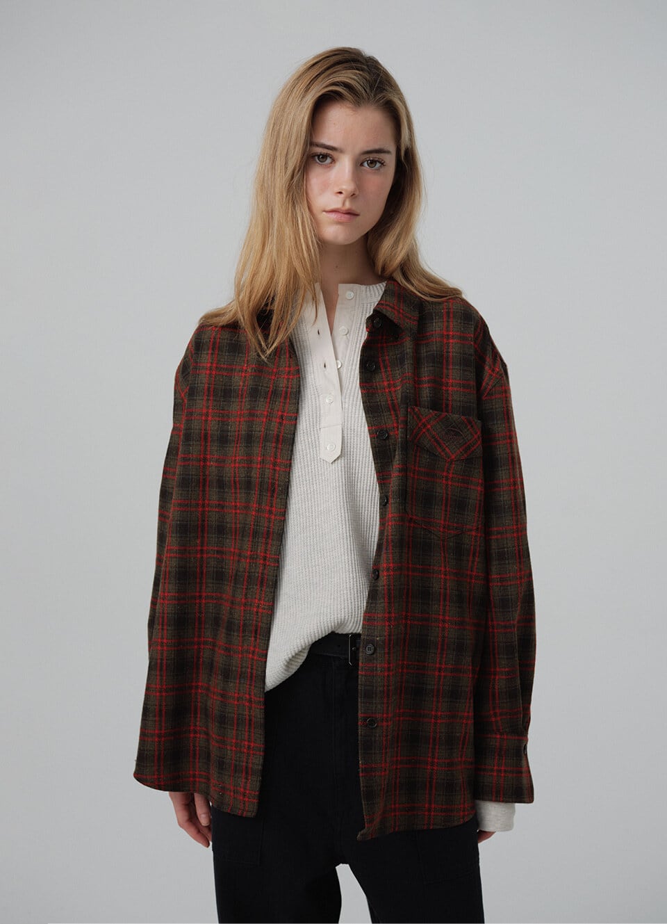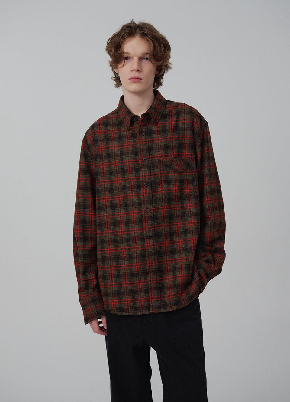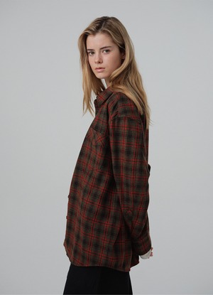 [The Barnnet] Odette Overfit Check Shirt_Brown