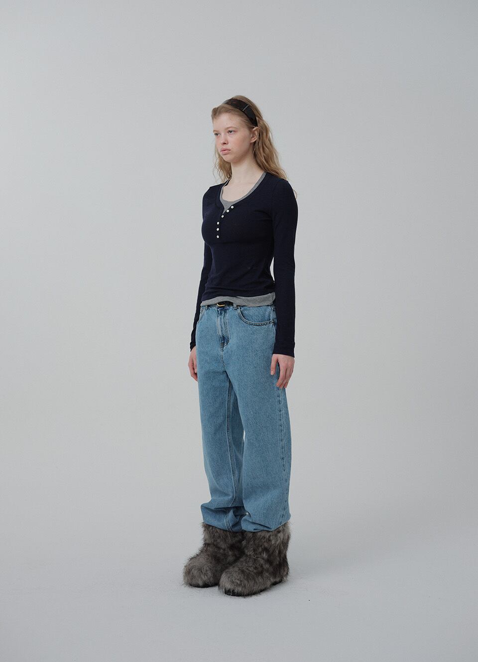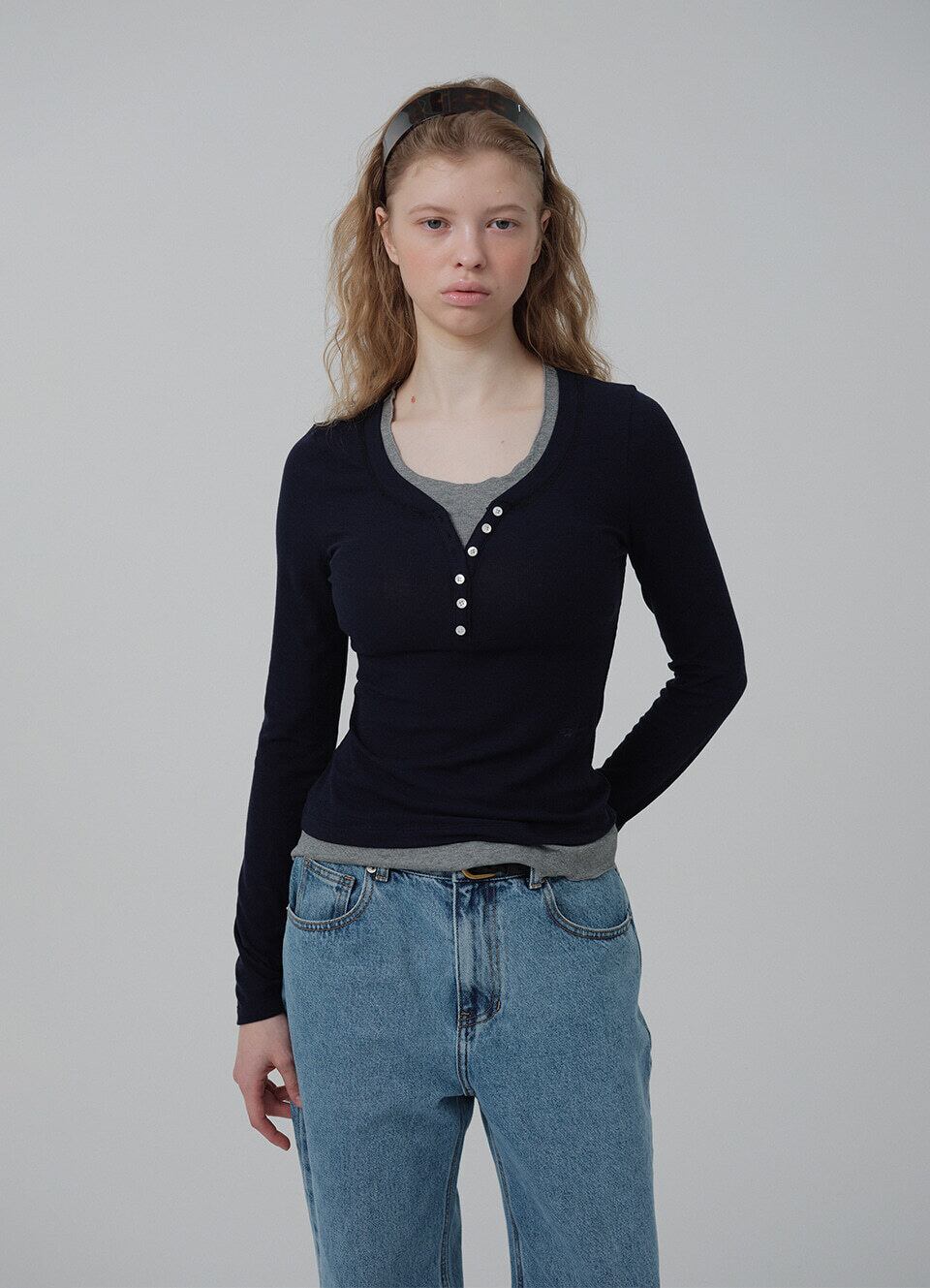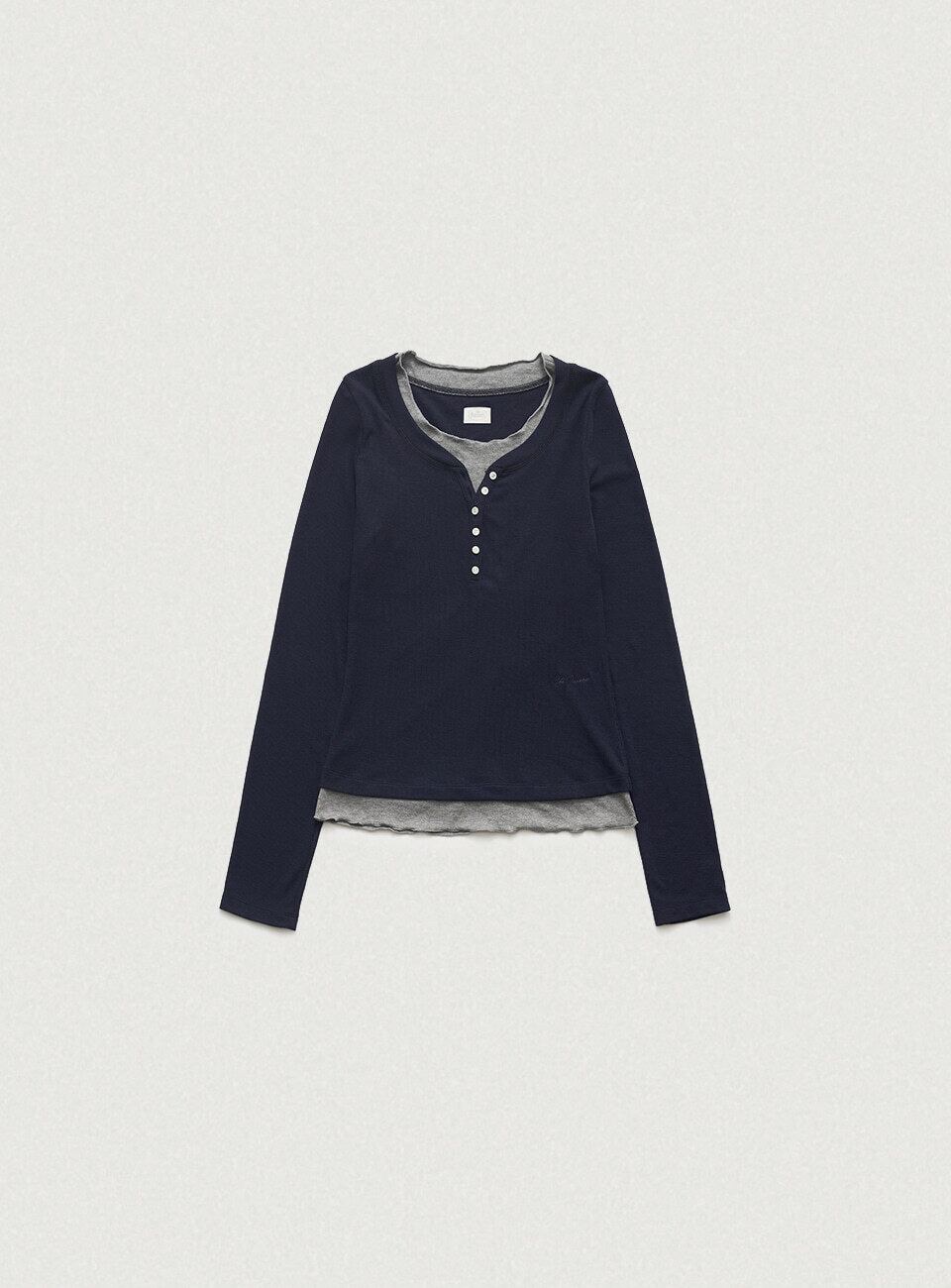[The Barnnet] Aimee Slim Layered T-shirt_Navy