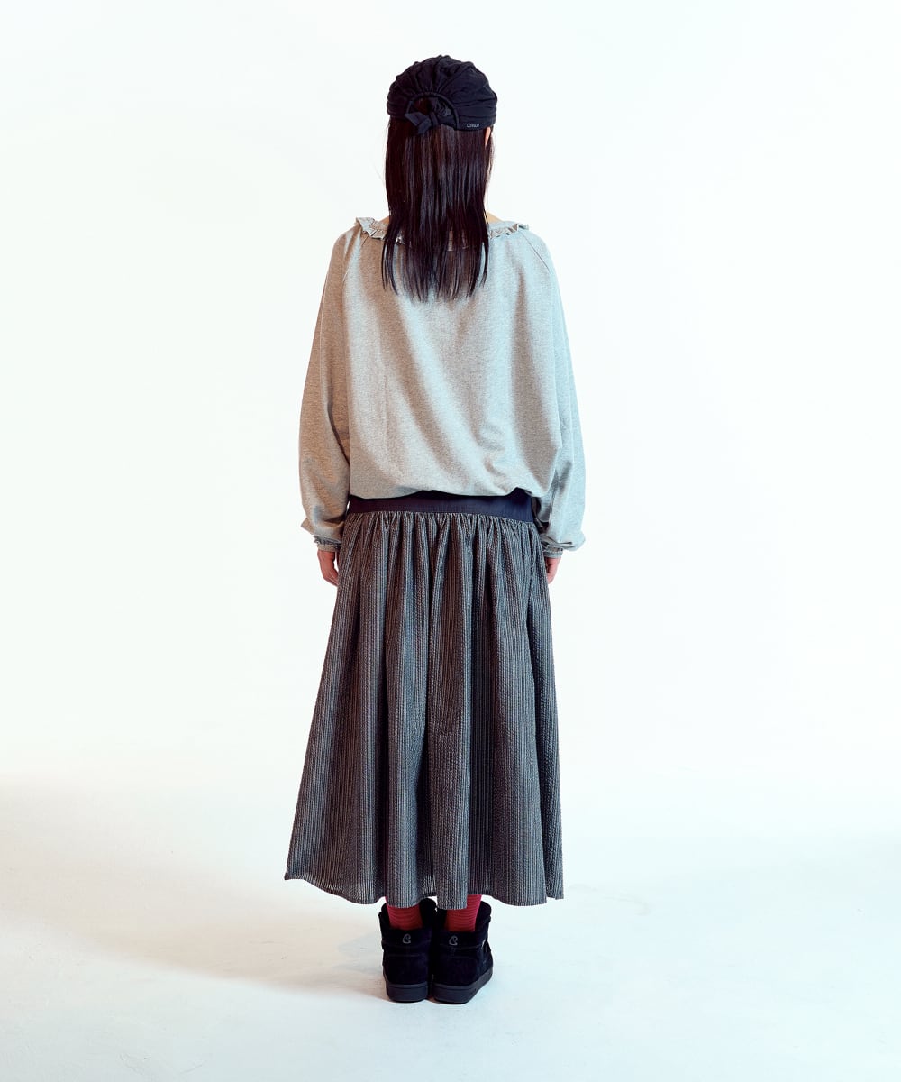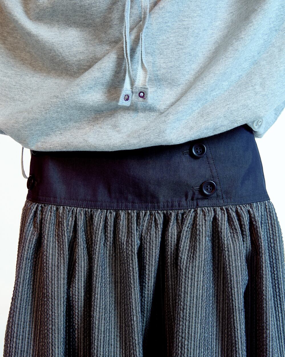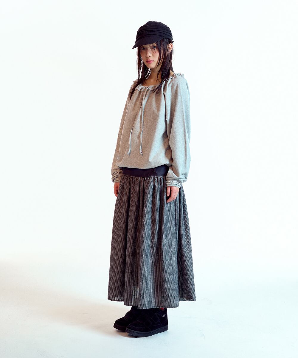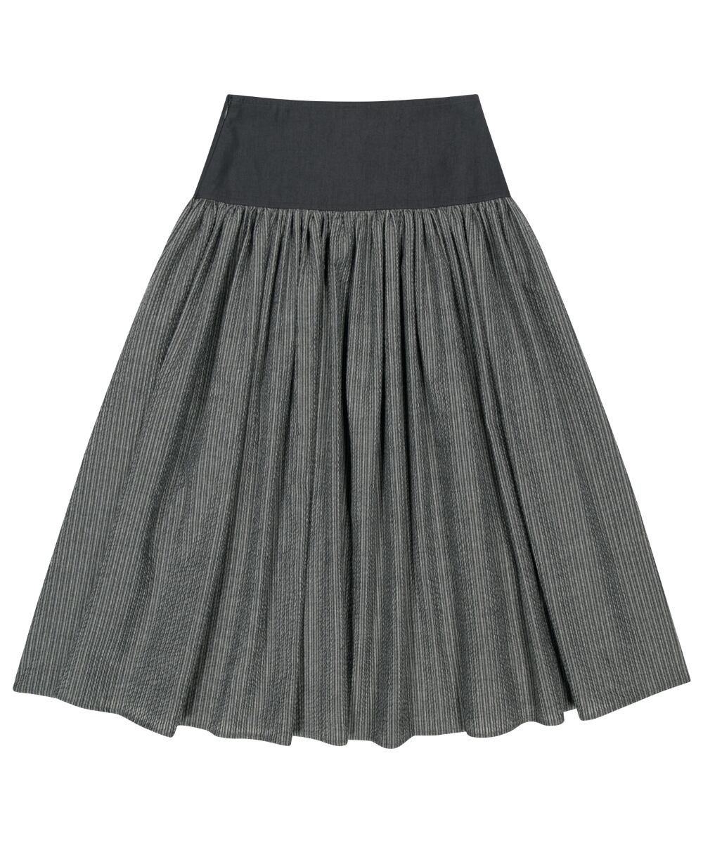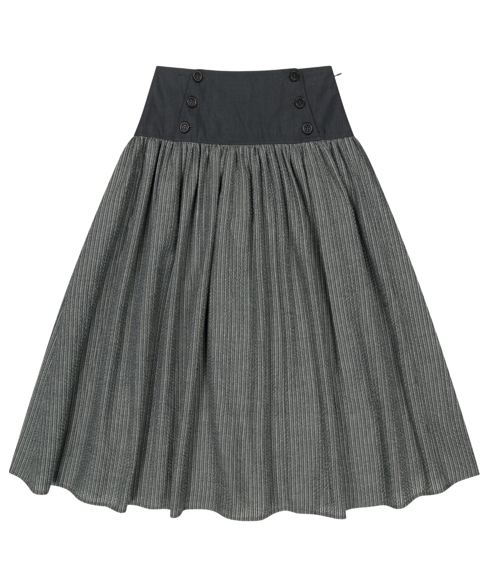 [COYSEIO] DOUBLE BUTTON STRIPE SKIRT BLACK