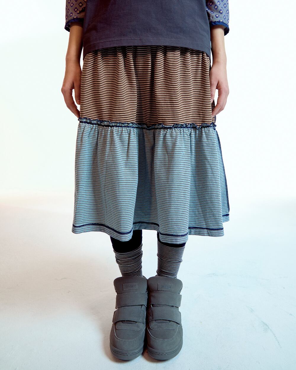 [COYSEIO] COLORED STRIPE MIDI SKIRT PURPLE